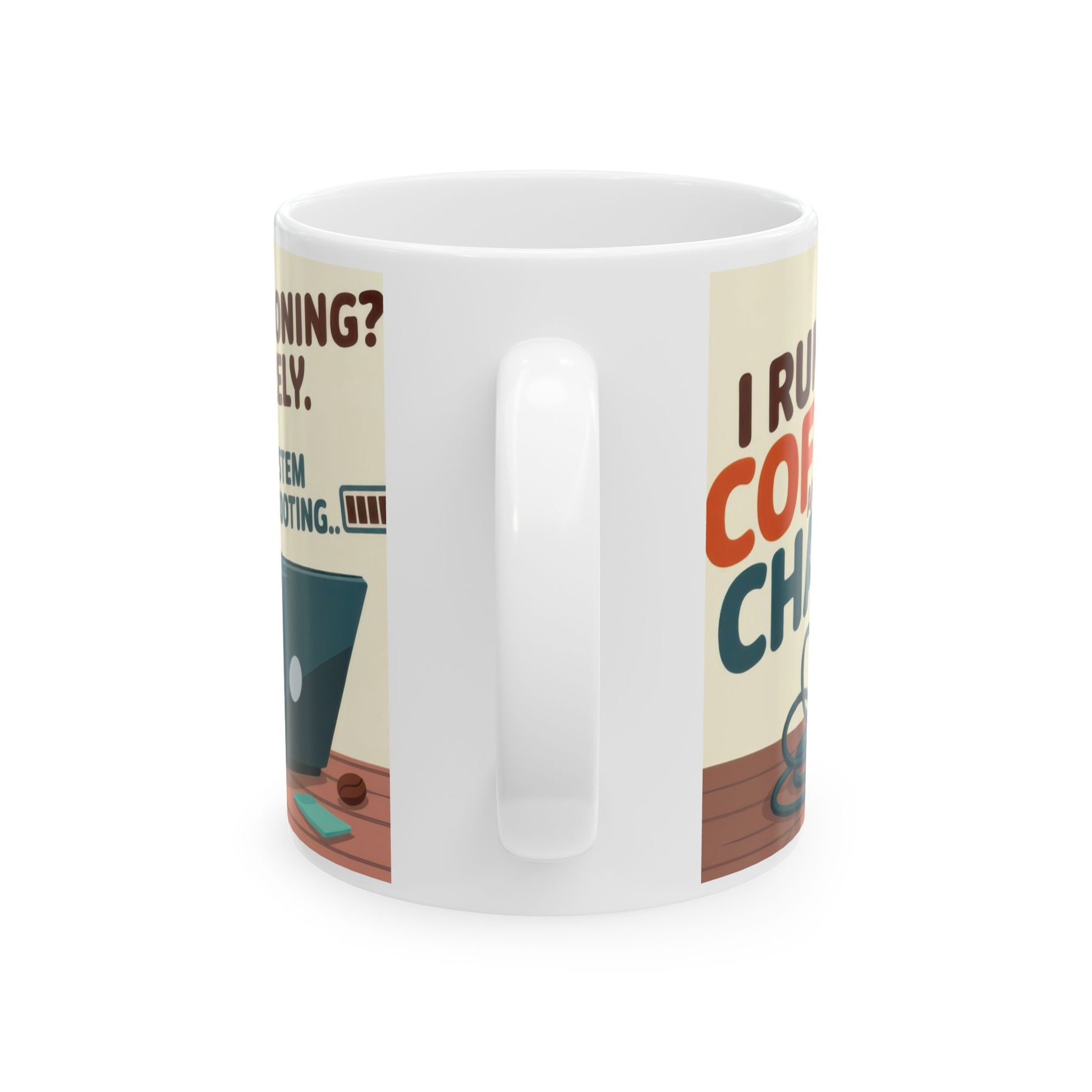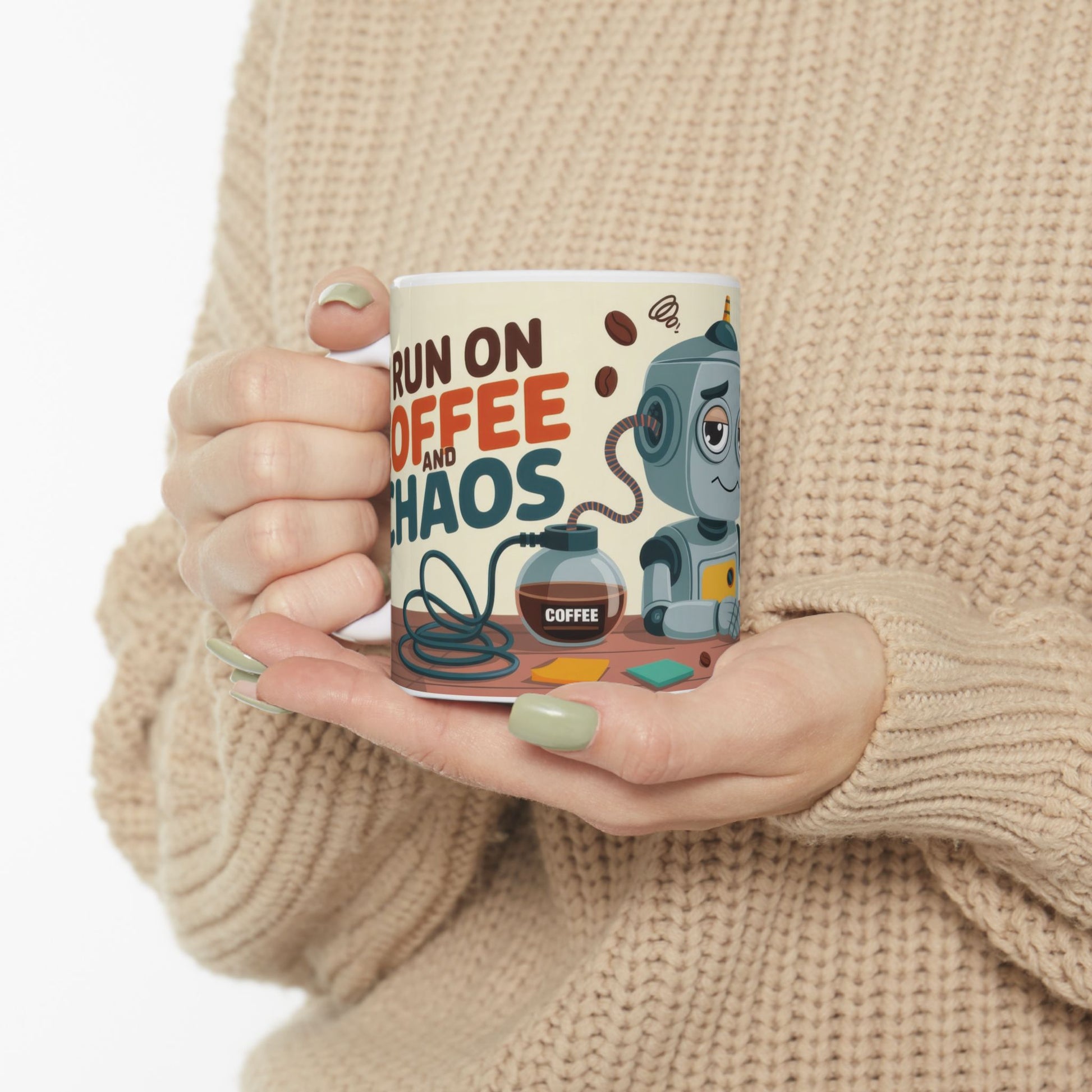 Funny Robot Coffee Mug, I Run on Coffee and Chaos, Tired Office Humor Cup, Lazy Tech Lover Gift, Gift for Coffee Lovers, Office Humor