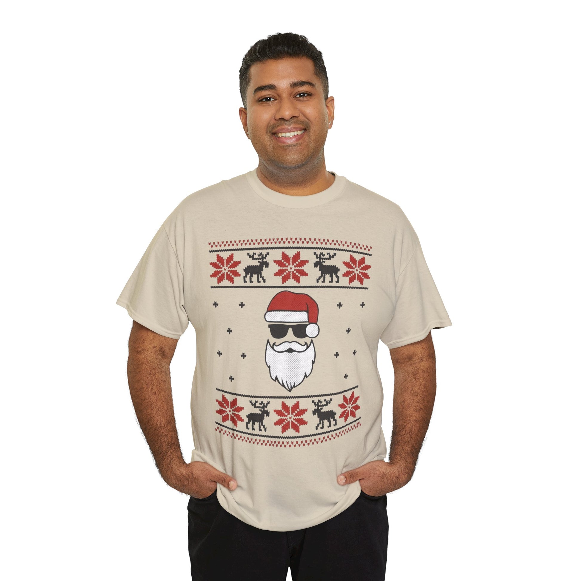 Cool Santa Men's T-Shirt, Funny Christmas Tee, Retro Knit Pattern Holiday Shirt