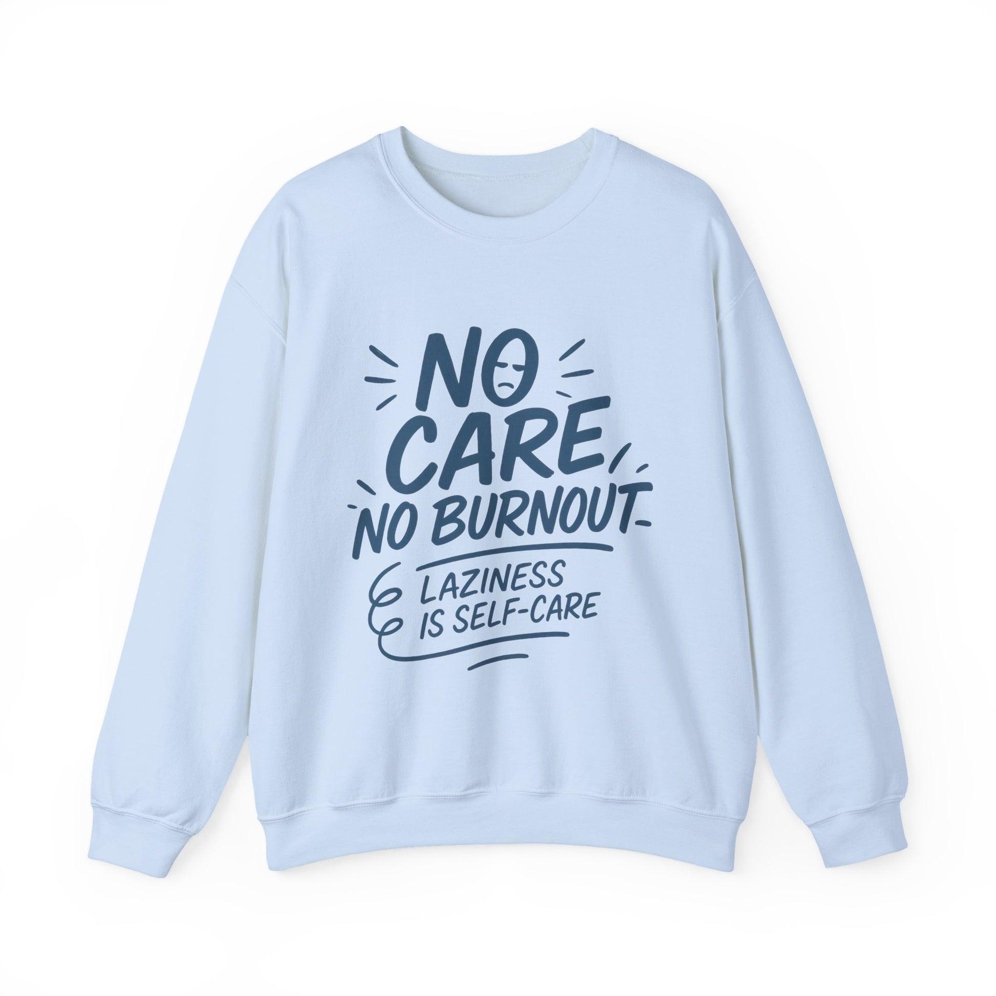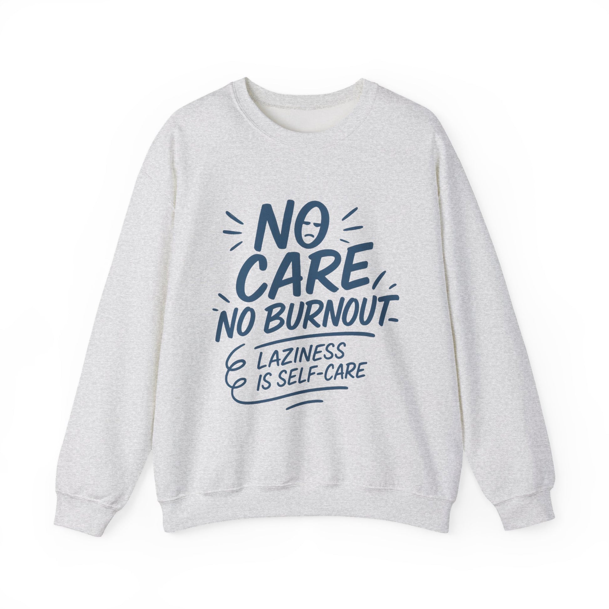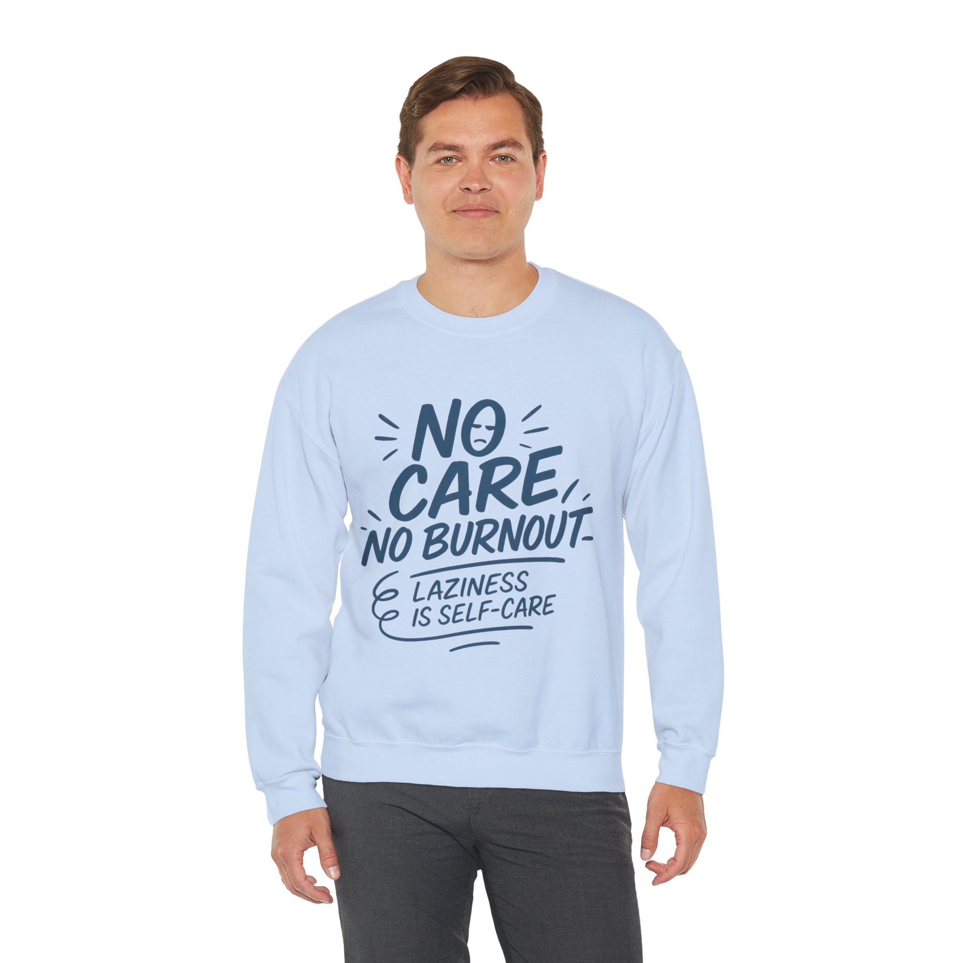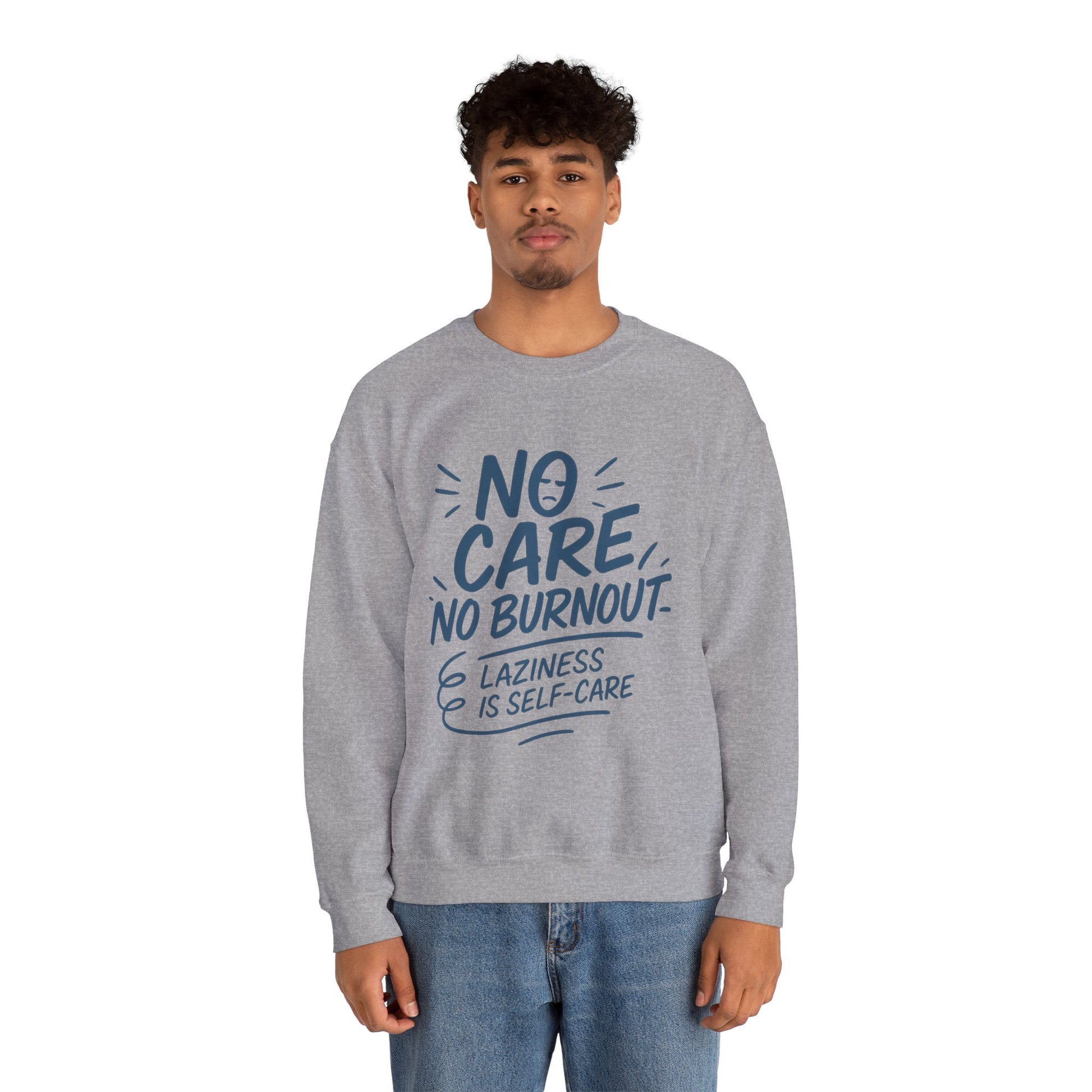 Funny Self-Care Mens Sweatshirt, No Care No Burnout Lazy Quote, Relaxed Fit Pullover, Gift for Him, Self-Care Style, Crewneck Sweatshirt