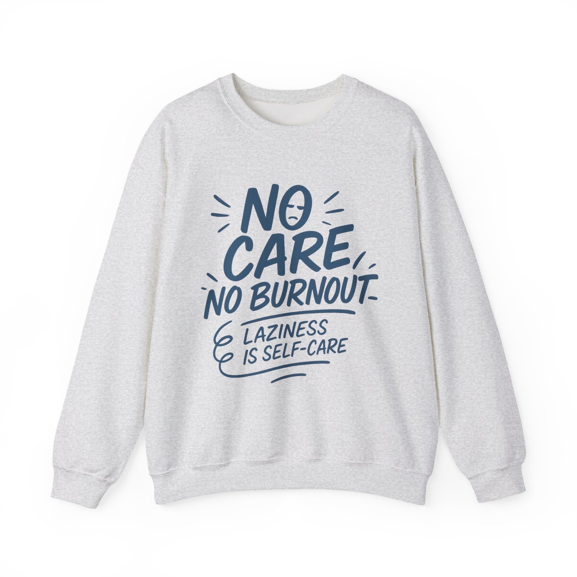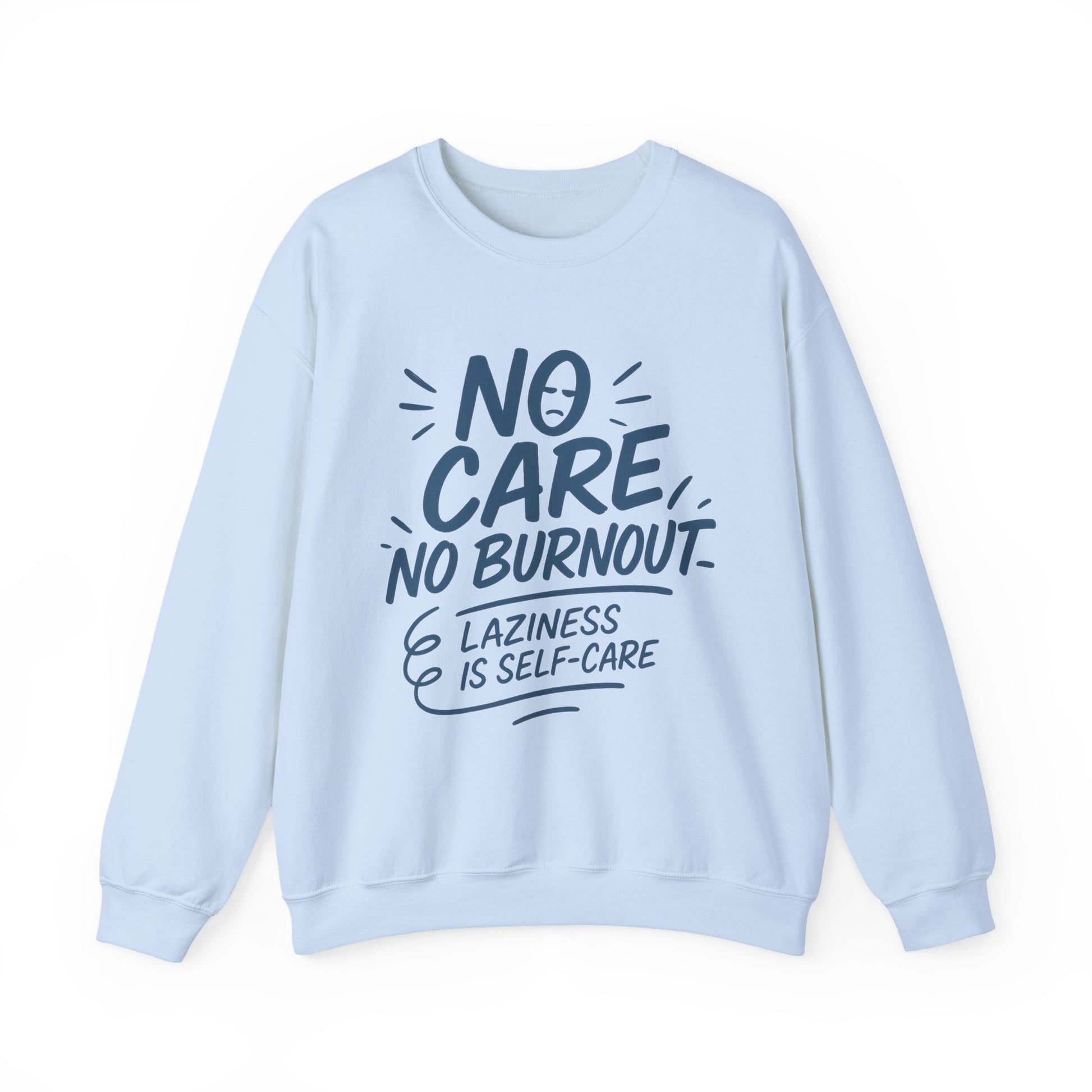 Funny Self-Care Womens Crewneck Sweatshirt, No Care No Burnout Quote, Cozy Lazy Life Pullover, Self-Care Lovers Gift for Her