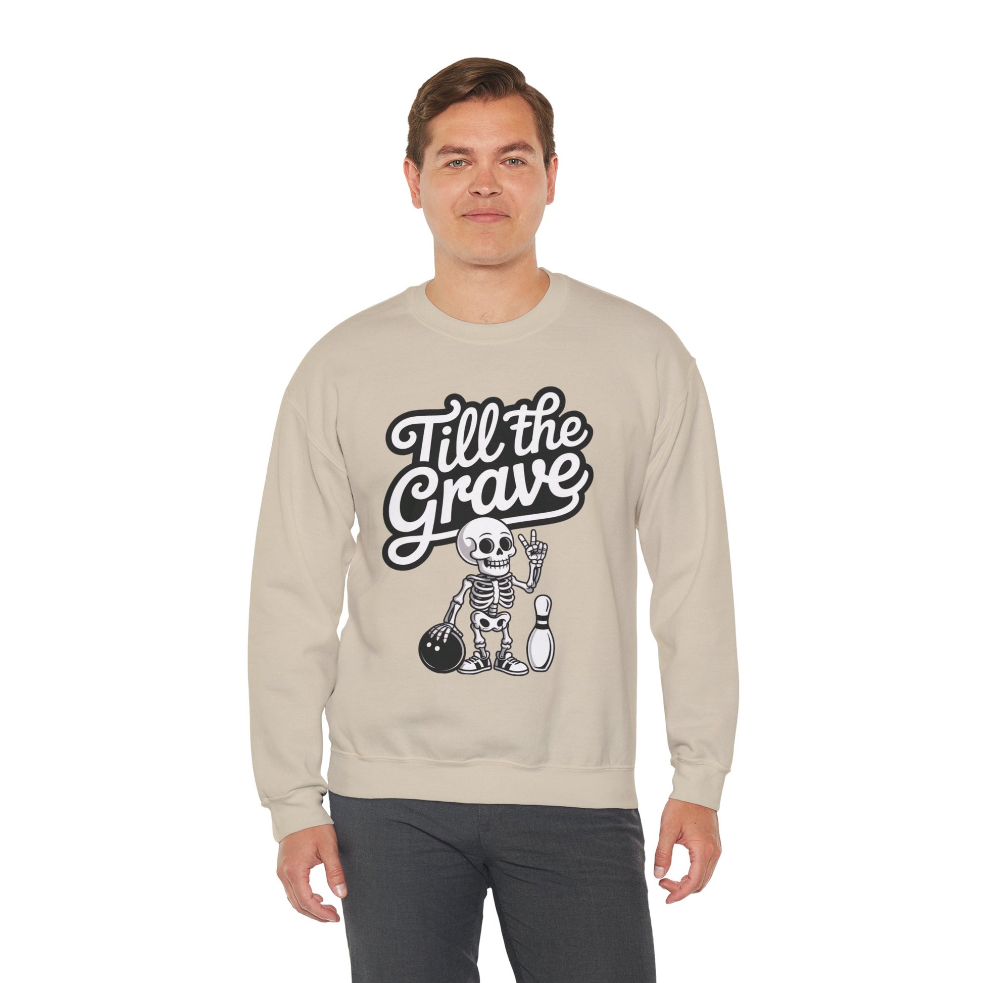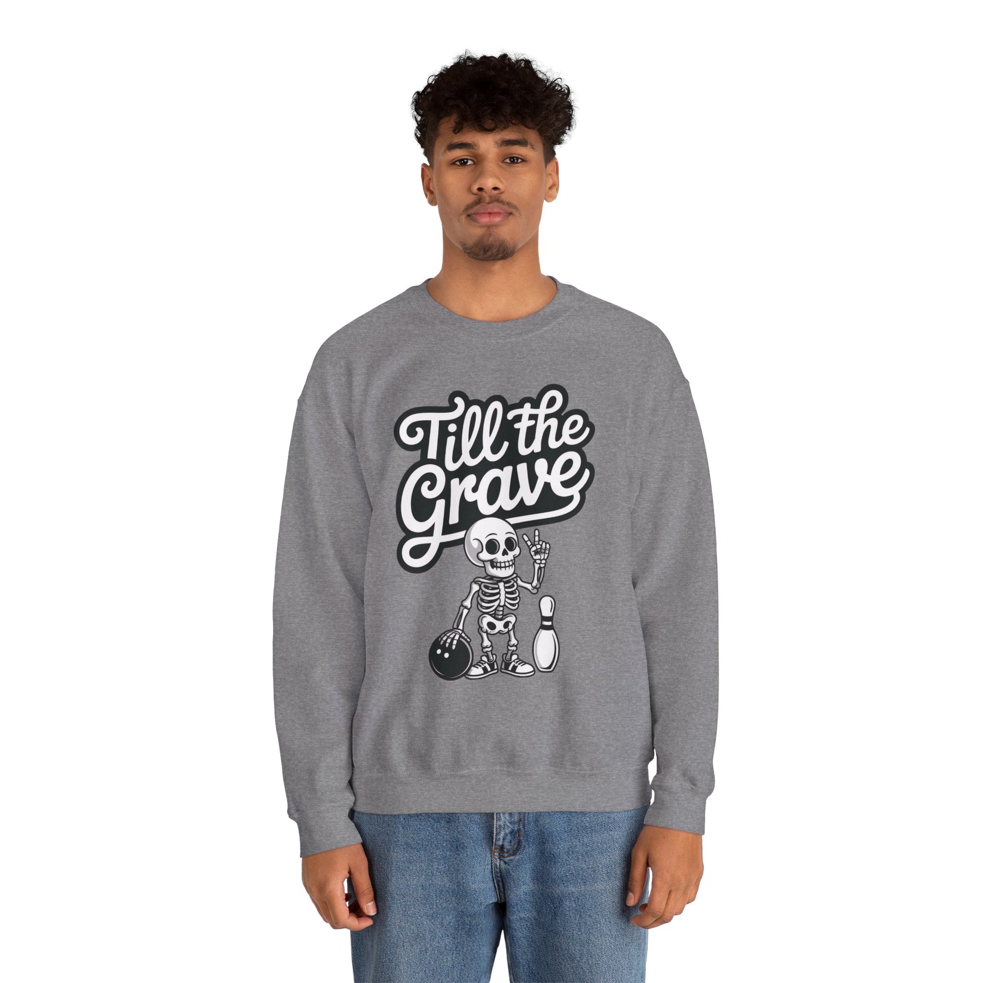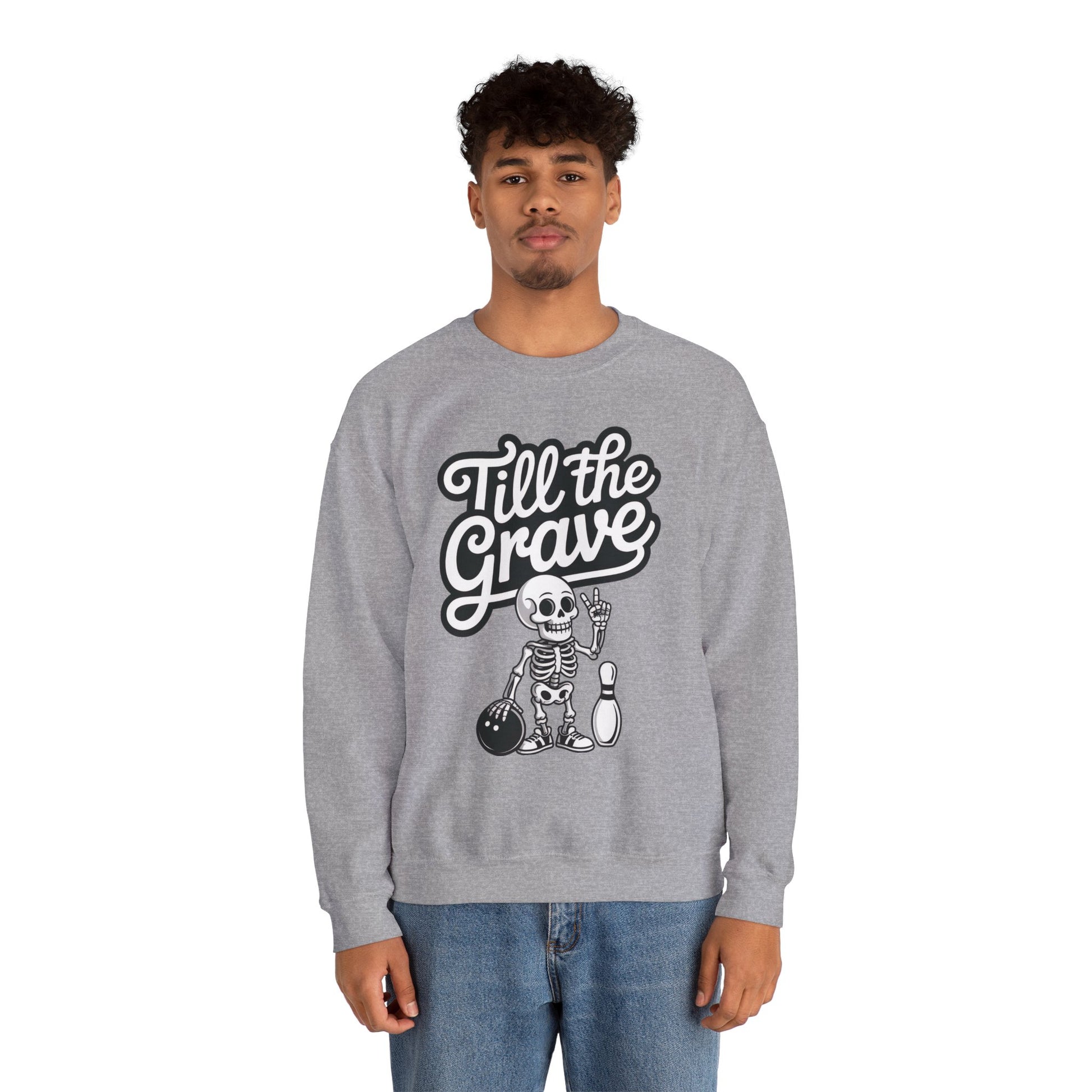 Funny Skeleton Bowling Mens Pullover, Halloween Apparel, Funny Skeleton Bowling Shirt, Casual Mens Crewneck, Cool Bowler Skull Crewneck