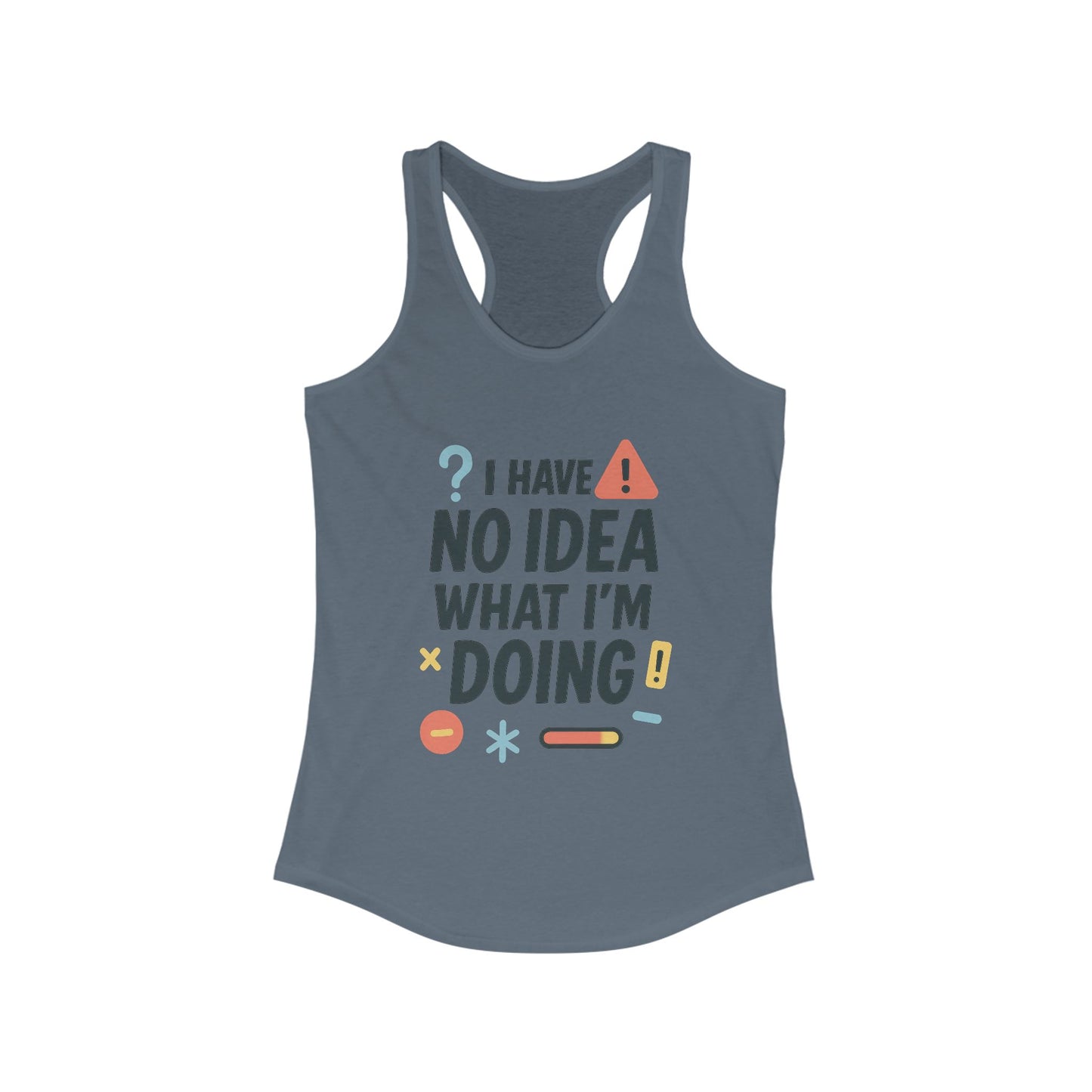 Funny Womens Racerback Tank Top, I Have No Idea What Im Doing, Cute Chaos Mood Tank Her, Fitness, Gift, Summer Top