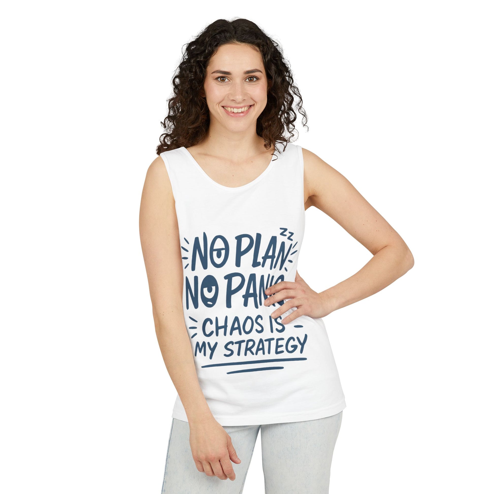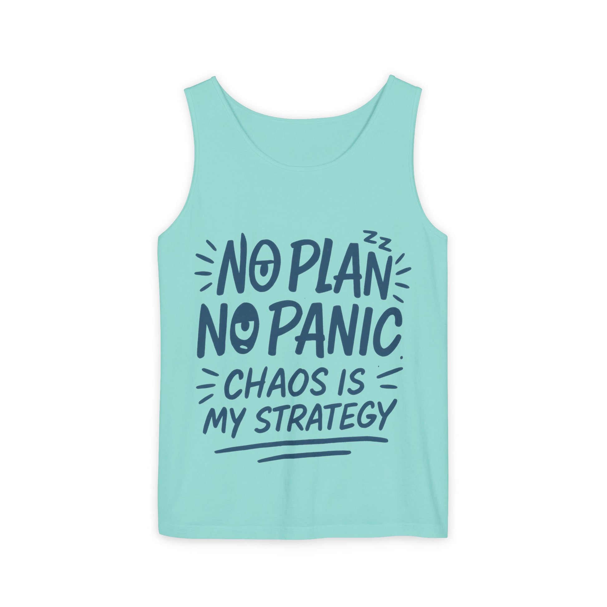 Funny Women's Tank, Chaos Strategy T-Shirt, No Plan No Panic Quote Shirt, Cute Tee for Women, Humorous Gift Idea, Casual Relaxed Fit Top