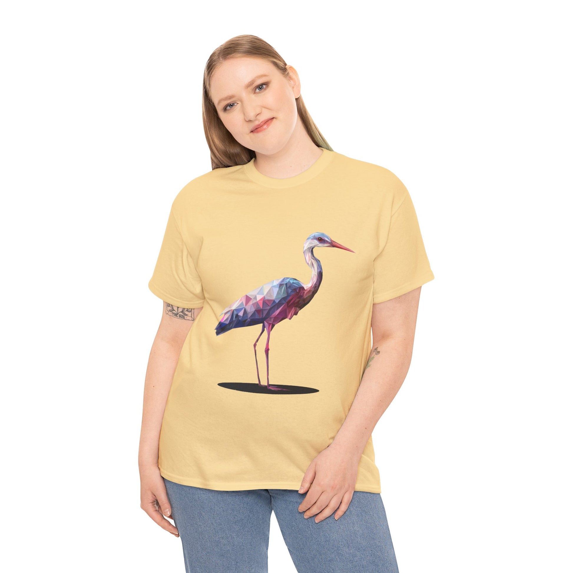 Geometric Heron T-Shirt, Colorful Polygon Bird Graphic, Nature Lover Unisex Heavy Cotton Tee, Geometric Crane Tee, Bird Lovers Gift
