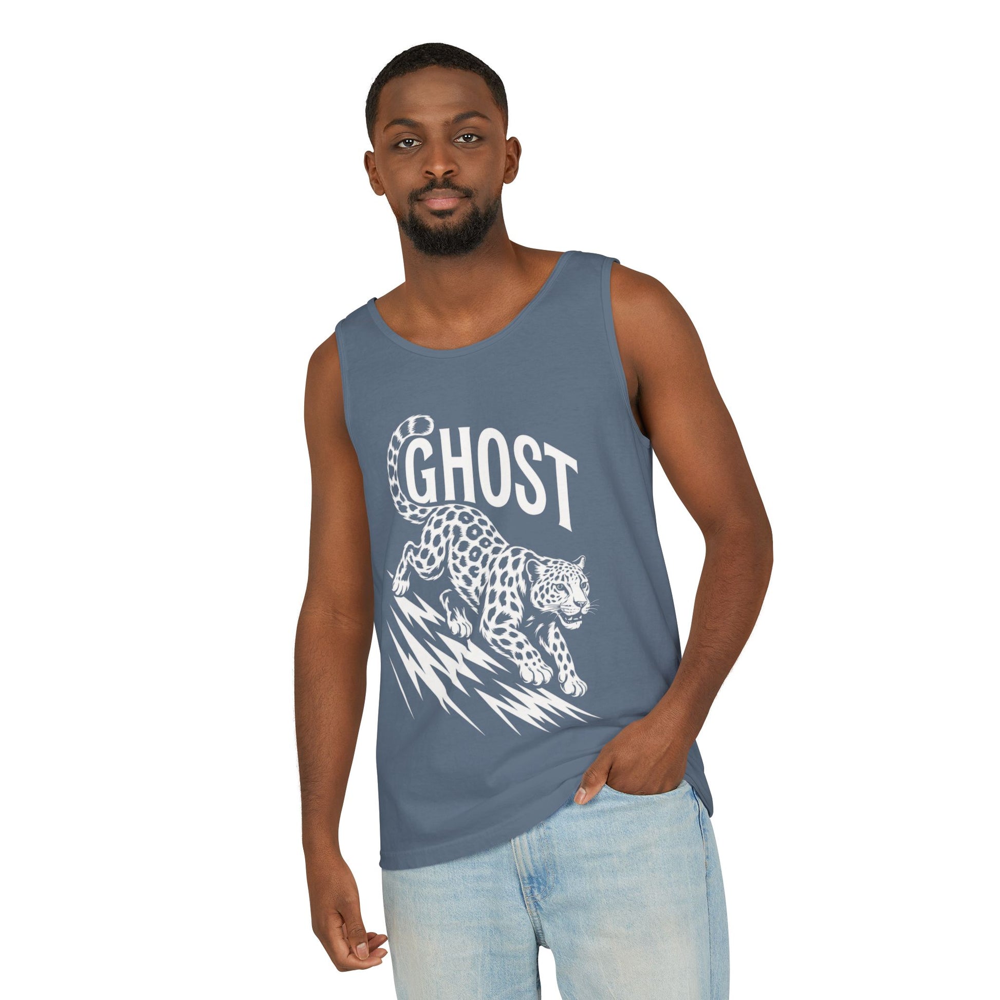 Ghost Leopard Mens Tank Top, Cool Graphic Shirt for Summer, Beach Days, Festivals, Gifts, Casual Wear