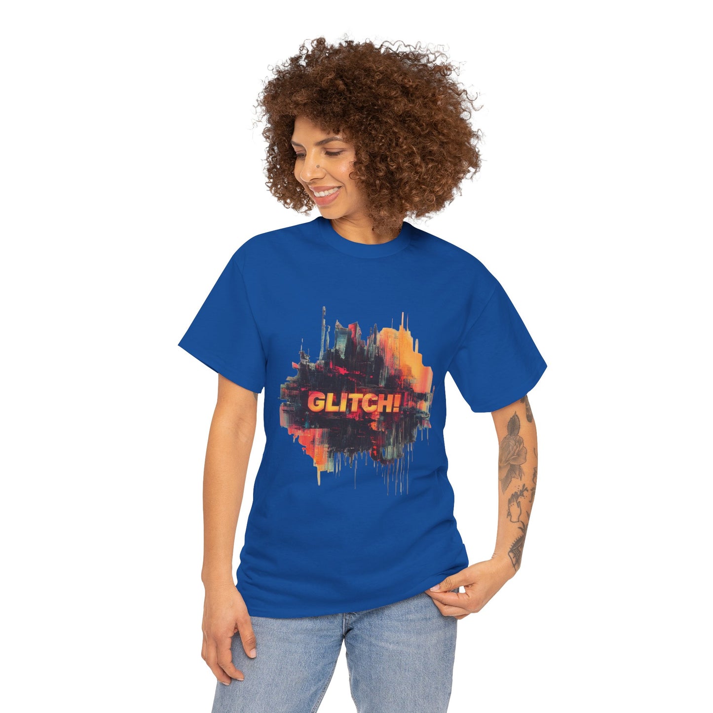 Glitch Art Unisex Heavy Cotton Tee, Trendy Graphic Top, Gift for Tech Lovers, Abstract Street Style Graphic Tee,Techcore Aesthetic Shirt