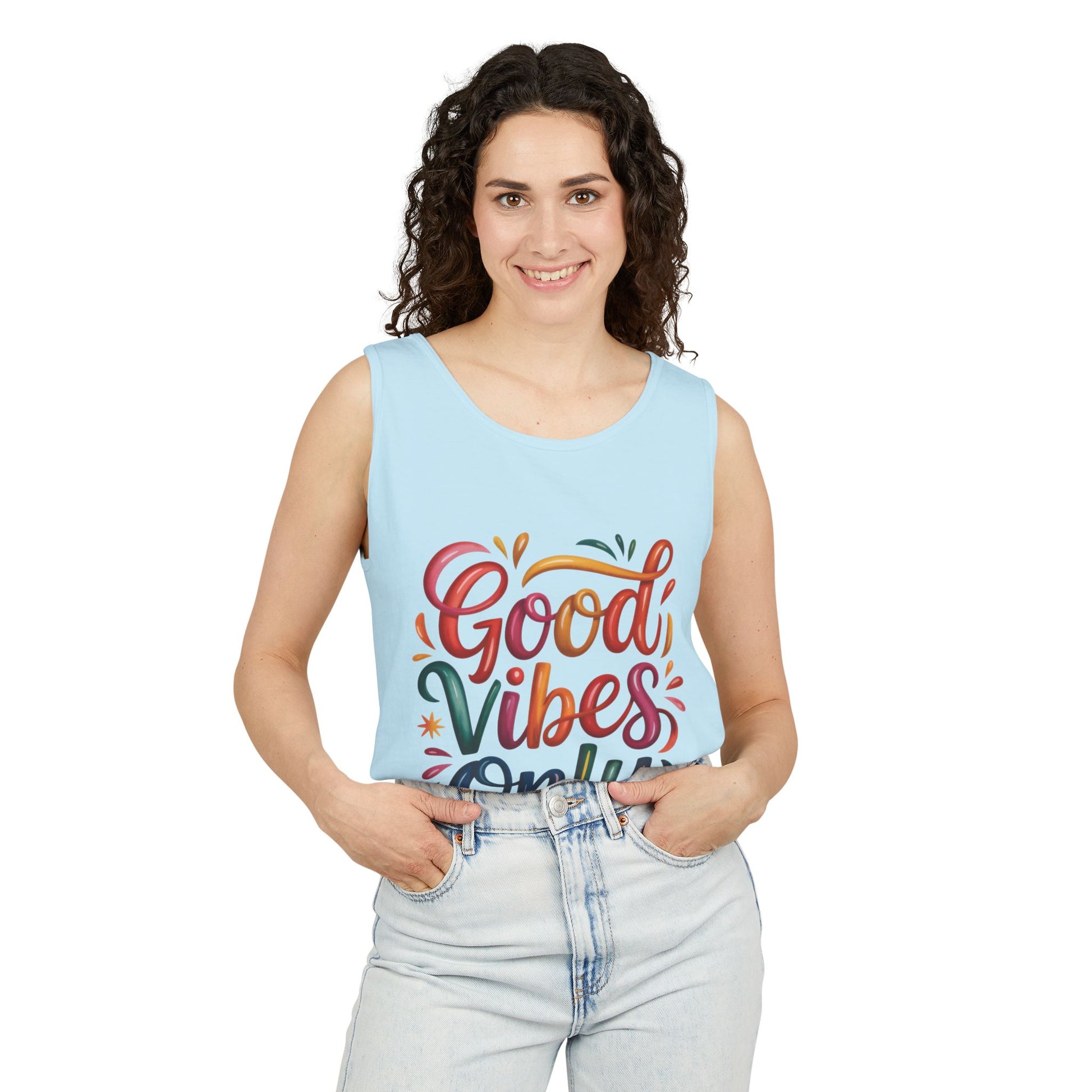 Good Vibes Only Unisex Garment-Dyed Tank Top, Summer Casual Wear, Festival Outfit, Beach Day Tee, Gift for Friends, Positive Vibes Apparel