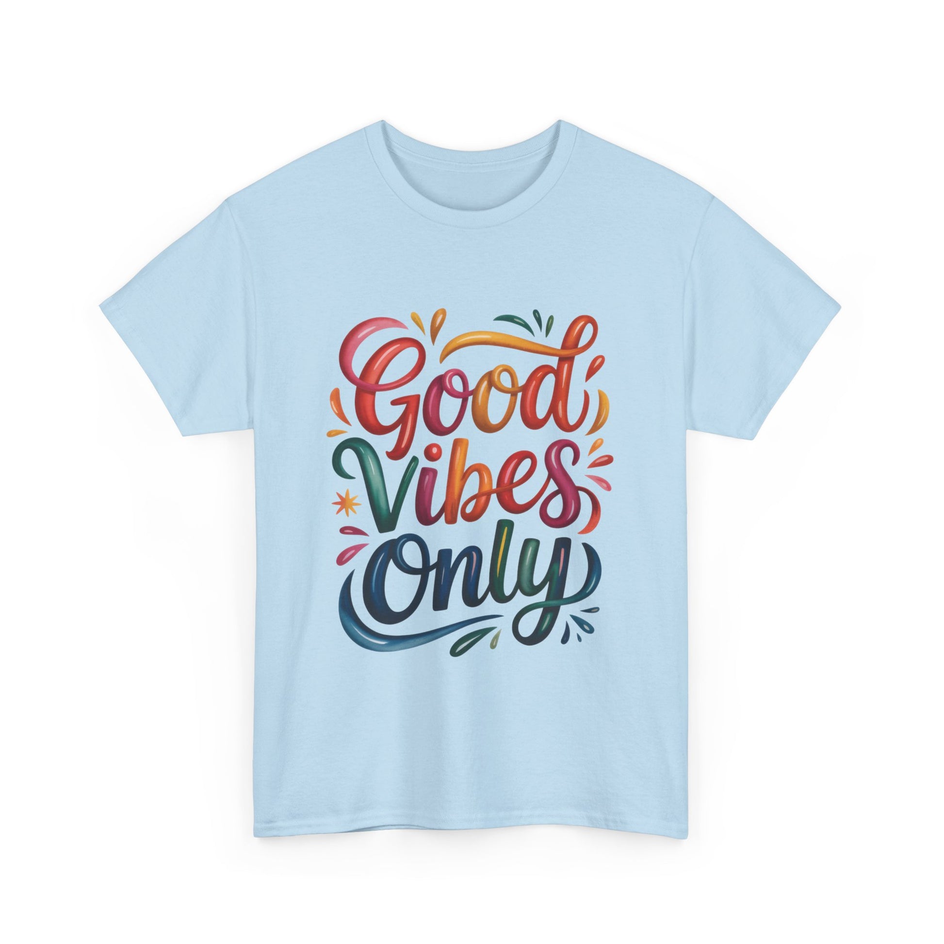 Elevate your style and spread positivity with this vibrant unisex heavy cotton tee. Featuring a cheerful "Good Vibes Only" design, this shirt radiates a sense of joy and encouragement, making it a perfect addition to your casual wardrobe. Ideal for music festivals, beach outings, or laid-back gatherings with friends, it's designed for those who appreciate a carefree lifestyle. Its comfortable fit ensures you can wear it all day long, whether you're lounging at home or out exploring. Great for gifting on occasions like birthdays, summer parties, or simply to brighten someone’s day! Product features - Twill shoulder tape for durability and stability - Seamless design reduces fabric waste and enhances aesthetics - Elastic ribbed collar maintains shape well - Crafted from soft, strong 100% cotton for comfort - Ethically made with sustainable practices and certified safety standards Care instructions - Non-chlorine: bleach as needed - Do not iron - Do not dryclean - Machine wash: cold (max 30C or 90F) - Tumble dry: low heat
