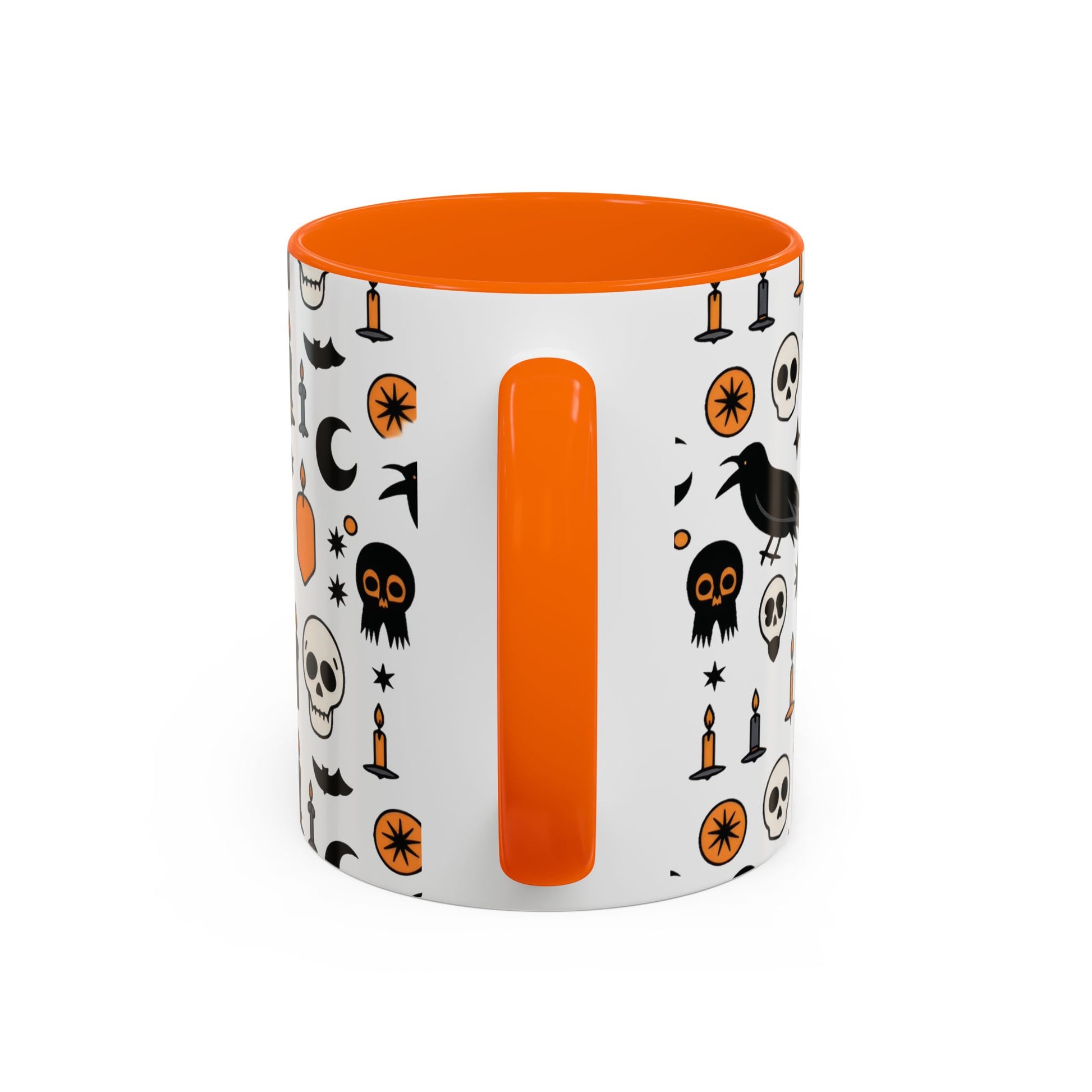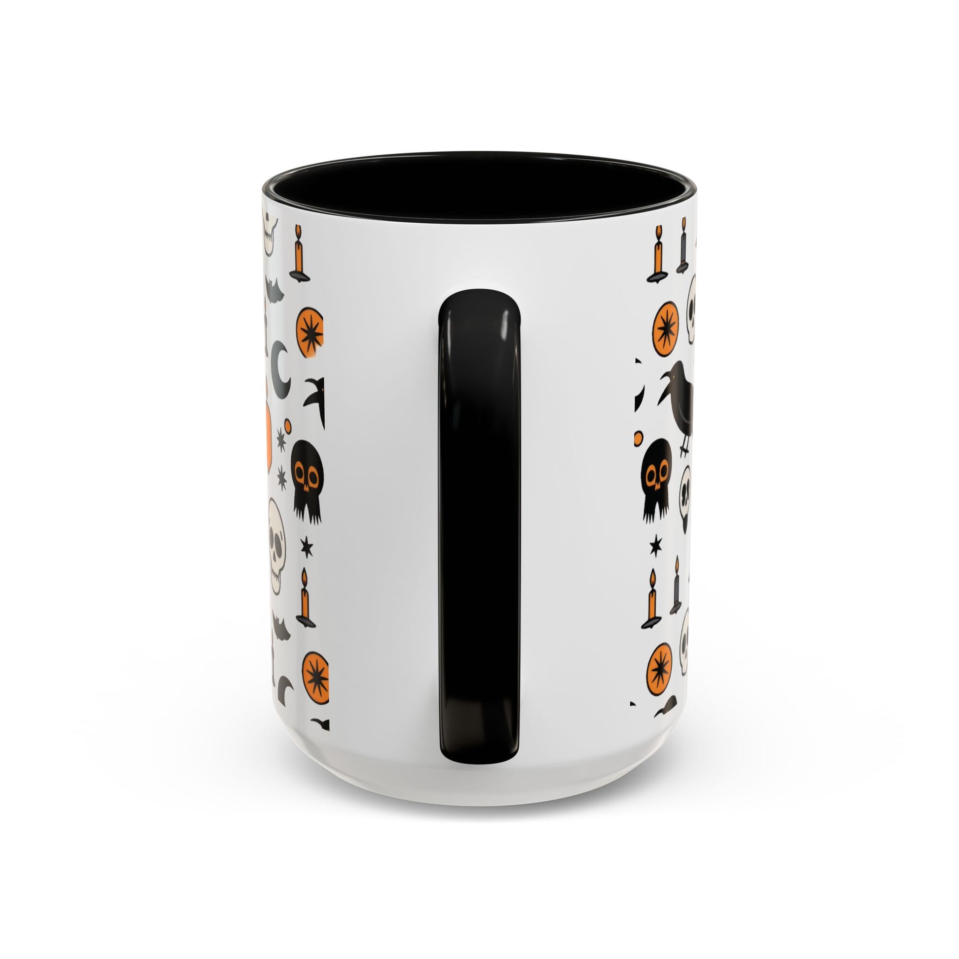 Gothic Halloween Mug, Skull, Candle - Raven Pattern Coffee Cup, Dark Aesthetic Spooky Gift for Her or Him, Accent Coffee Mug (11, 15oz)
