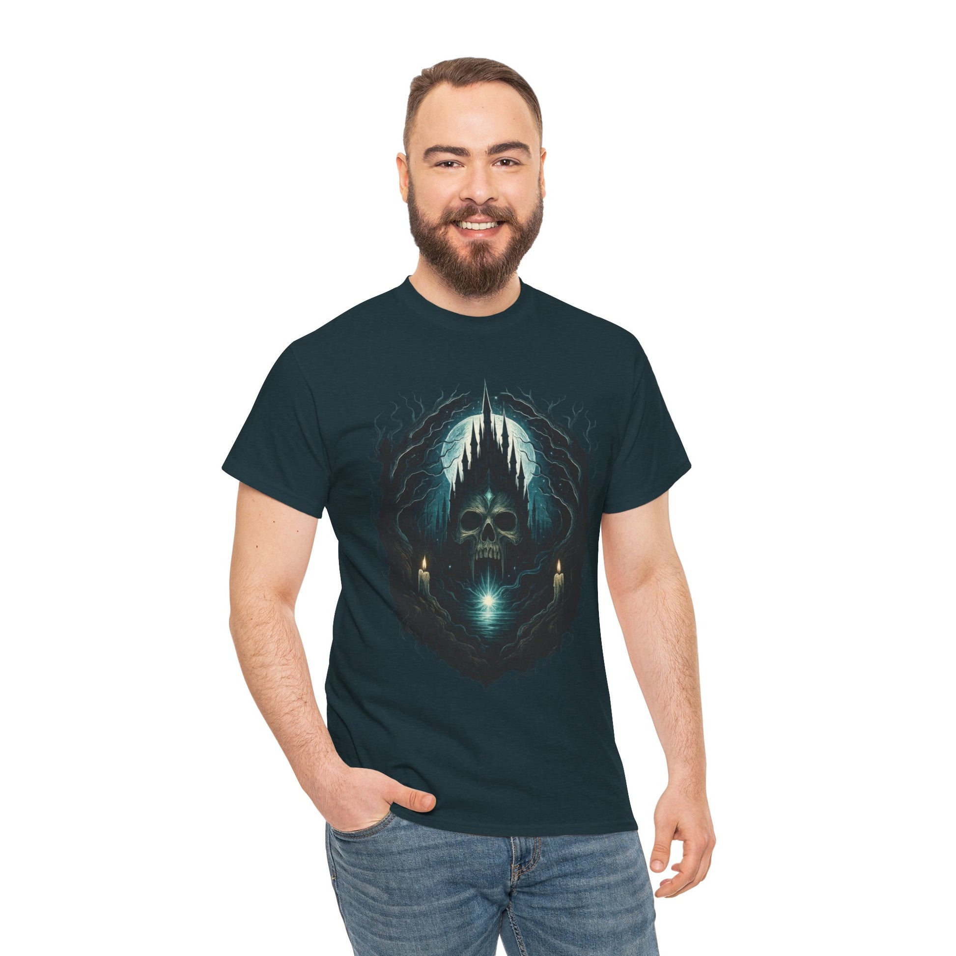 Gothic Skull Castle Men's T-Shirt, Dark Horror Haunted Night Graphic Tee, Halloween Shirt