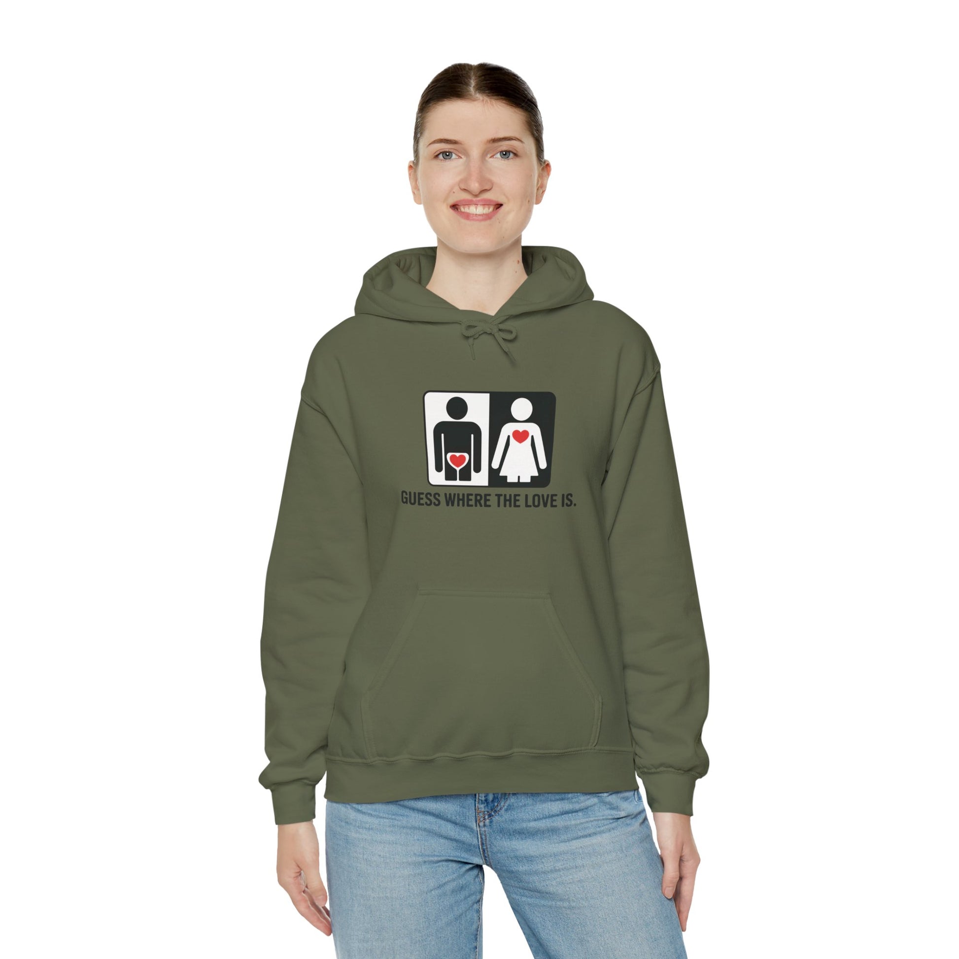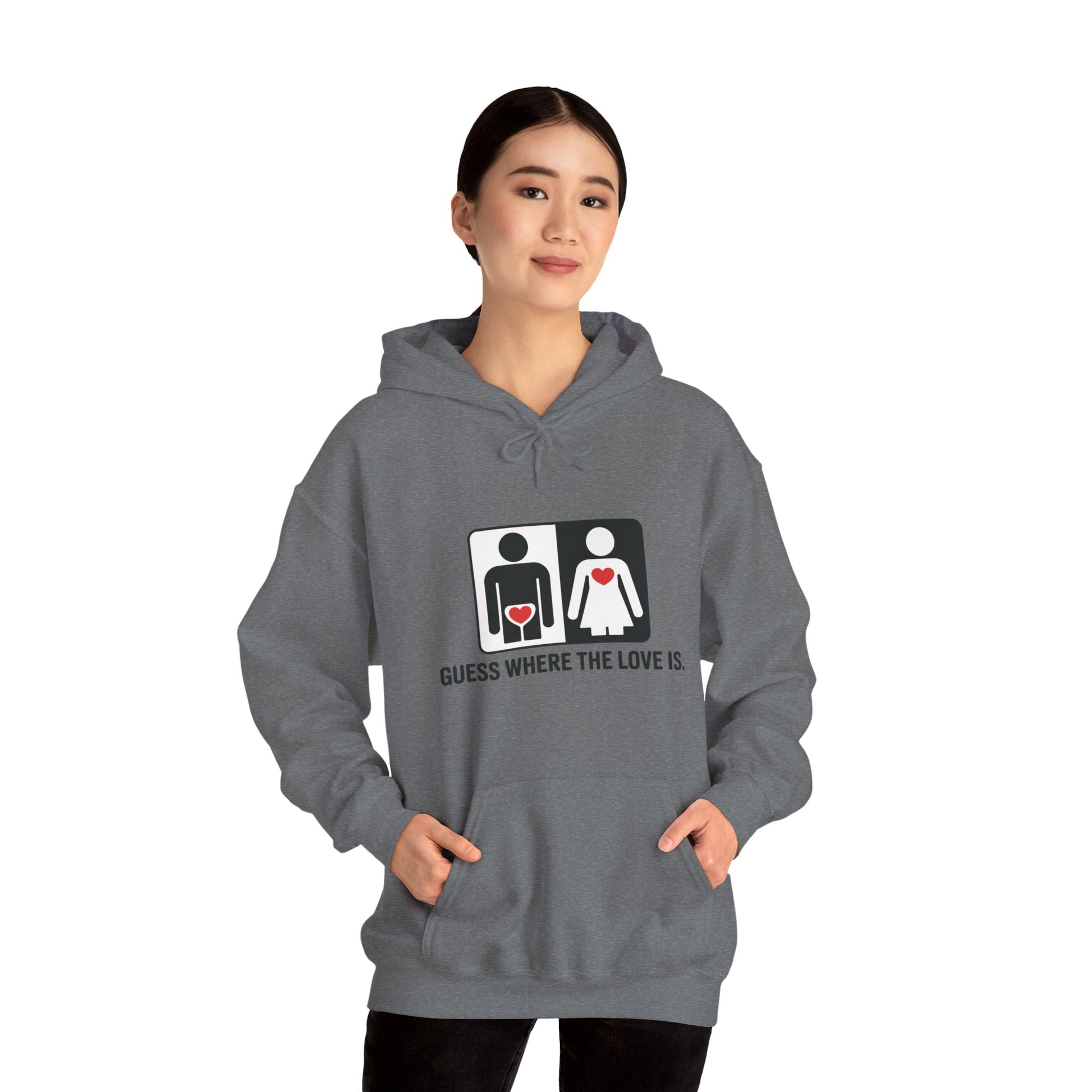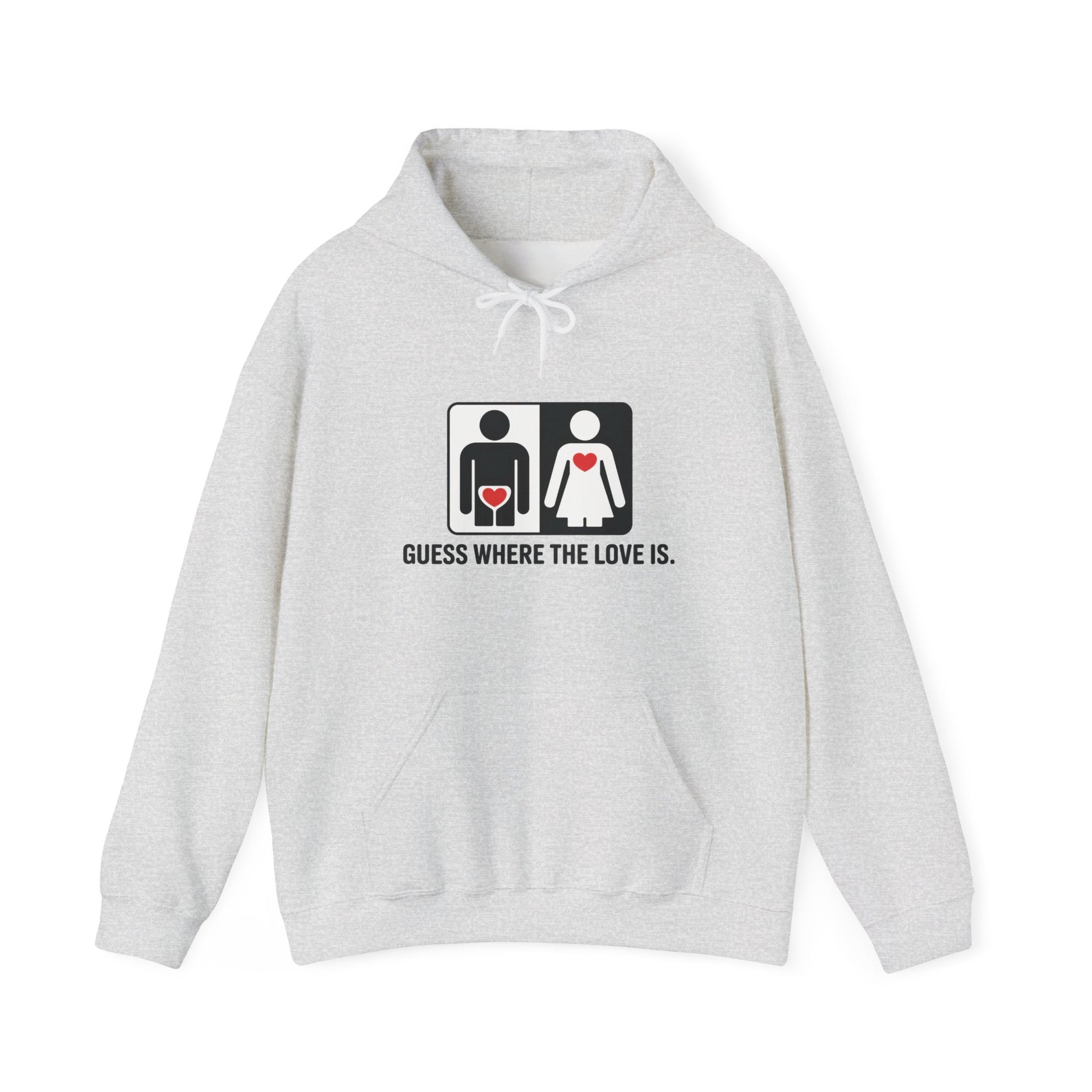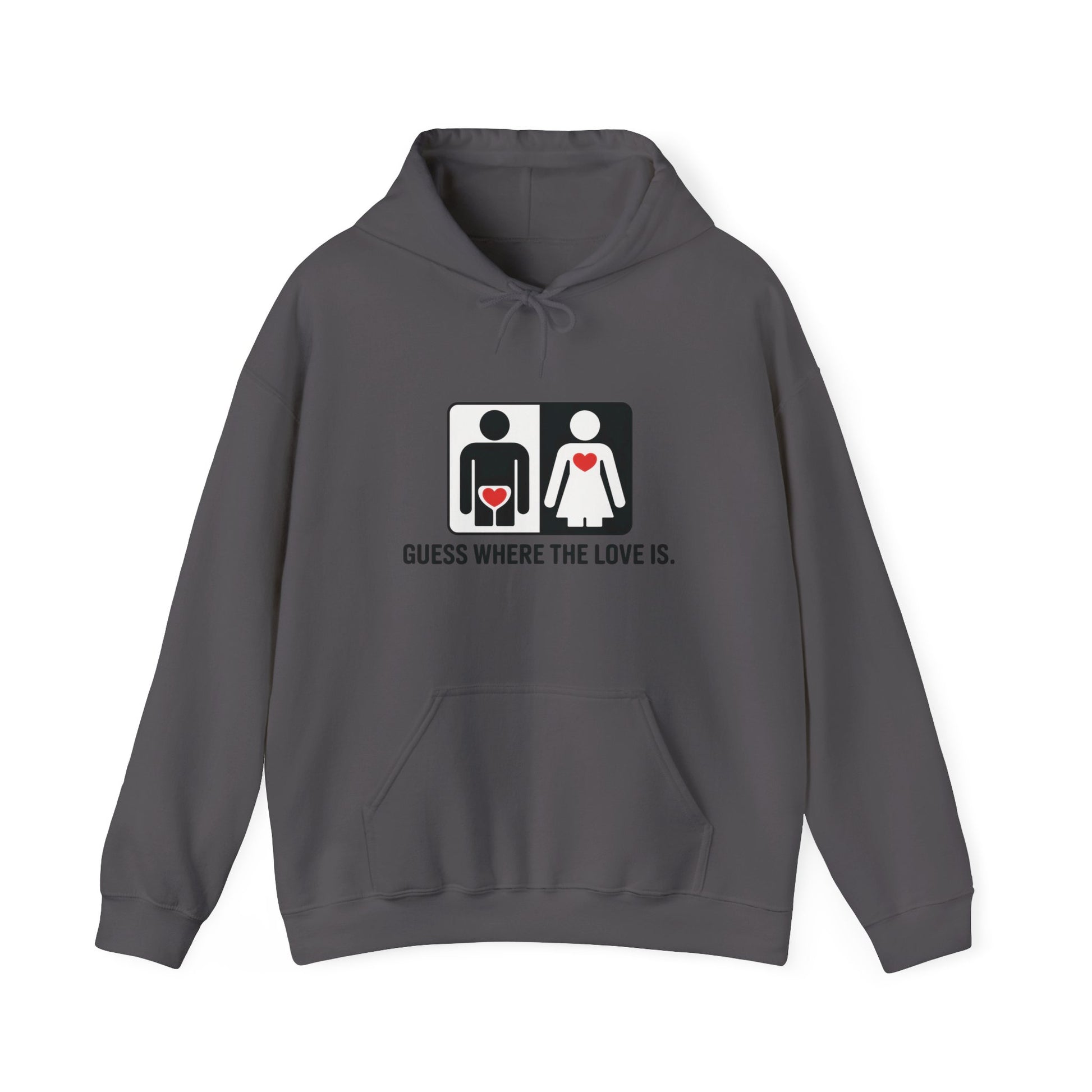Guess Where the Love Is Hoodie, Cute Couples Hoodie, Valentines Day Gift, Matching Outfits, Witty Relationship Hoodie, Love Joke Graphic