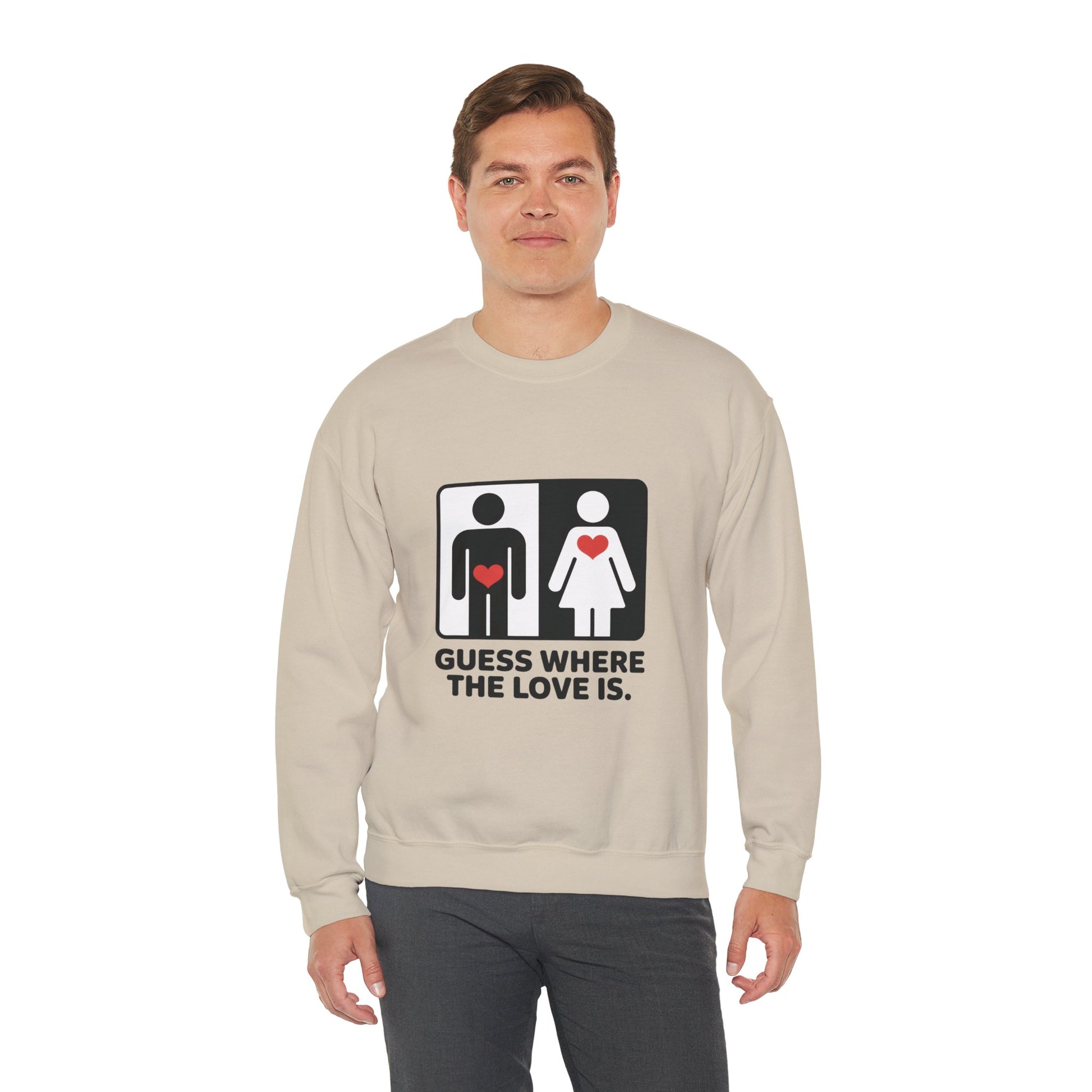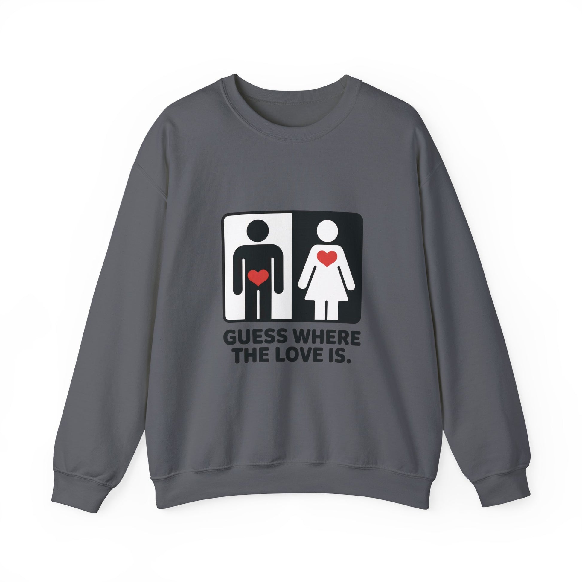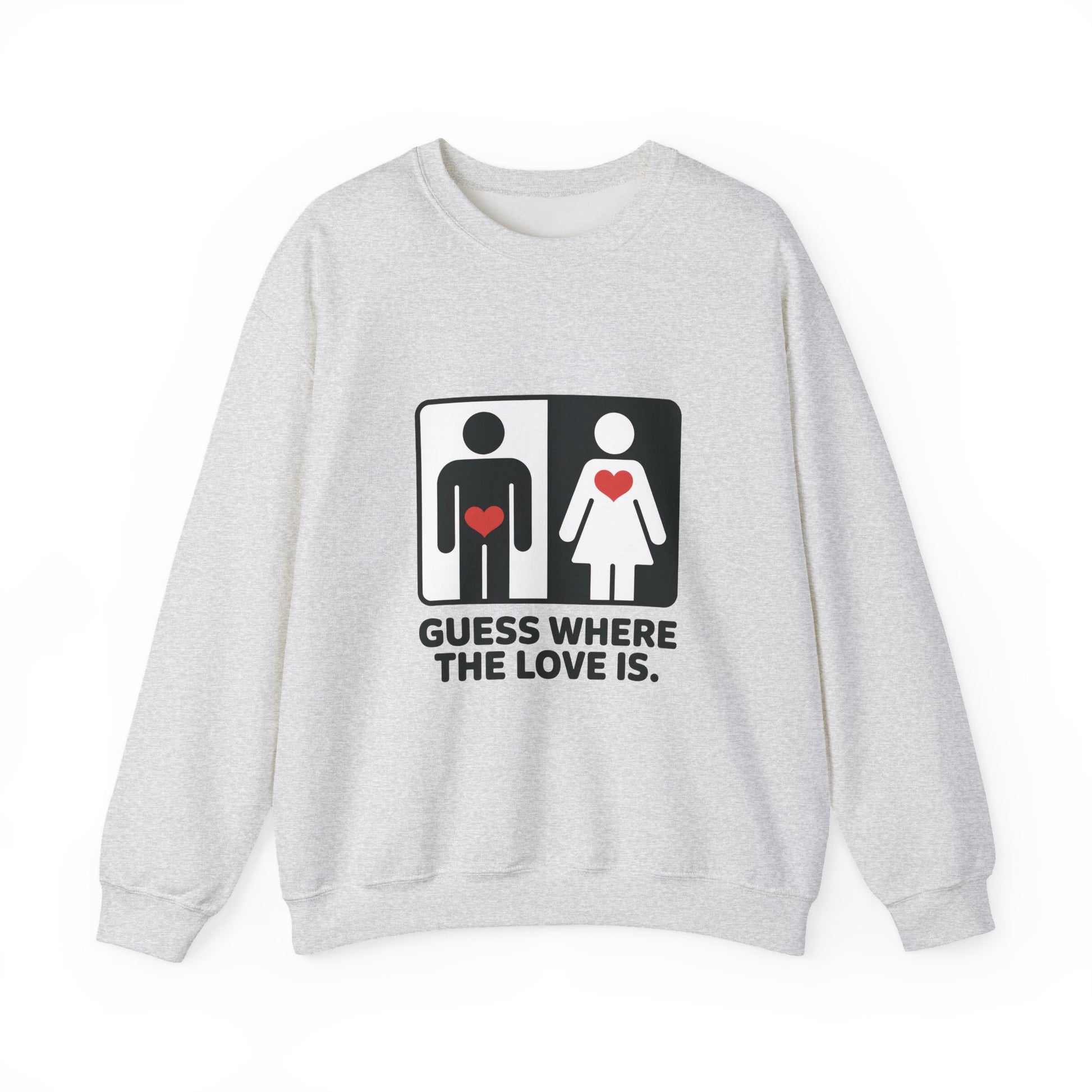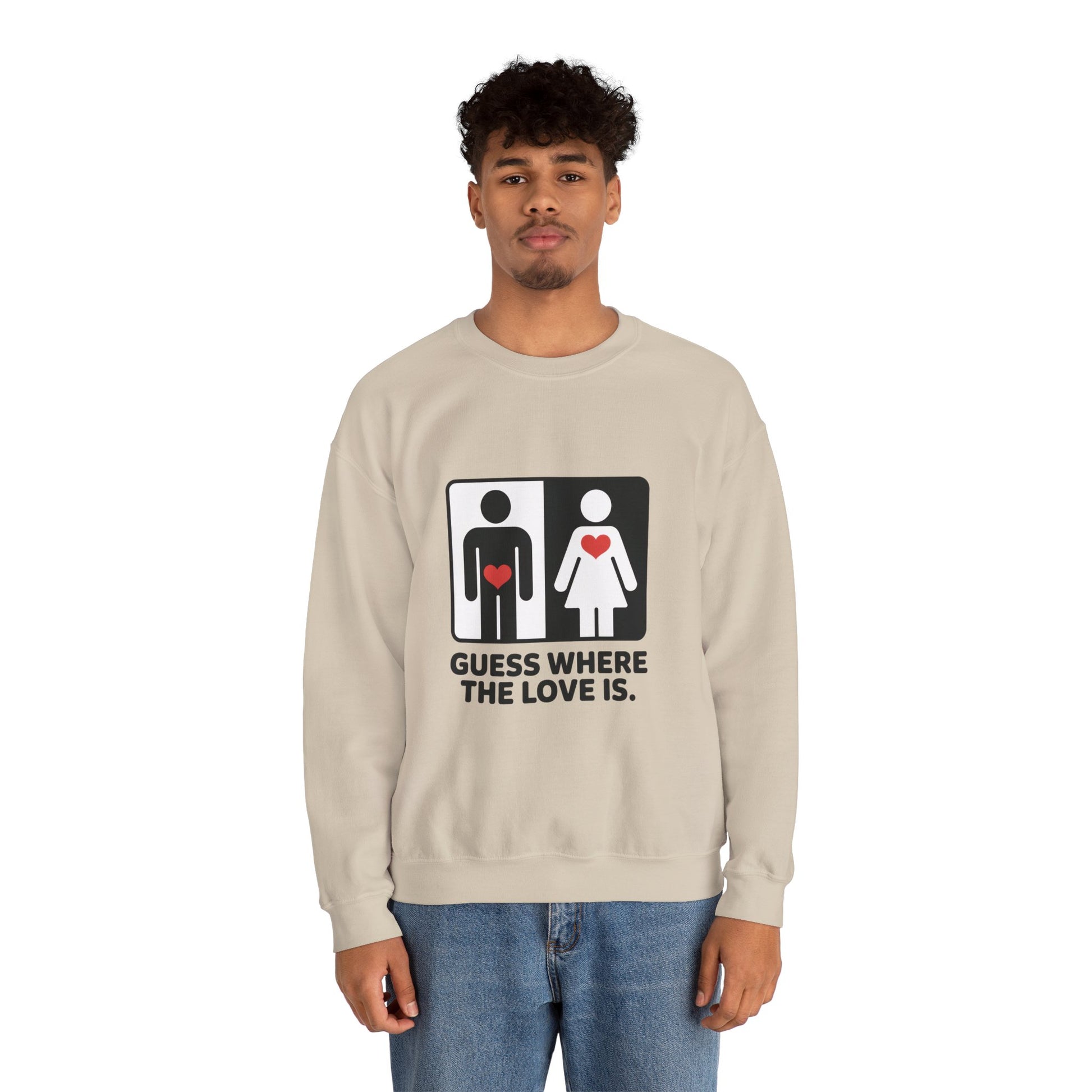 Guess Where the Love Is Mens Crewneck Sweatshirt, Cute Couples Gift, Love Themed Apparel, Valentine's Day Apparel, Relationship Sweatshirt