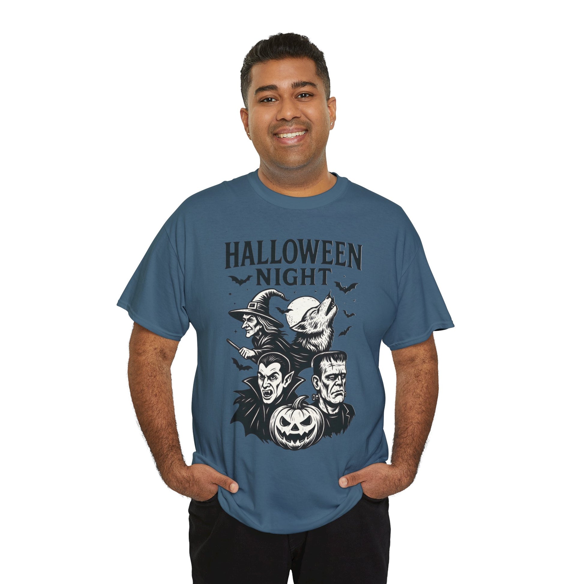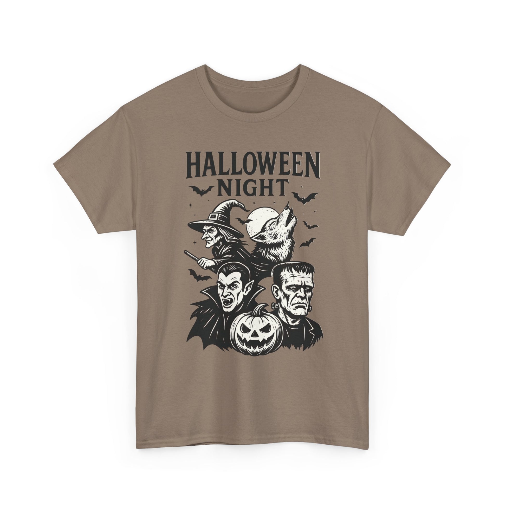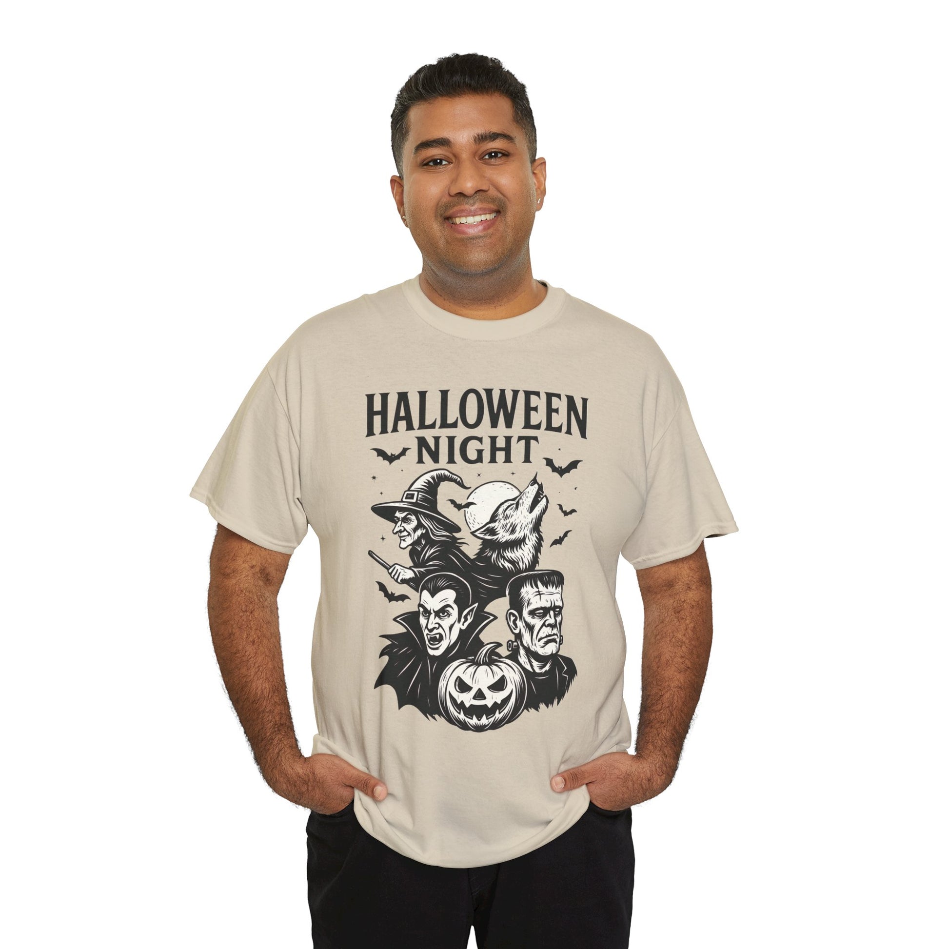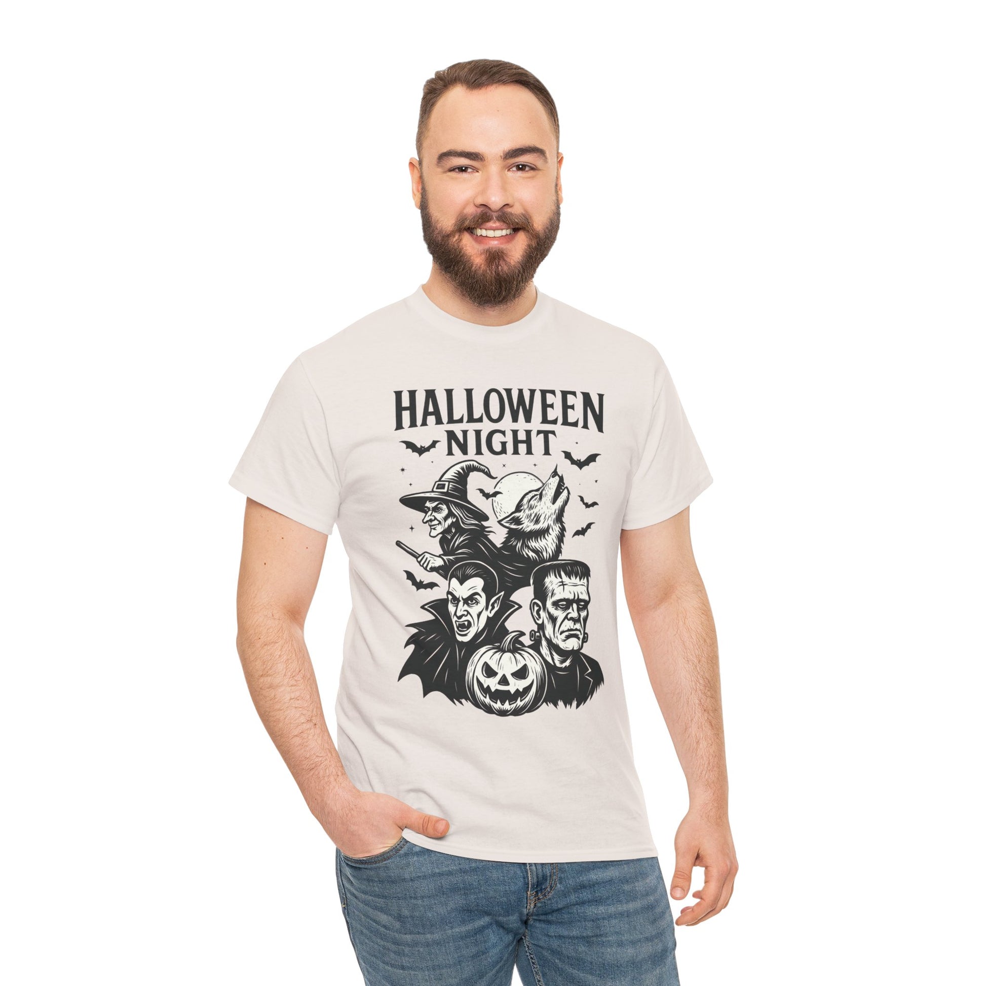 Halloween Night Men's T-Shirt, Classic Monsters Graphic Tee, Witch, Vampire, Frankenstein, Werewolf
