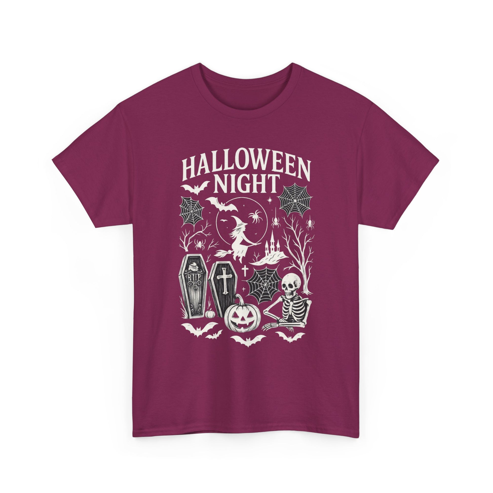 Halloween Night Women's T-Shirt, Gothic Witch Skeleton Pumpkin Tee, Spooky Scary Shirt for Halloween Party