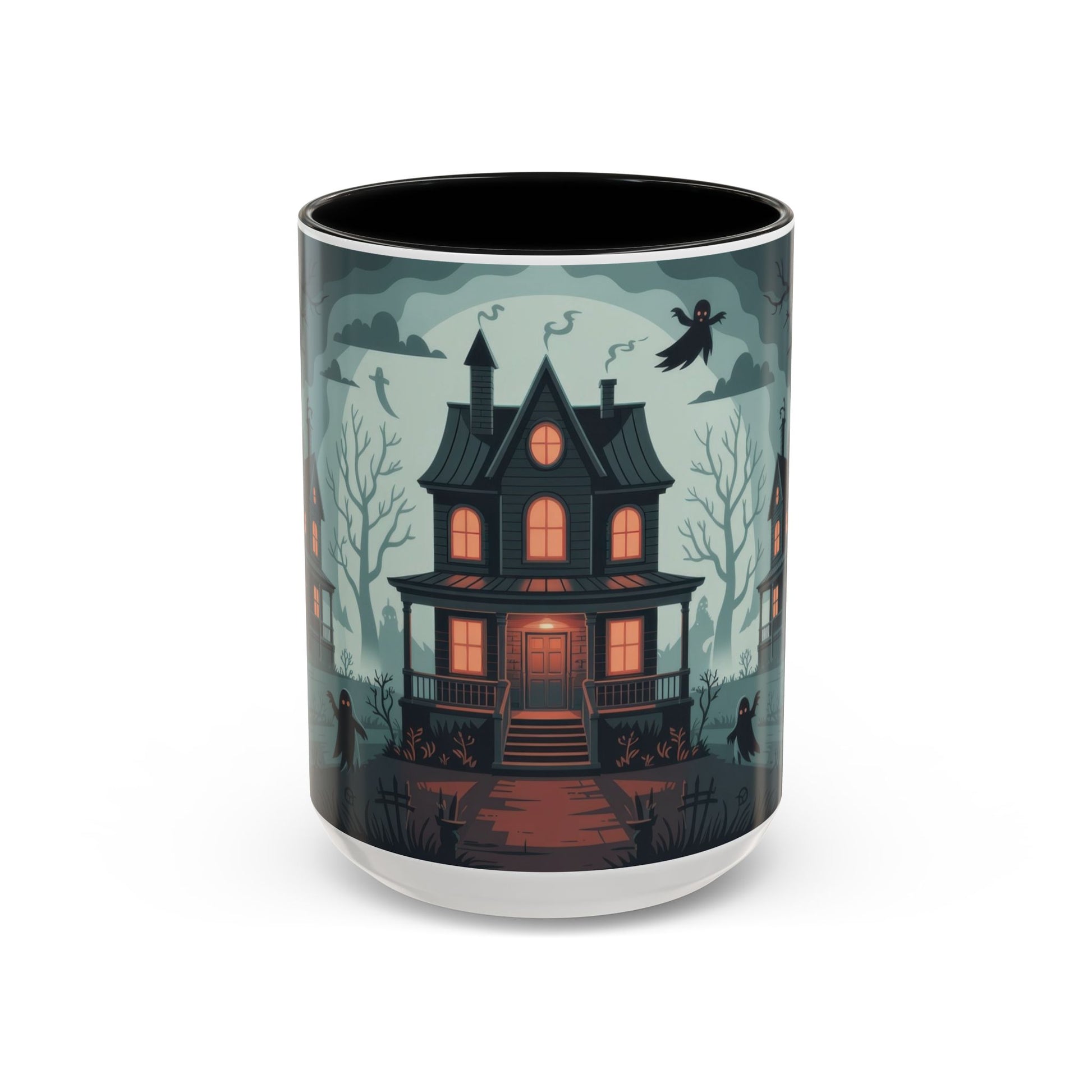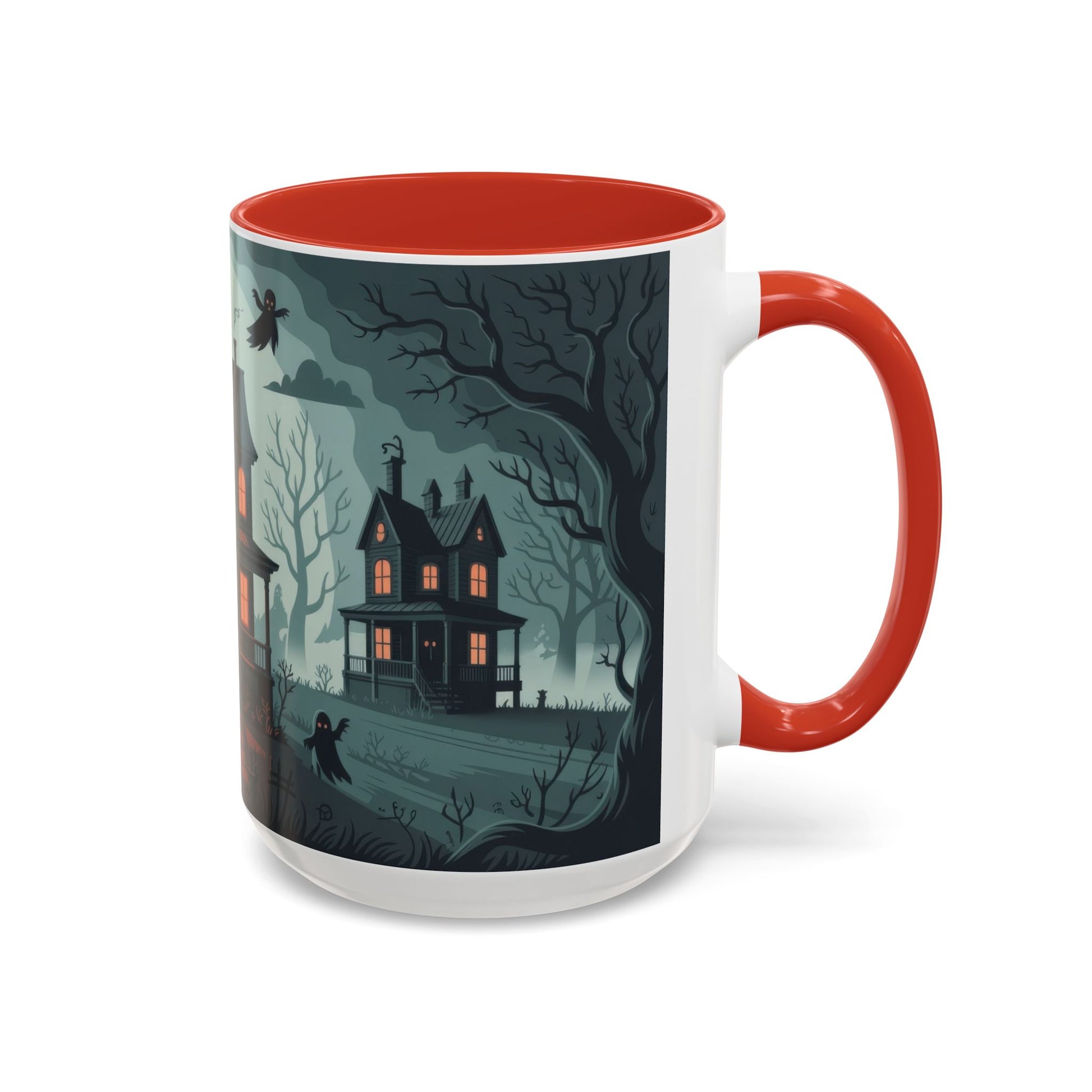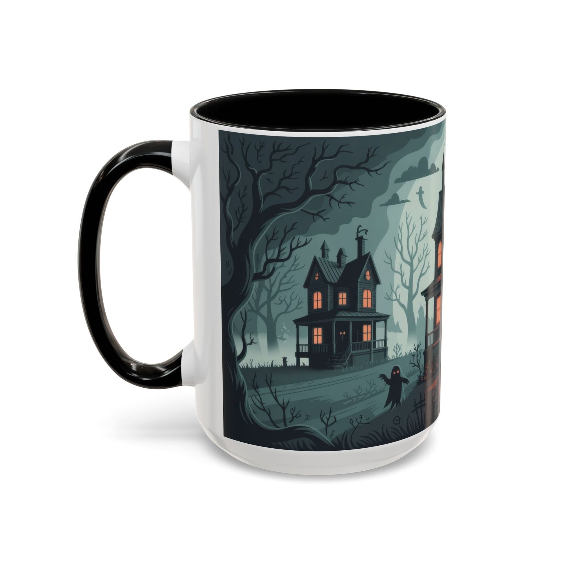 Haunted Mansion Mug, Ghostly Gothic Forest Coffee Cup, Spooky Haunted House Halloween Gift for Horror Lovers, Accent Coffee Mug (11, 15oz)