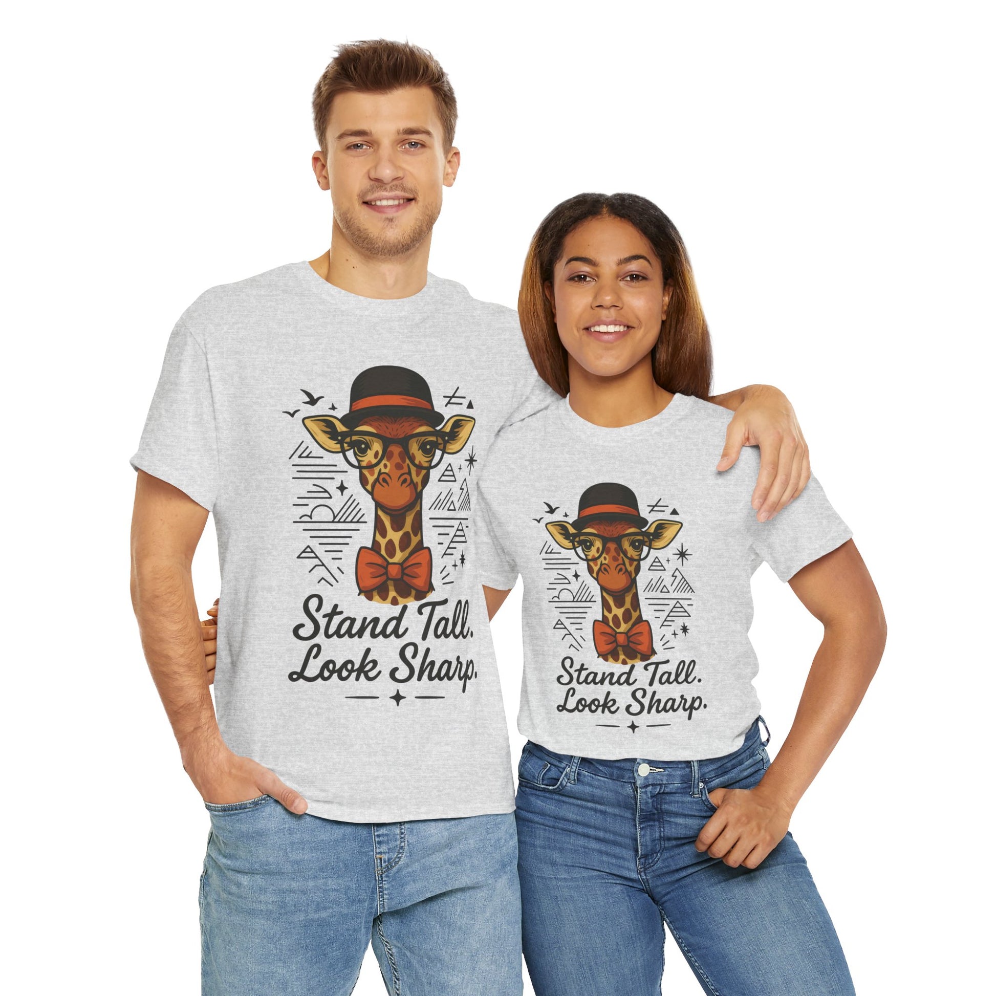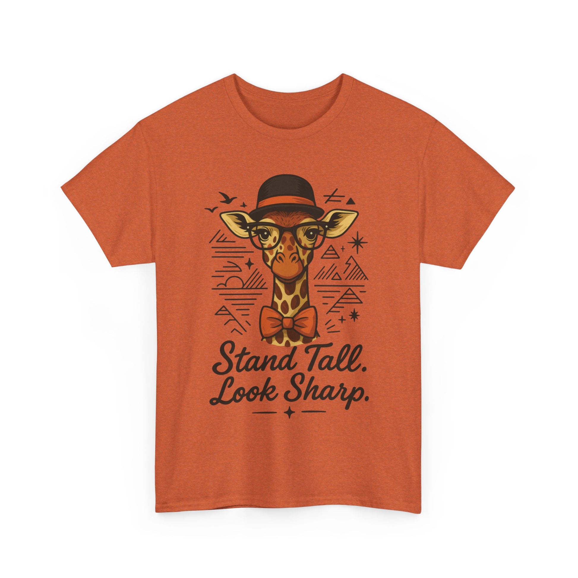 Hipster Giraffe T-Shirt with Hat and Glasses, Whimsical Giraffe Tee, Fun Gift, Cute Graphic Shirt, Unisex Heavy Cotton Tee