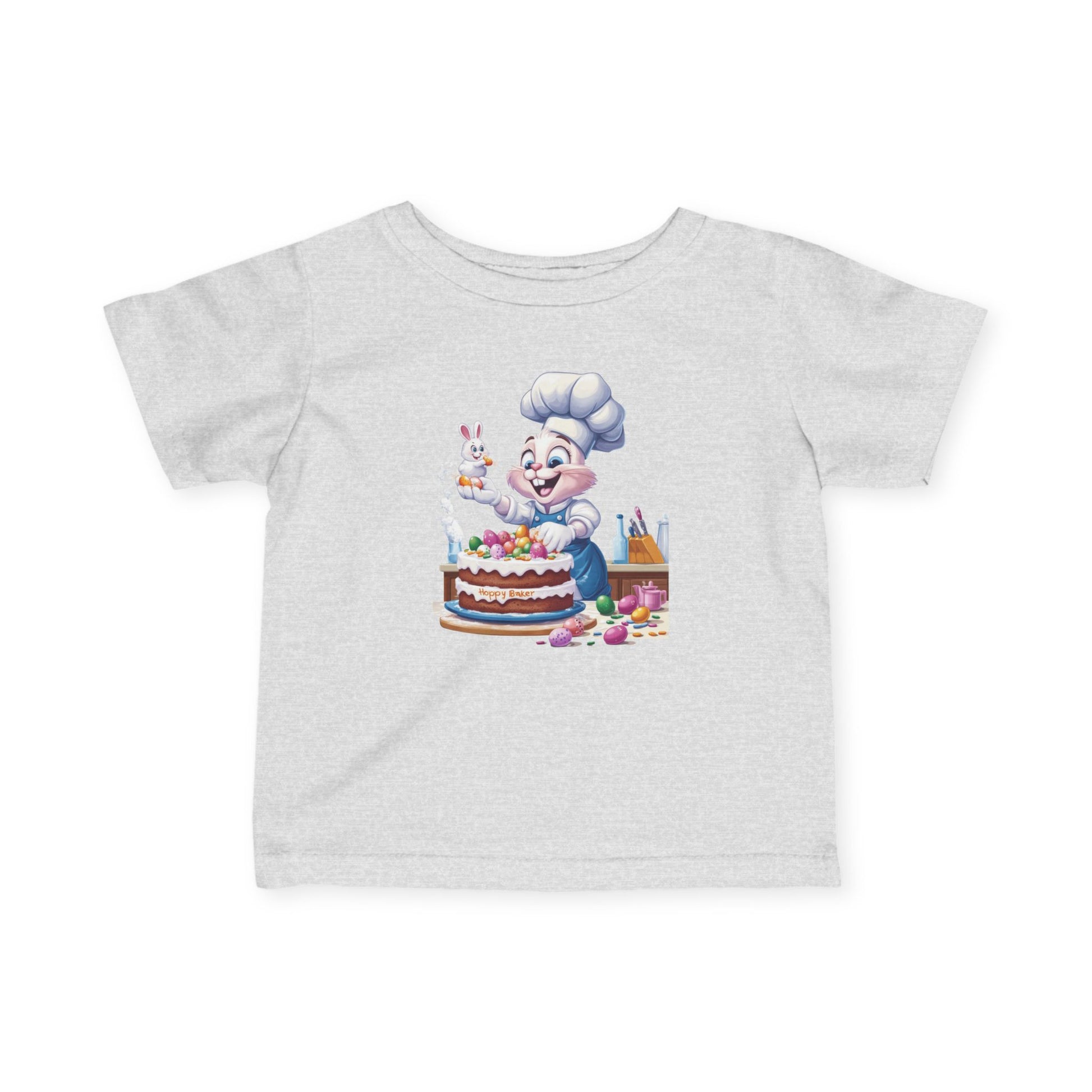 Hoppy Baker Easter Bunny Baby T-Shirt - Cute Infant Tee with Chef Bunny and Cake, Fun Spring Outfit for Babies, Easter Toddler Tee