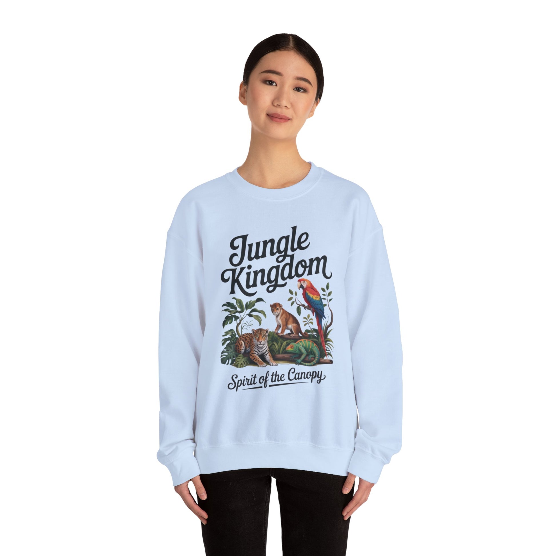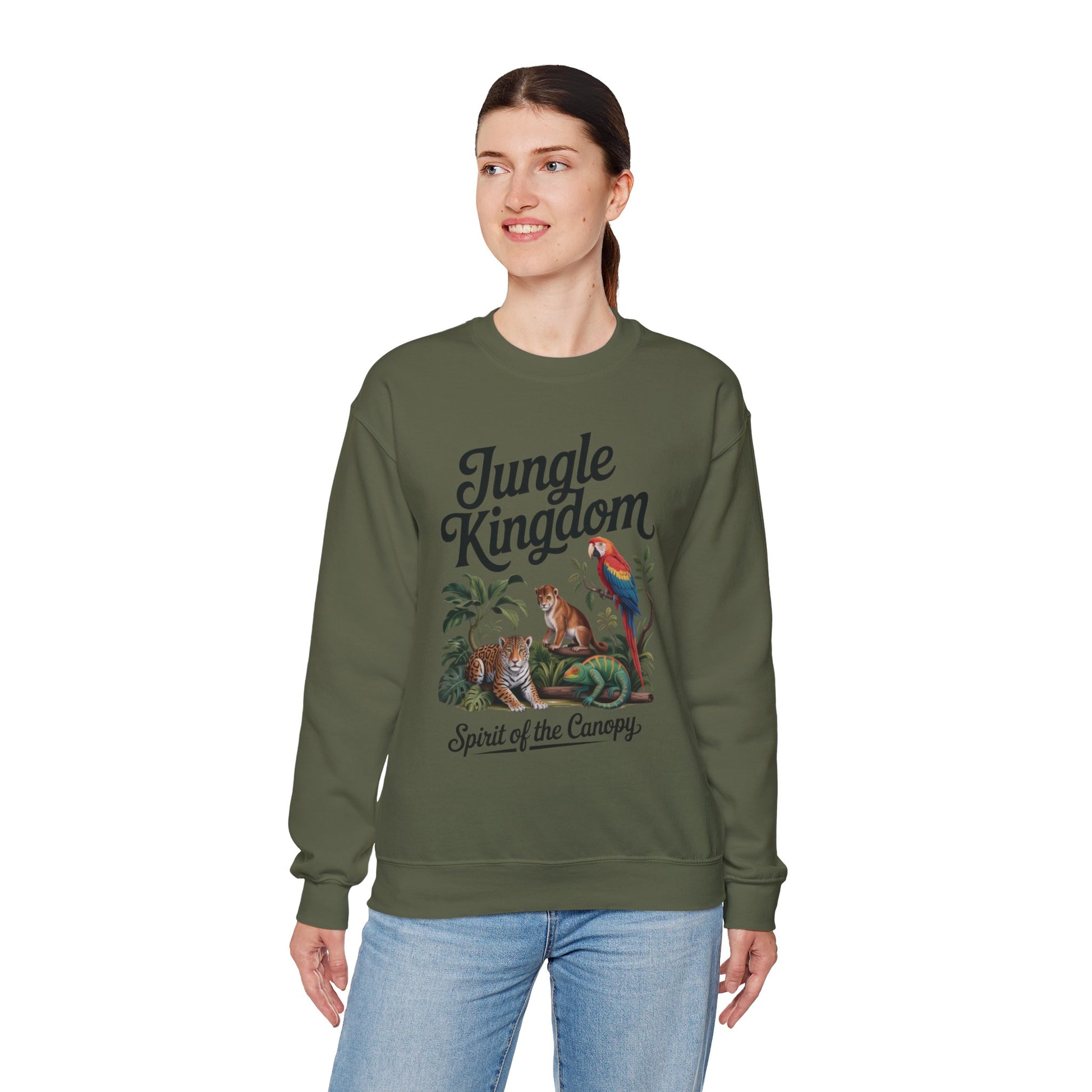 Jungle Kingdom Womens Sweatshirt, Cozy Jungle Crewneck, Nature Lover Gift, Wildlife Artwork, Eco-Conscious Apparel, Animal Enthusiast Clothing