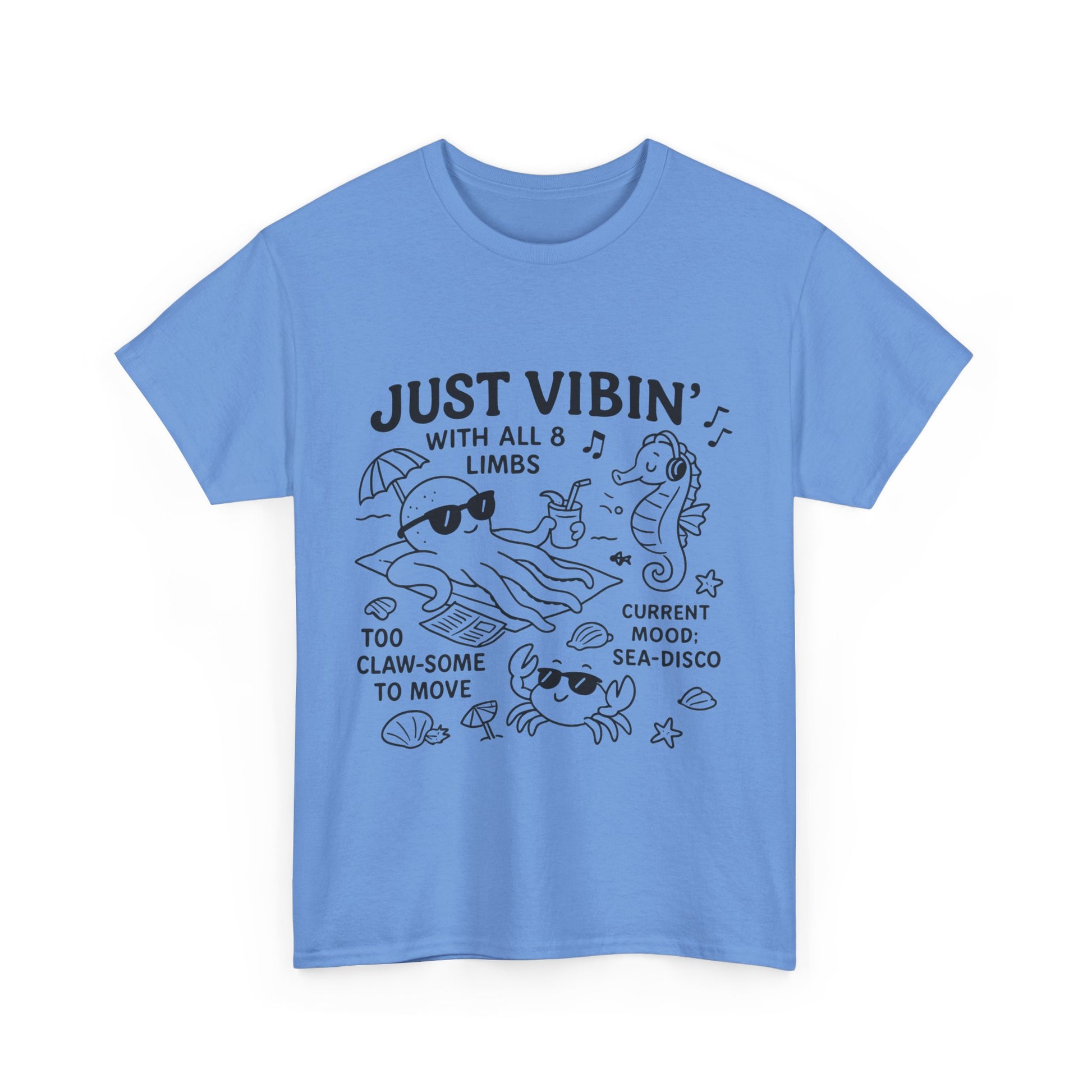 Just Vibin Womens T-Shirt, Cute Octopus & Sea Animals Graphic Tee, Funny Sea Disco Summer Shirt, Beach Vibes Gift for Her, Ocean Theme