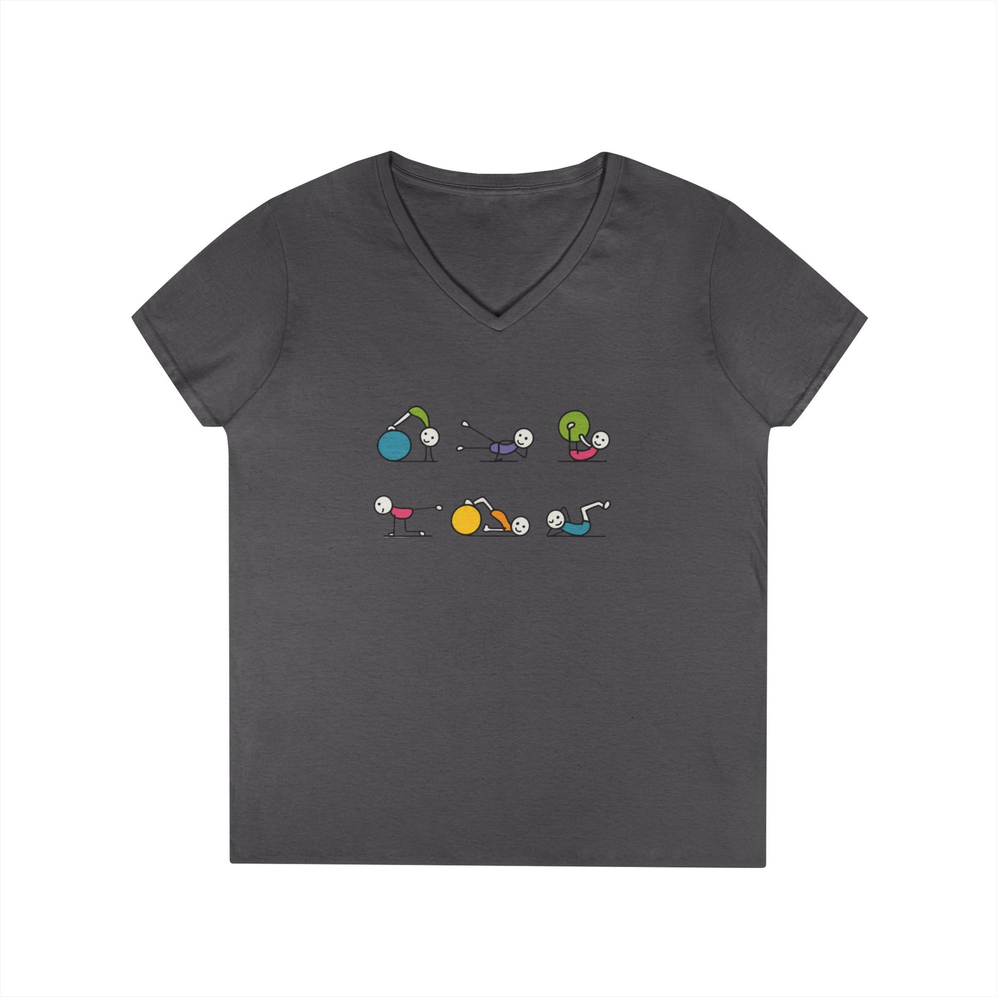 Ladies V-Neck T-Shirt, Fit Fun Pilates Figure Womens T-Shirt, Cute Workout Tee, Funny Yoga Gym Top for Women
