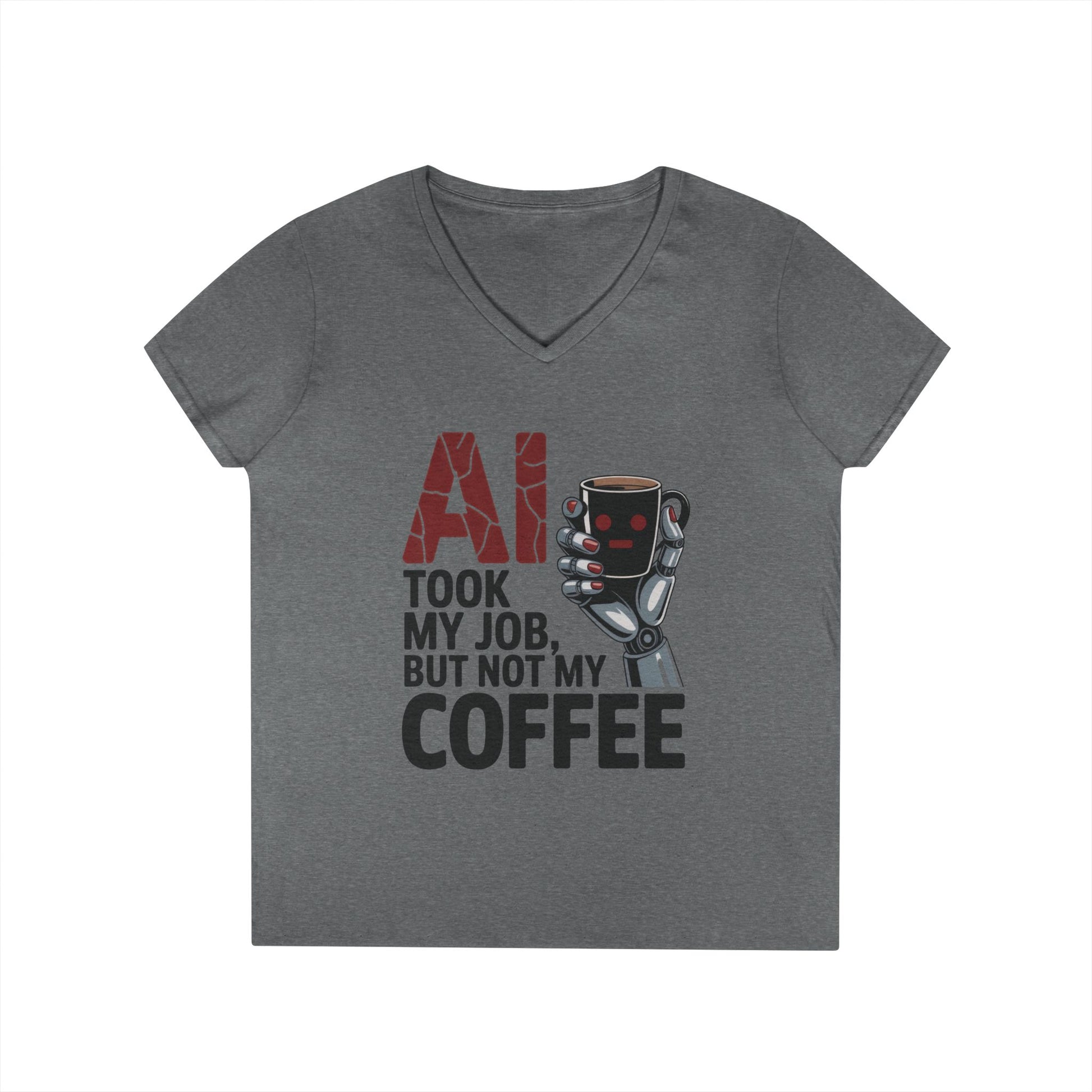 Ladies' V-Neck T-Shirt, Women's AI Coffee T-Shirt, Funny Robot Job Humor Tee, Geek Sarcastic Gift for Her, Sarcastic Work Shirt