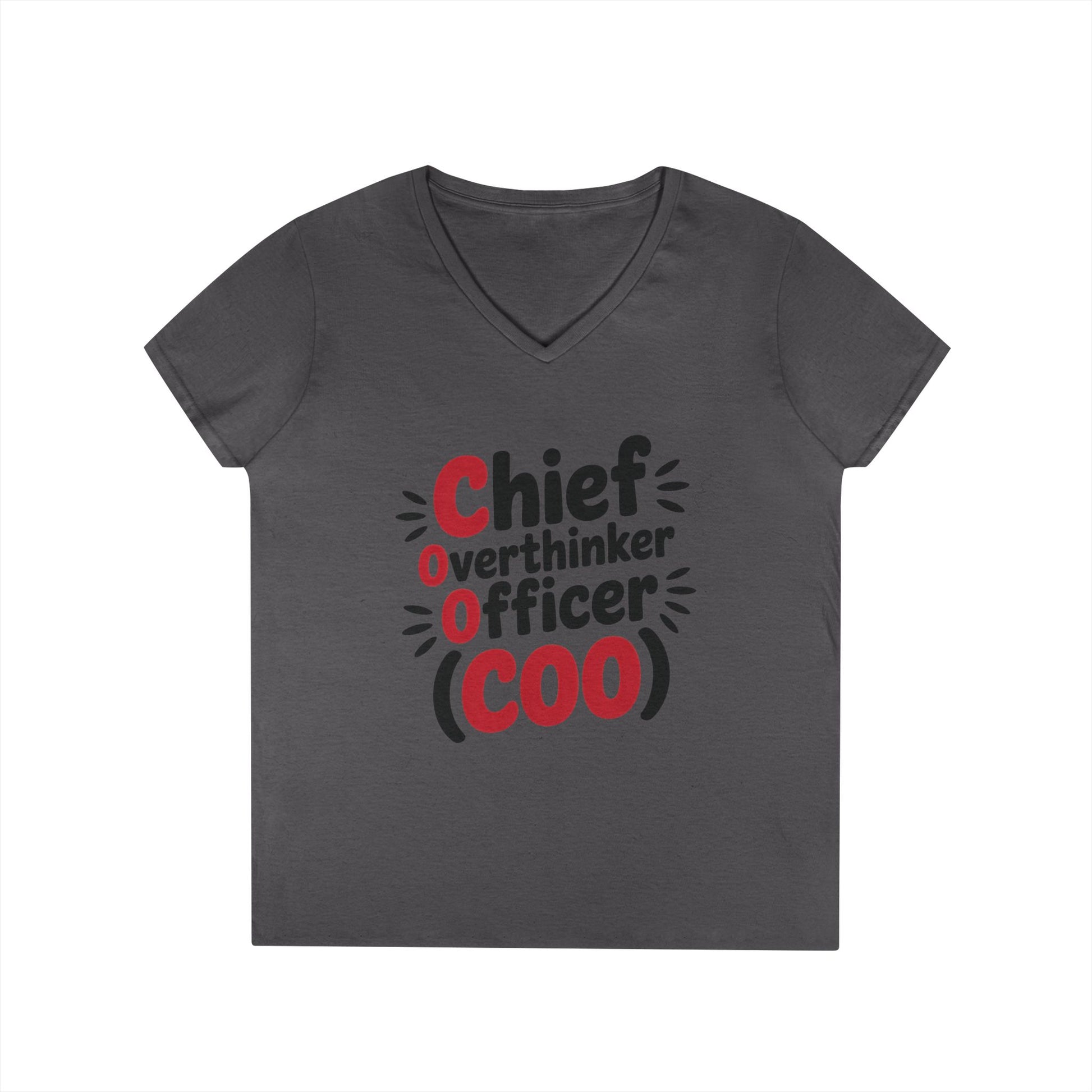 Ladies' V-Neck T-Shirt, Women's COO T-Shirt, Chief Overthinker Officer Funny Graphic Tee, Sarcastic Work Shirt