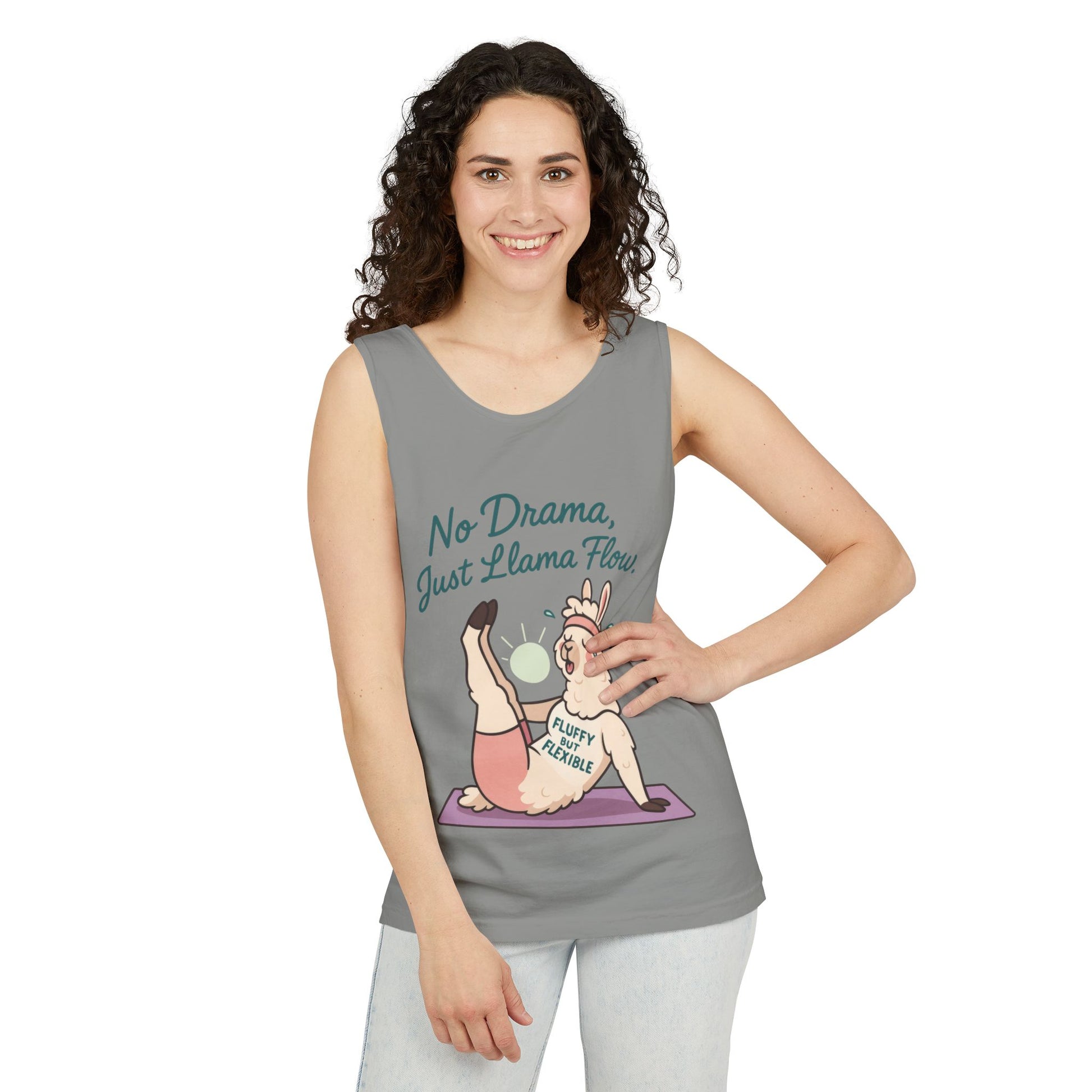 Embrace a relaxed vibe with this comfy unisex garment-dyed tank top! Perfect for workout sessions, lounging at home, or casual outings, its playful design featuring a charming llama adds a touch of humor to your wardrobe. Made from 100% ringspun cotton, this tank offers a soft texture and breathable feel, making it an ideal choice for warm days. The relaxed fit allows for easy movement, perfectly suiting those who love to stay active or simply enjoy chill days with friends. This tank top is a great gift for yoga lovers, animal enthusiasts, or anyone who appreciates fun and comfort. It’s fantastic for summer parties, birthdays, and just-because gifts, adding a quirky touch to any celebration. Product features - 100% ringspun cotton for a soft and durable fabric. - Self fabric binding ensures a clean and stylish look. - Seamless design reduces waste and improves comfort. - Garment-dyed for a unique soft color and texture. - Relaxed fit perfect for all-day wear. Care instructions - Machine wash: cold (max 30C or 90F) - Non-chlorine: bleach as needed - Tumble dry: low heat - Iron, steam or dry: low heat - Do not dryclean