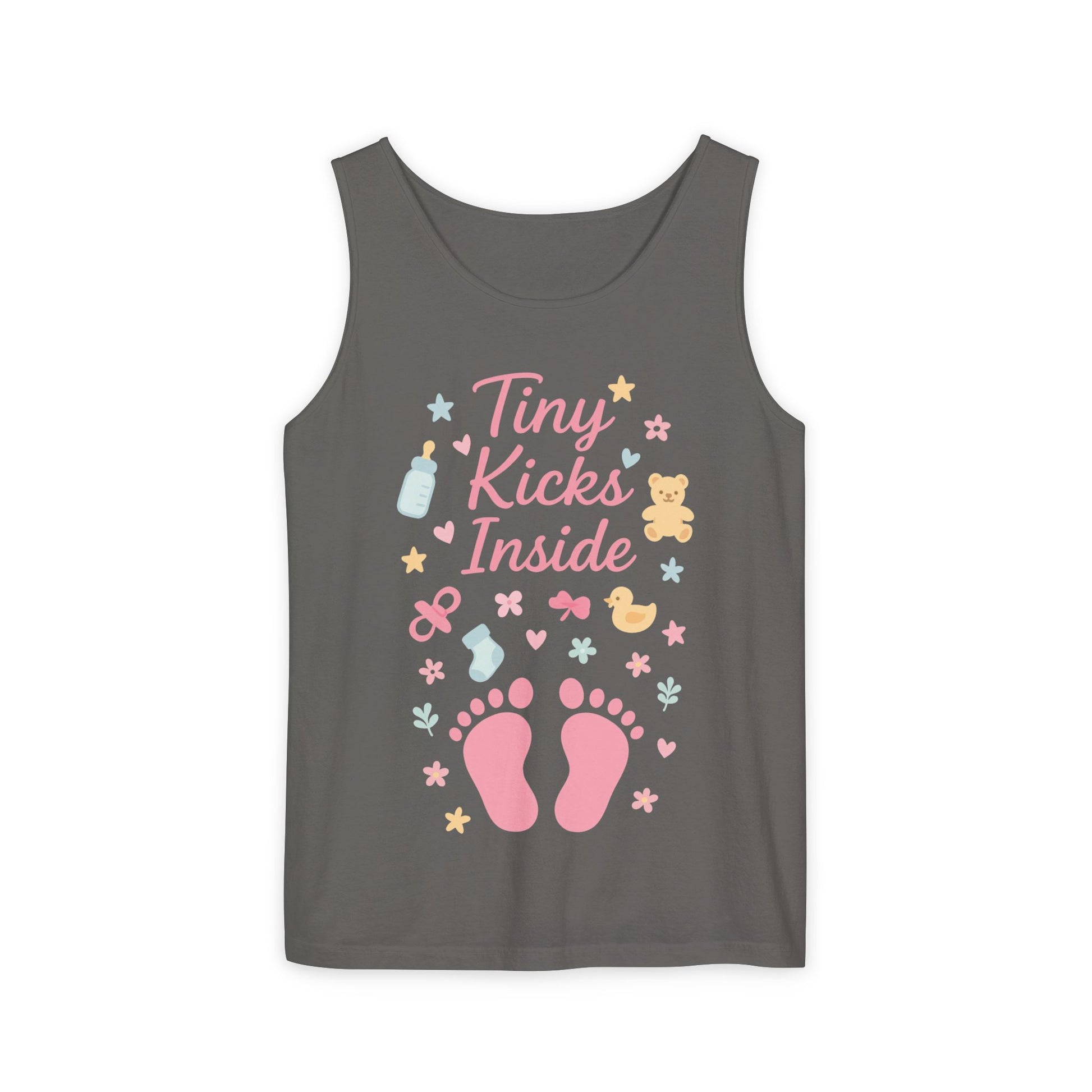 Introducing a delightful Unisex Garment-Dyed Tank Top, perfect for expecting parents to celebrate their joyous journey. This tank top radiates warmth and excitement, adorned with a charming design that captures the anticipation of new life. Its soft, comfortable fabric makes it ideal for everyday wear or special occasions such as baby showers and gender reveal parties. Whether you're lounging at home or out and about, this tank top adds a touch of love to your wardrobe. Embrace your pregnancy with style and comfort, making it a thoughtful gift for any mom-to-be or a lovely treat for yourself. Product features - 100% ring spun cotton provides a soft and smooth texture, ideal for printing. - Self fabric binding enhances durability and maintains a cohesive look. - Seamless design from tubular knit reduces fabric waste and adds visual appeal. - Garment-dyed fabric gives a unique softness and attractive color. - Relaxed fit ensures comfort during casual outings or lounging at home. Care instructions - Machine wash: cold (max 30C or 90F) - Non-chlorine: bleach as needed - Tumble dry: low heat - Iron, steam or dry: low heat - Do not dryclean