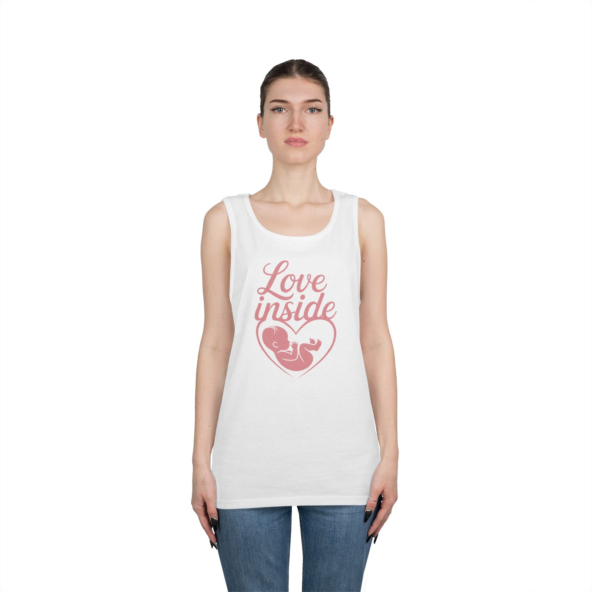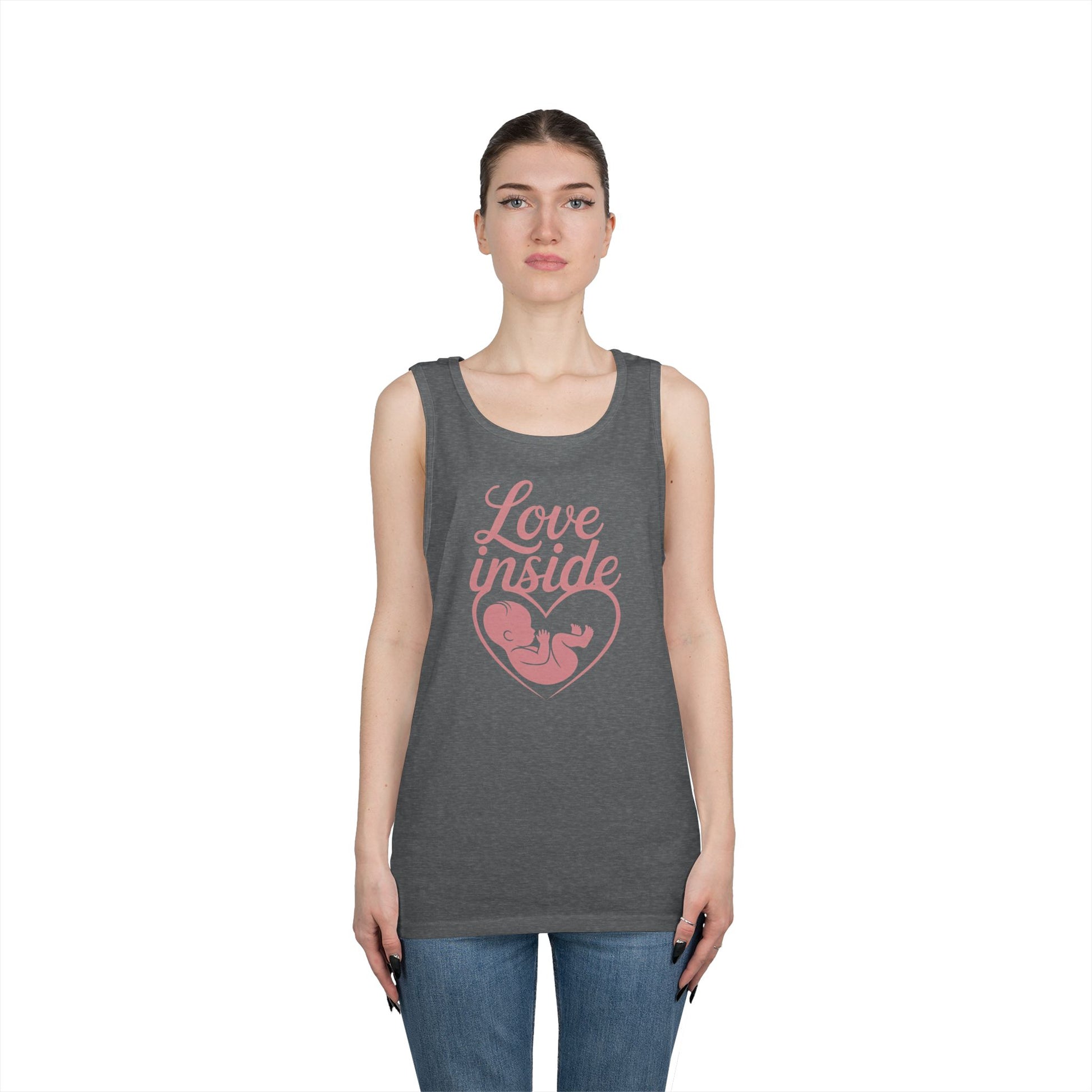 Elevate your casual wardrobe with this Unisex Heavy Cotton Tank Top, perfect for expressing love and joy in your life. The soft fabric and classic fit make it an ideal choice for warm days or layering under jackets during the cooler seasons. This tank top radiates a light-hearted and affectionate vibe, making it a wonderful gift or personal piece for expecting parents or anyone celebrating the concept of new beginnings. Whether it’s for a baby shower, Mother’s Day, or a thoughtful celebration of family, this versatile apparel fits easily into both relaxed home settings and fun outings. Perfect for those who appreciate comfort and style while sharing their love with the world! Product features - Durable double needle bottom hem for longevity - 1x1 ribbed collar ensures a snug fit - Fiber content varies: 100% cotton for solid colors - Medium fabric weight of 5.3 oz/yd² for comfort - Tear away label for added comfort Care instructions - Machine wash: cold (max 30C or 90F) - Do not bleach - Do not tumble dry - Iron, steam or dry: low heat - Do not dryclean