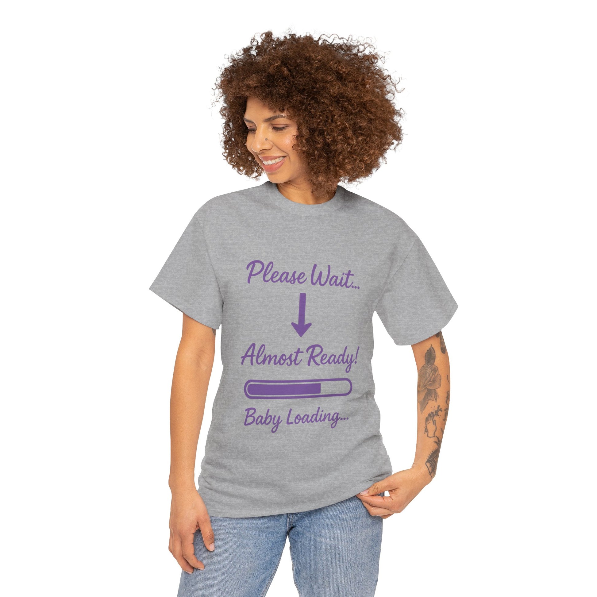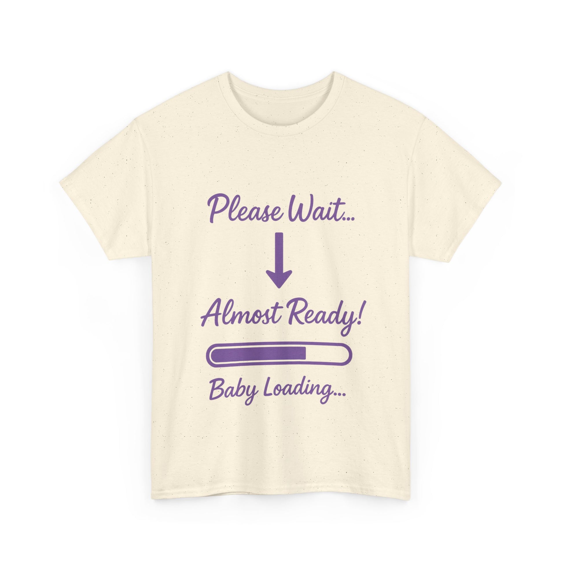 Introducing our Unisex Heavy Cotton Tee, designed to bring a smile while keeping you comfortable. Perfect for expectant parents or thoughtful friends looking to celebrate the joy of pregnancy, this tee captures the anticipation of welcoming a little one into the world with its lighthearted "Please Wait... Almost Ready! Baby Loading..." message. The atmosphere of this shirt is playful and encouraging, making it a great gift for baby showers, maternity celebrations, or simply to wear during those excited months leading up to arrival. Crafted from sustainable cotton, it's not only a stylish choice but also a conscious one, ideal for eco-aware individuals. This tee works well for casual outings or relaxed gatherings, ensuring you feel at ease while sharing your joy with the world. Product features - Shoulder tape for enhanced durability and stability - Seamless design reduces fabric waste and improves aesthetics - Ribbed collar retains shape and elasticity - Composed of strong, smooth fabric ideal for vibrant prints - Comfortable, classic fit suitable for any occasion Care instructions - Non-chlorine: bleach as needed - Do not iron - Do not dryclean - Machine wash: cold (max 30C or 90F) - Tumble dry: low heat