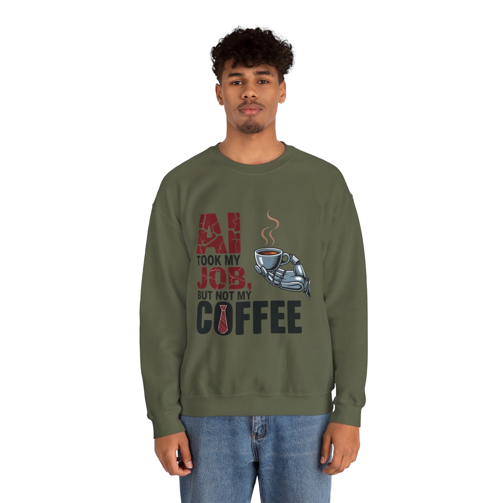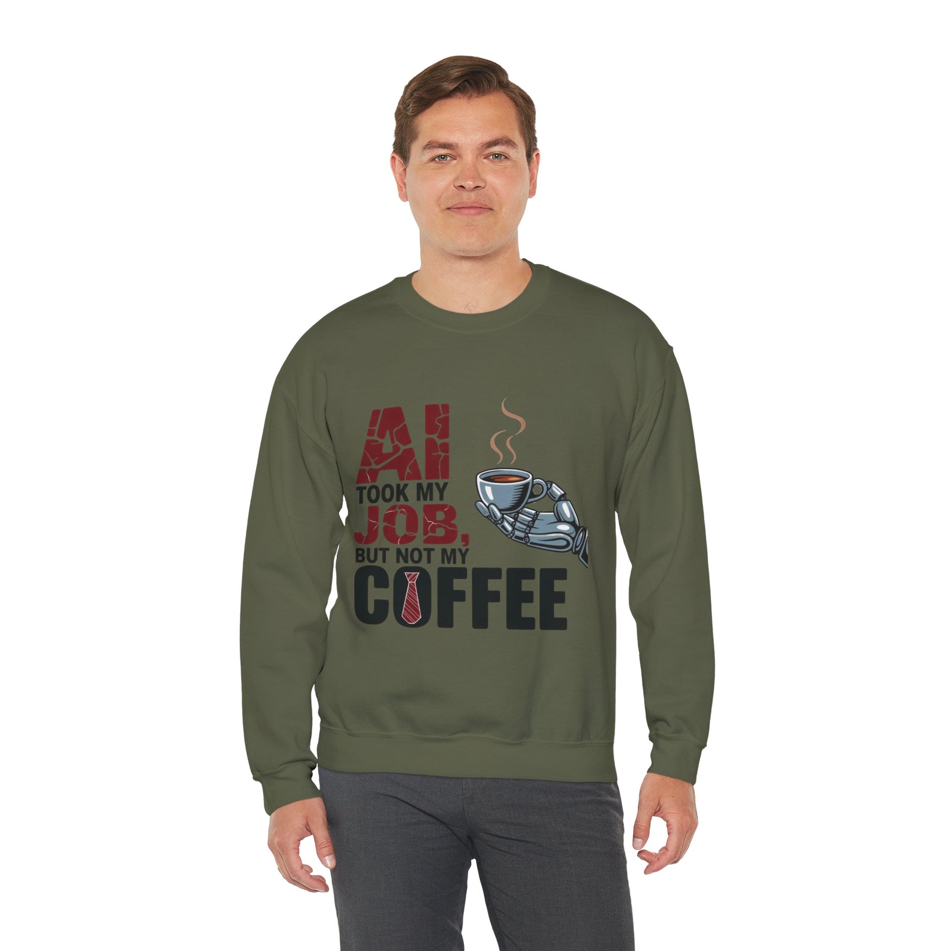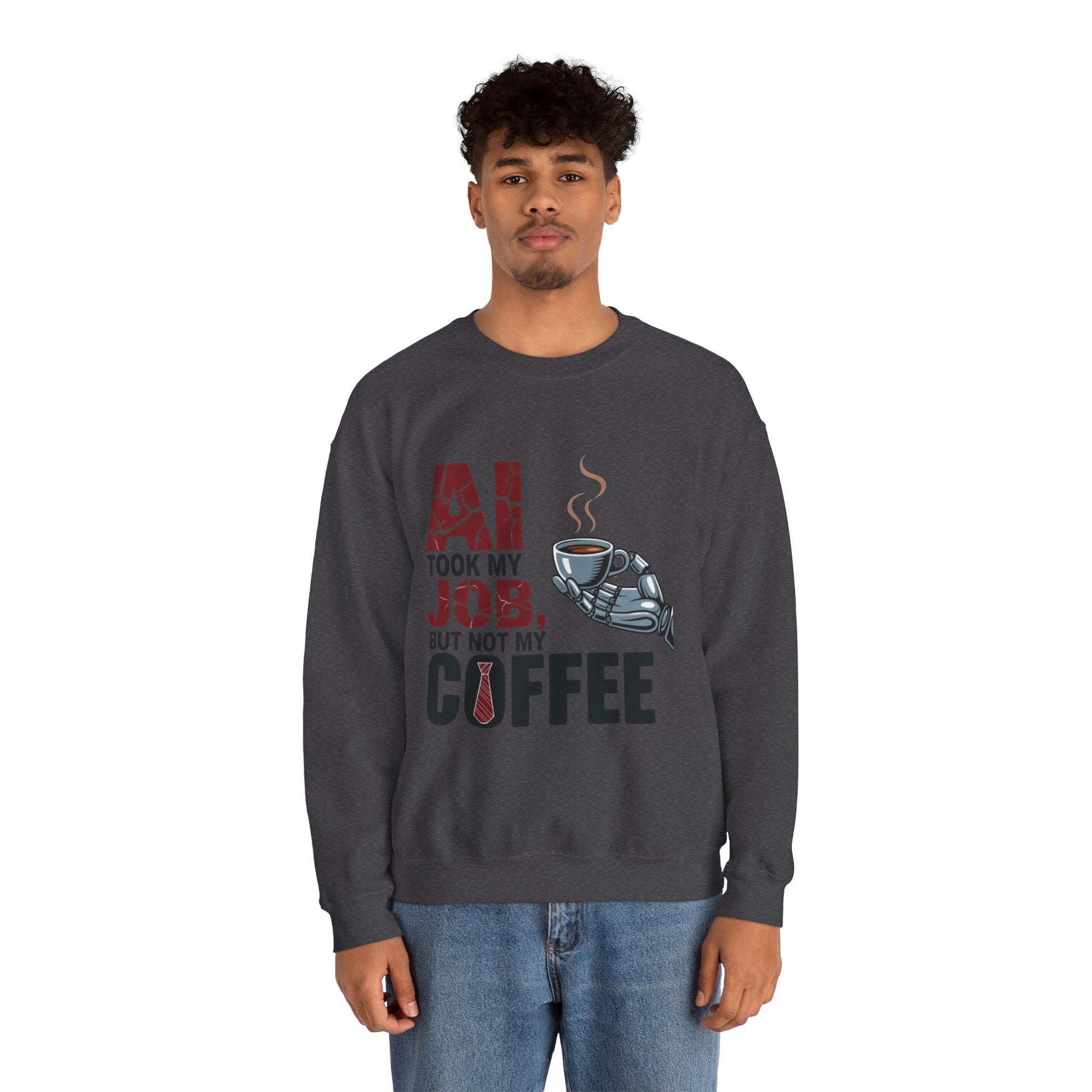 Men's AI Coffee Sweatshirt, Funny Robot Humor Pullover, Geek Sarcastic Job Joke Top, Men's Heavy Blend™ Crewneck Sweatshirt, Office Humor