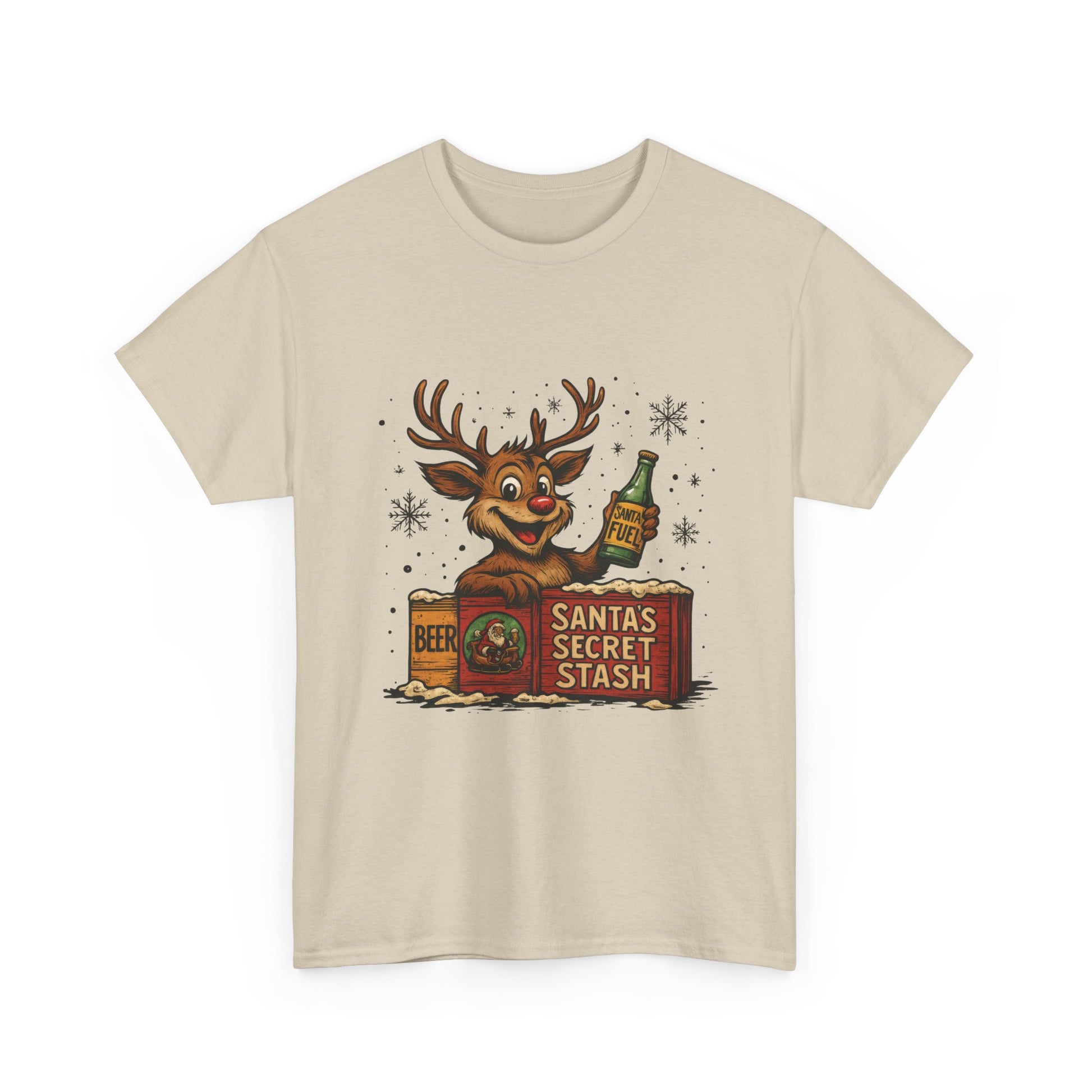 Men's Funny Christmas T-Shirt, Santa's Secret Stash Reindeer Tee