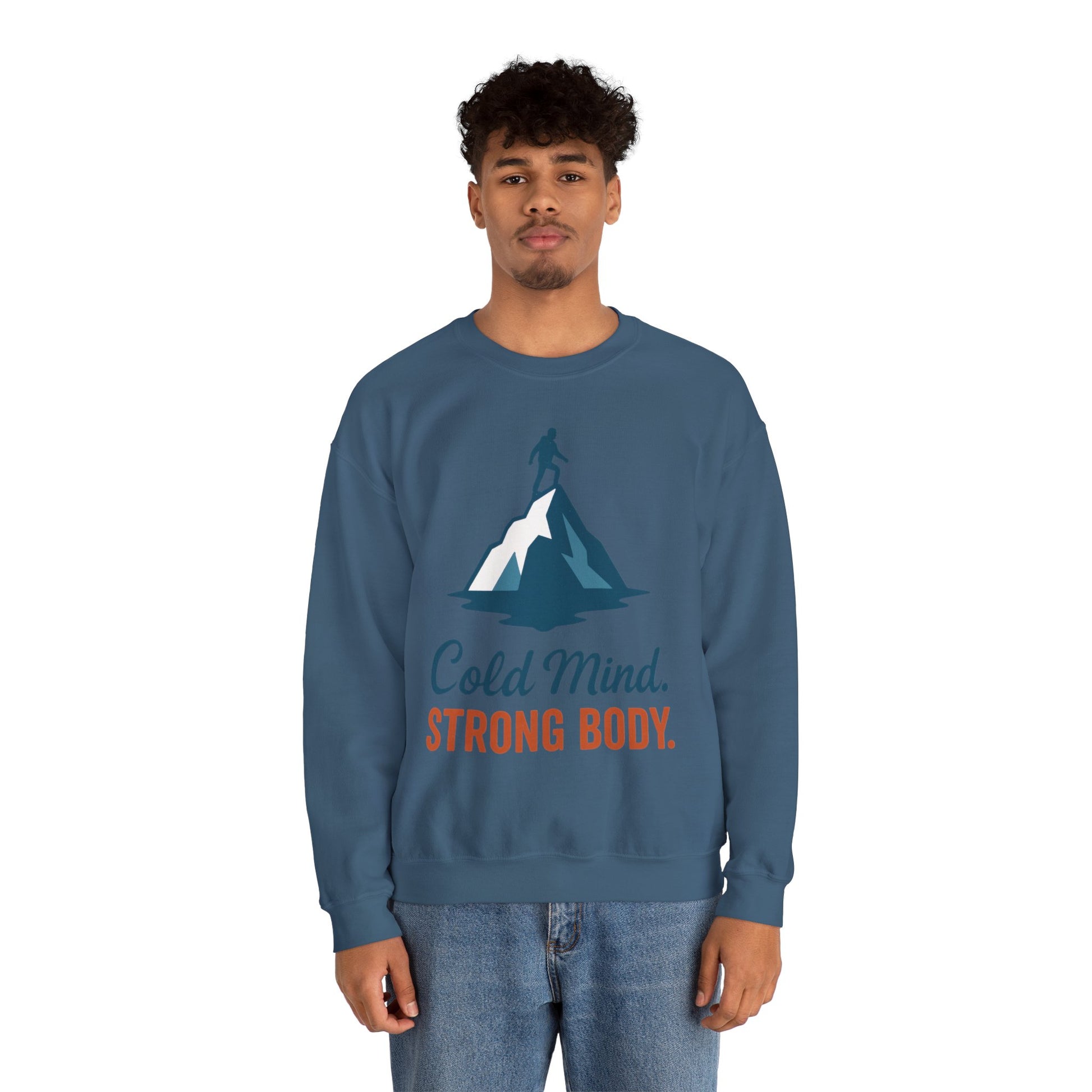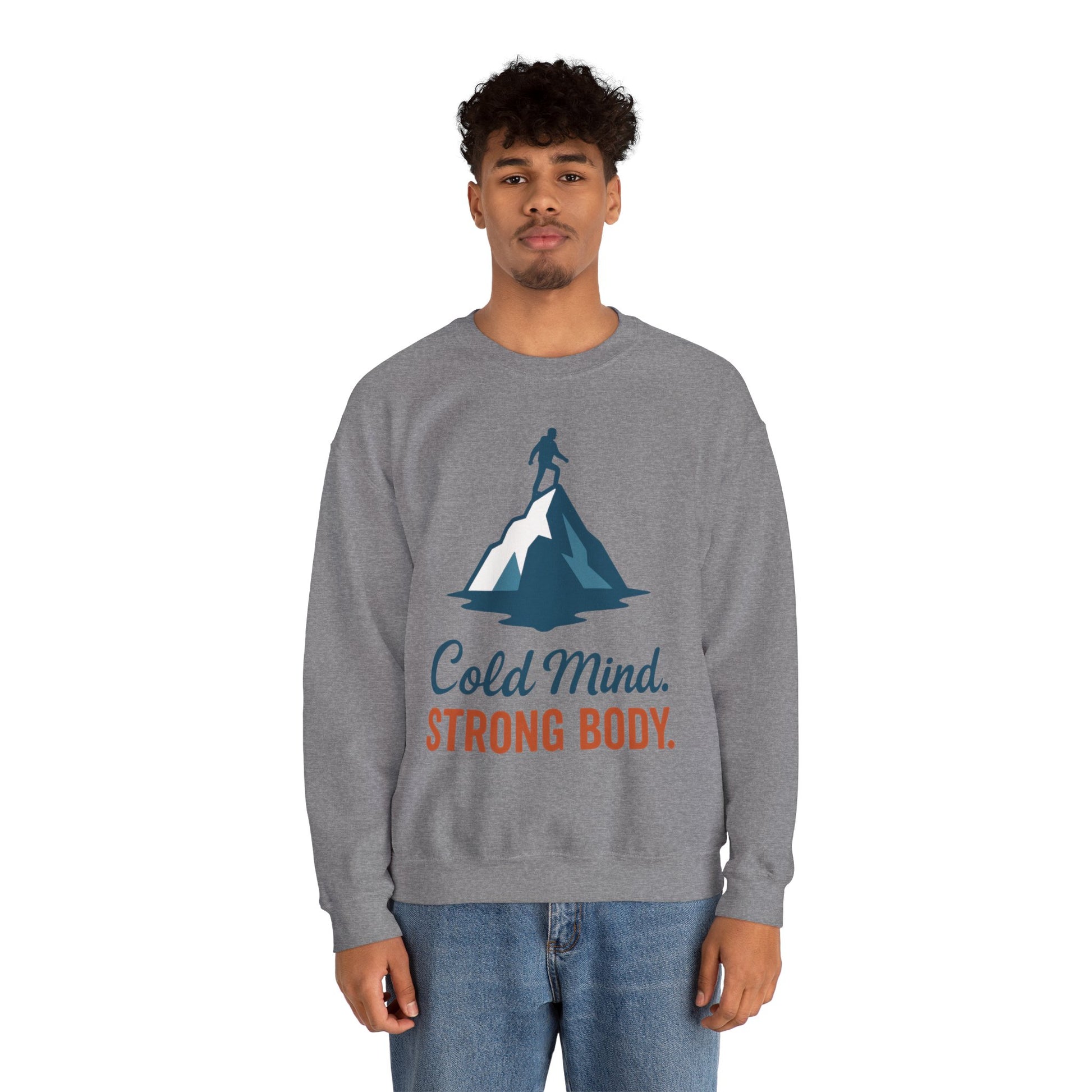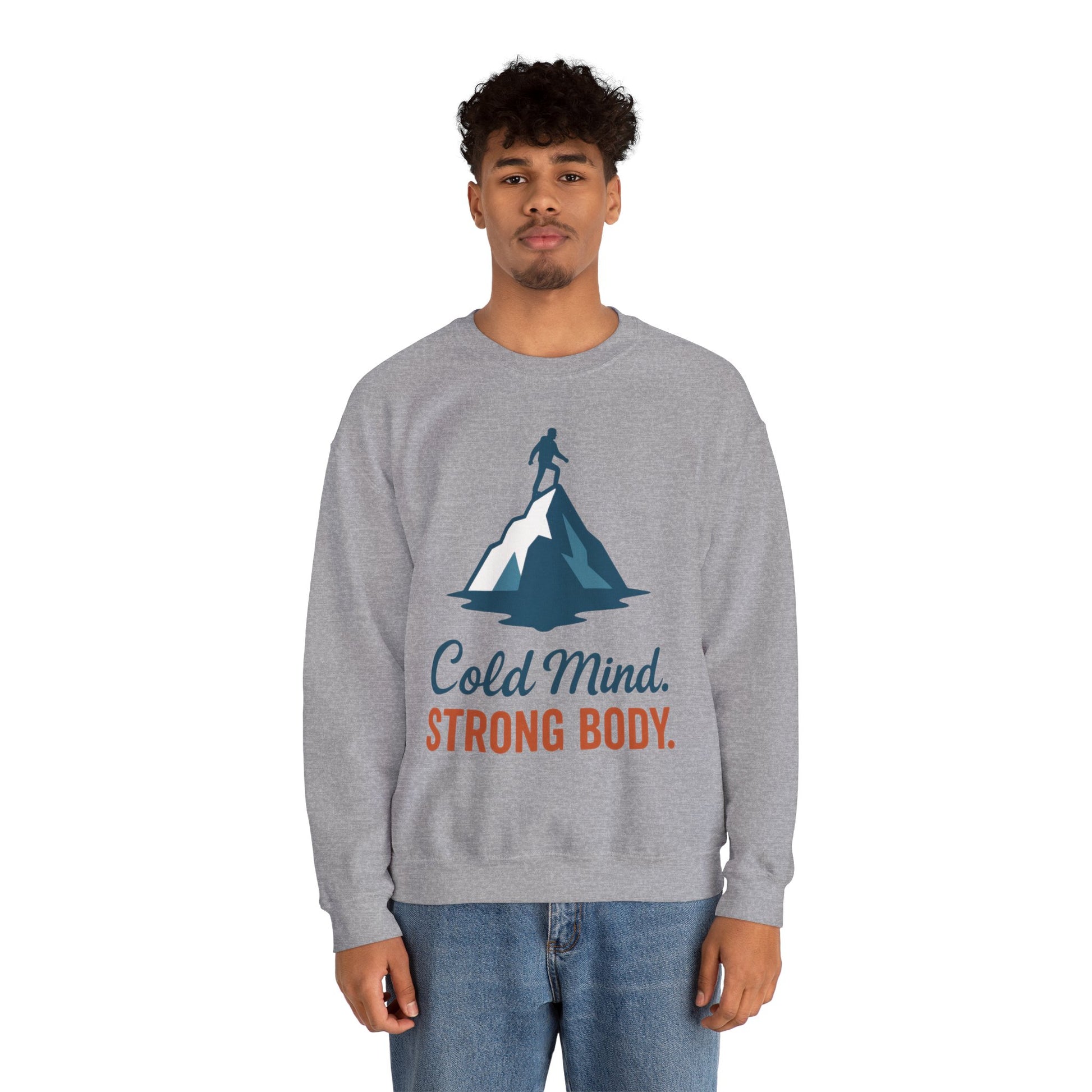 Men's Heavy Blend™ Crewneck Sweatshirt, Cold Mind Strong Body Sweatshirt, Nordic Mountain Minimalist Pullover