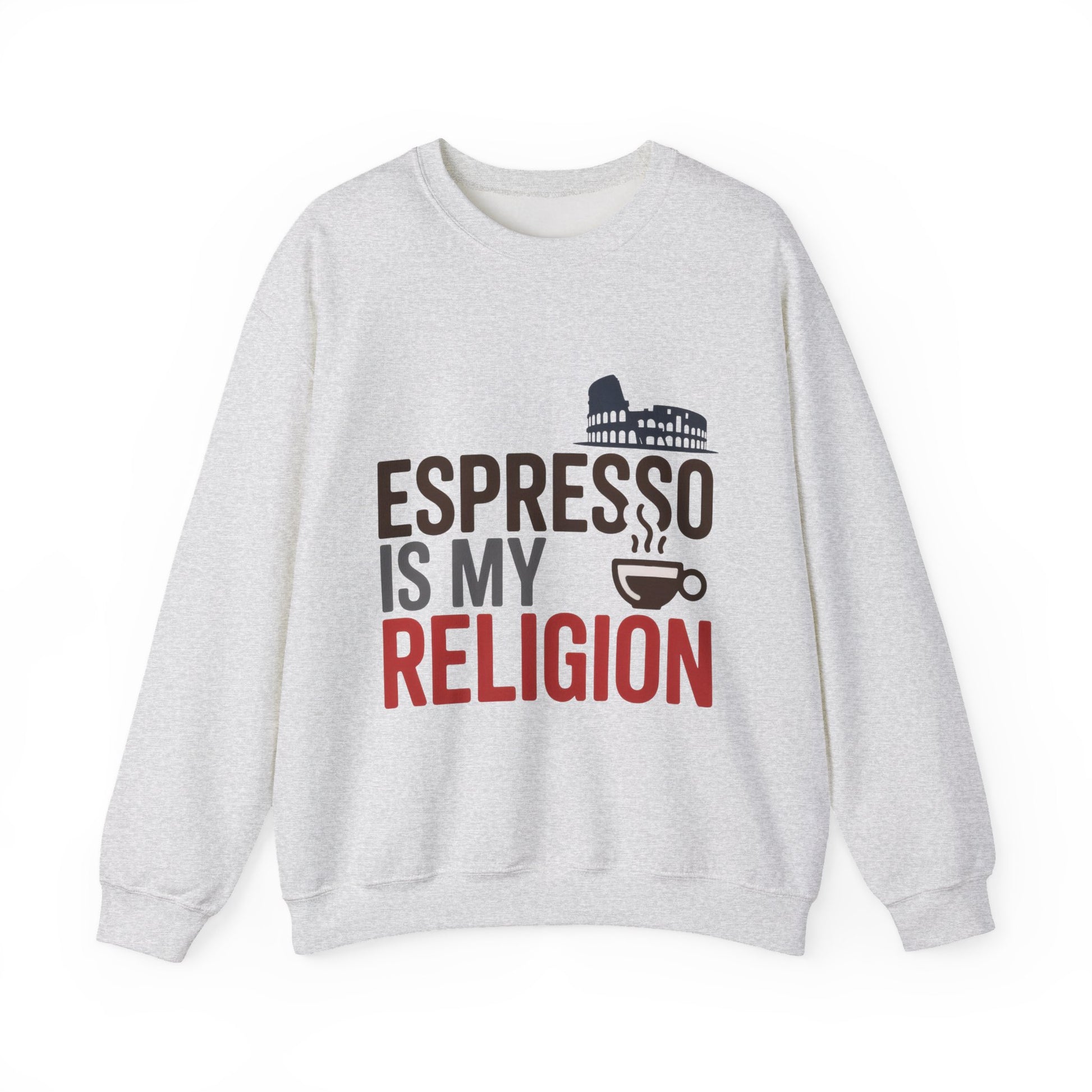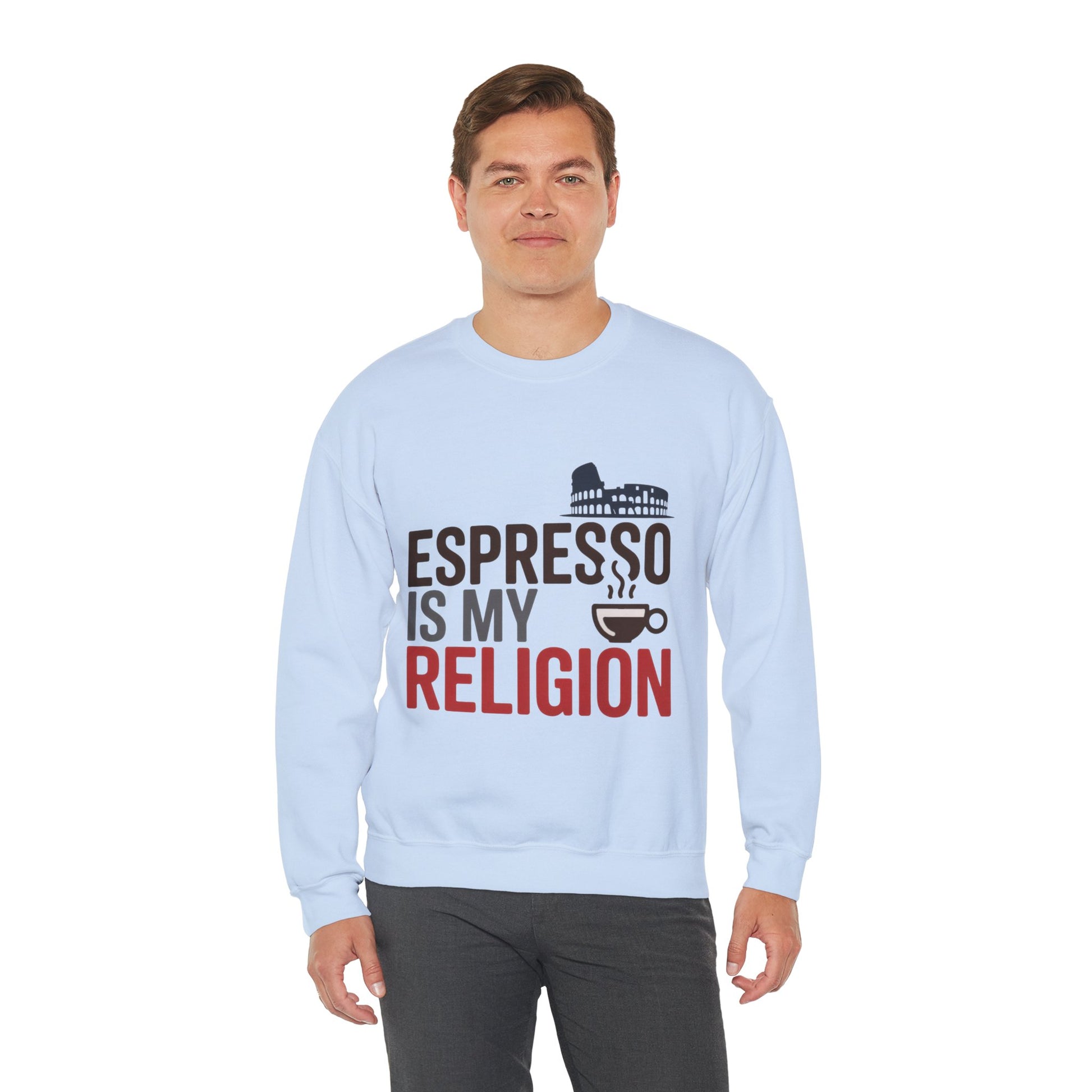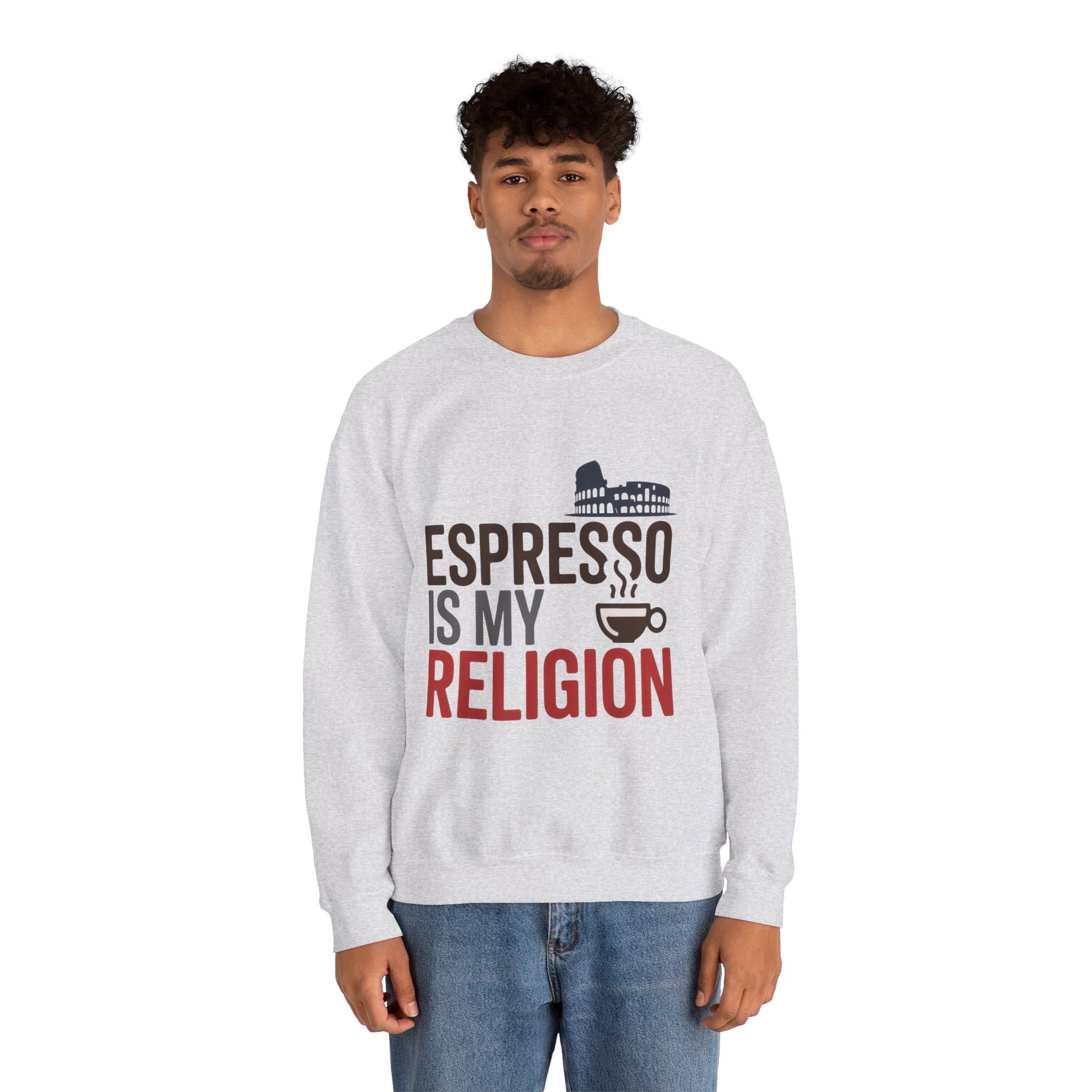 Mens Heavy Blend™ Crewneck Sweatshirt, Espresso Is My Religion Coffee Rome Mens Sweatshirt, Barista Gift, Coffee Lover Gift