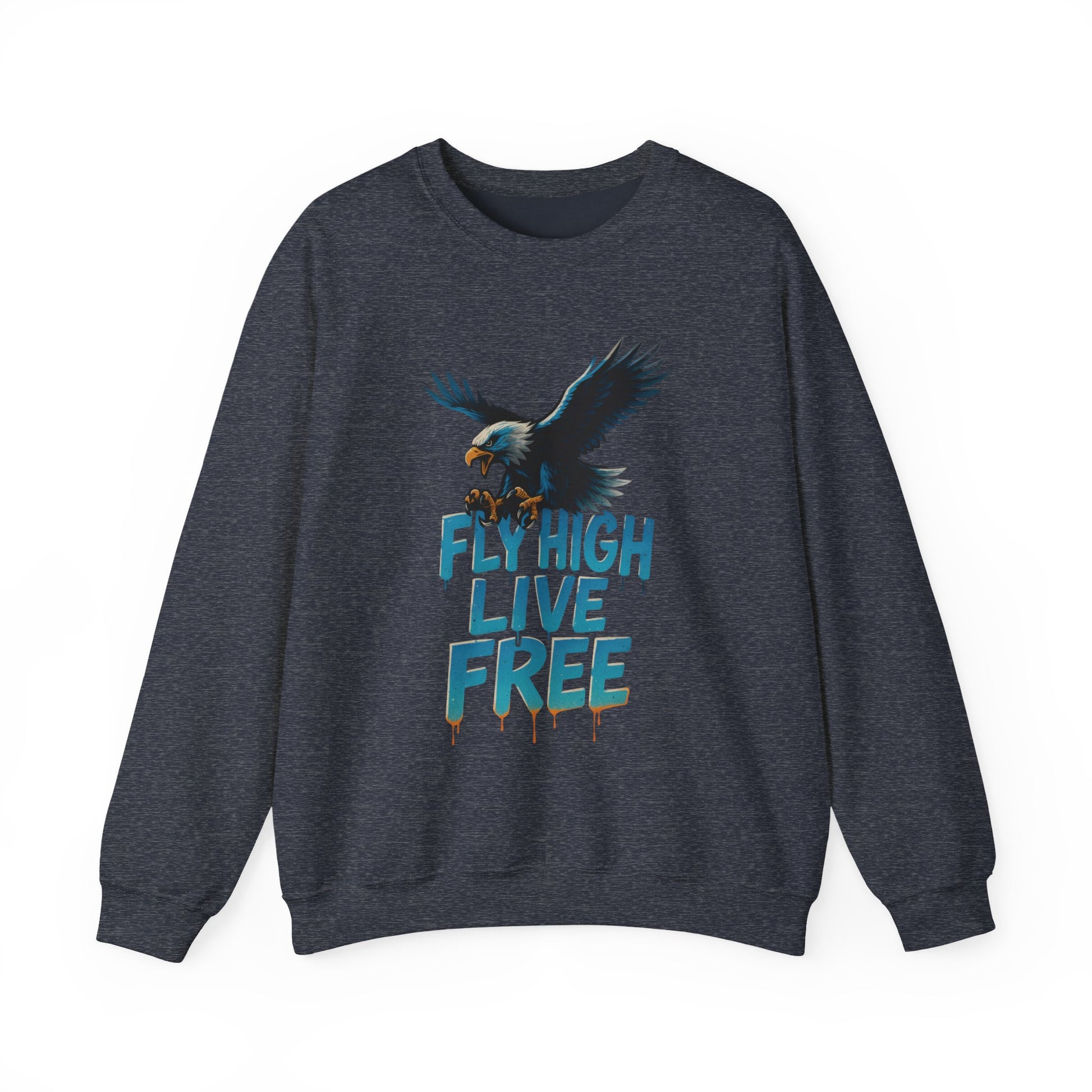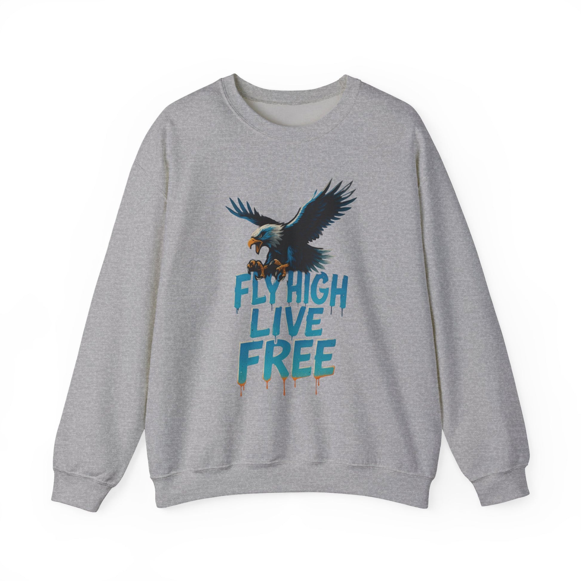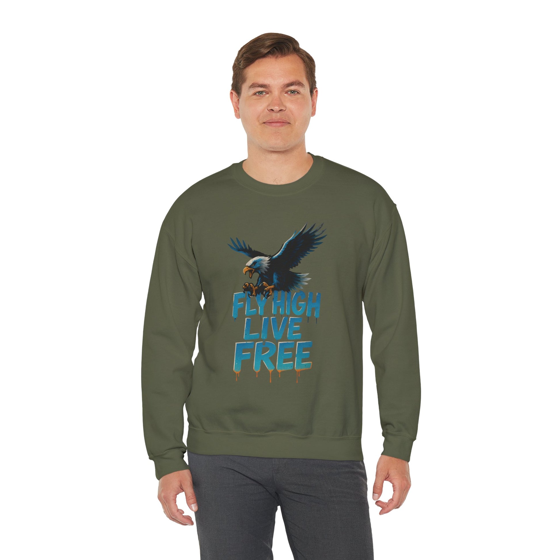 Mens Heavy Blend™ Crewneck Sweatshirt, Fly High Live Free Mens Eagle Graphic Sweatshirt