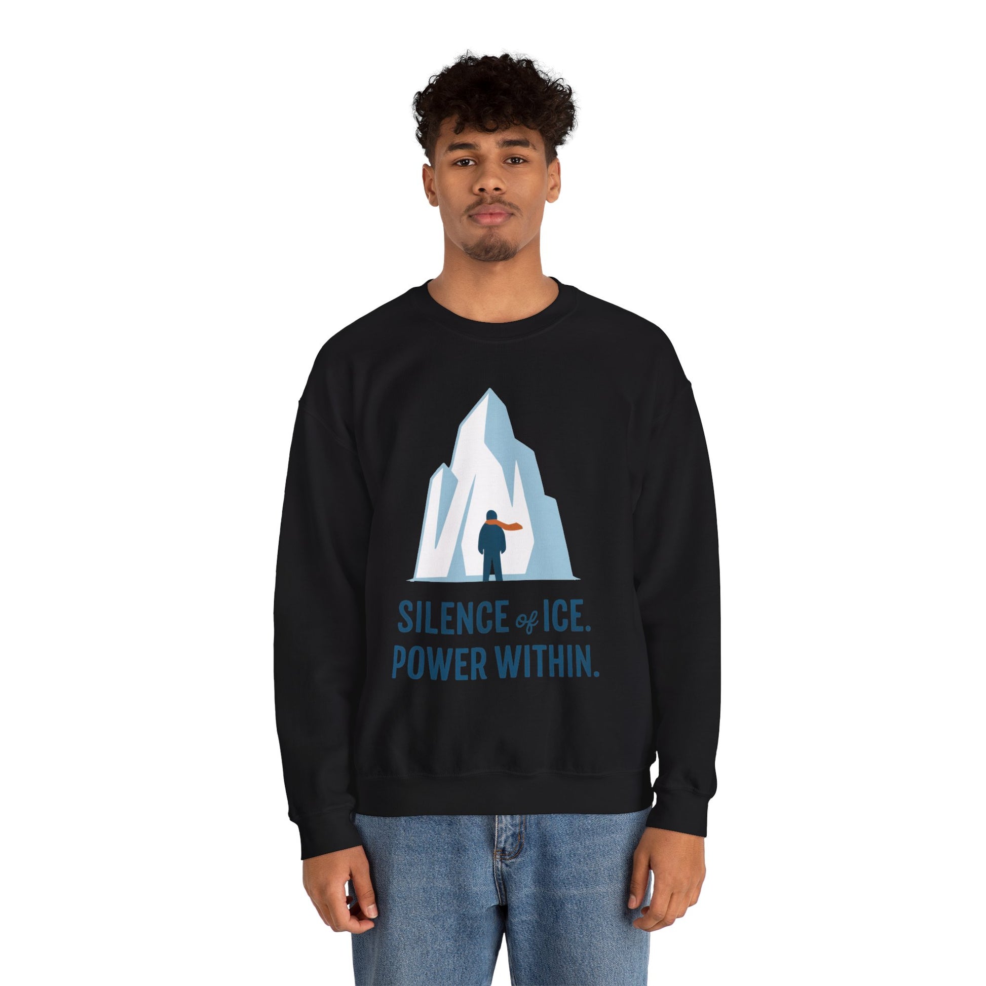 Men's Heavy Blend™ Crewneck Sweatshirt, Silence of Ice Power Within Sweatshirt, Nordic Iceberg Minimalist Pullover