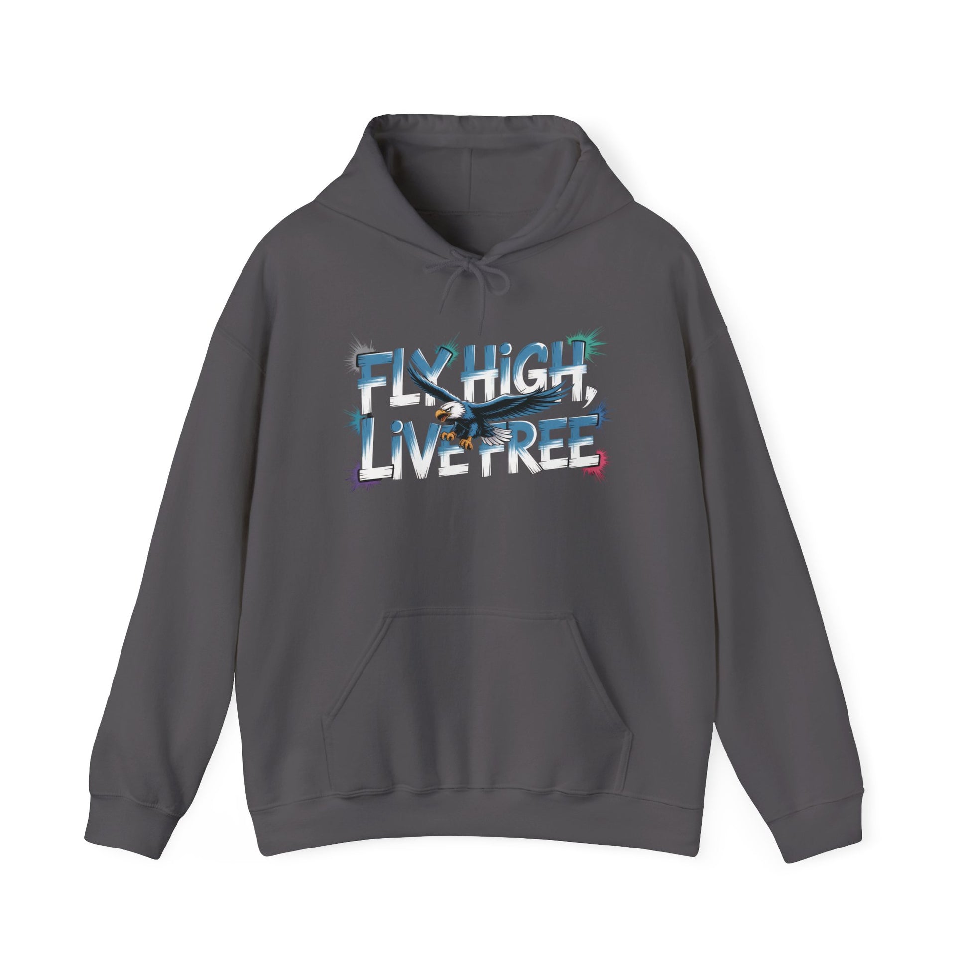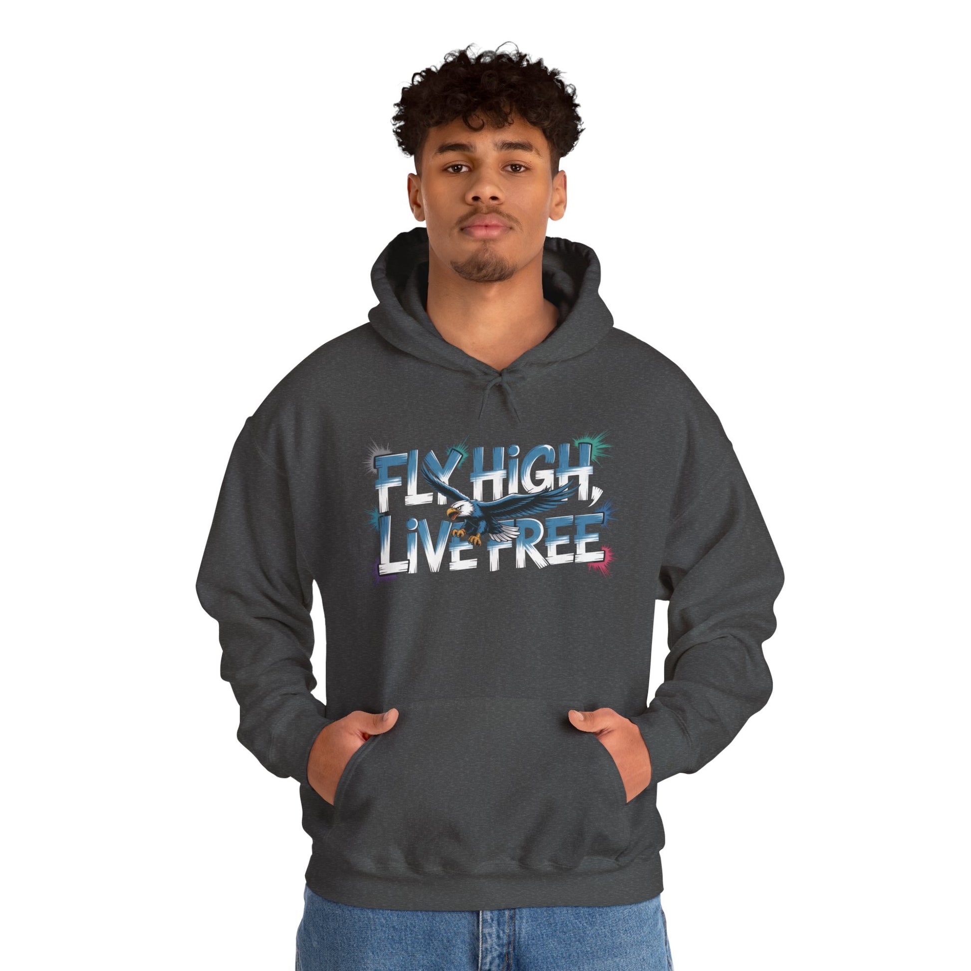 Mens Heavy Blend™ Hooded Sweatshirt, Fly High Live Free Eagle Mens Hoodie Streetwear