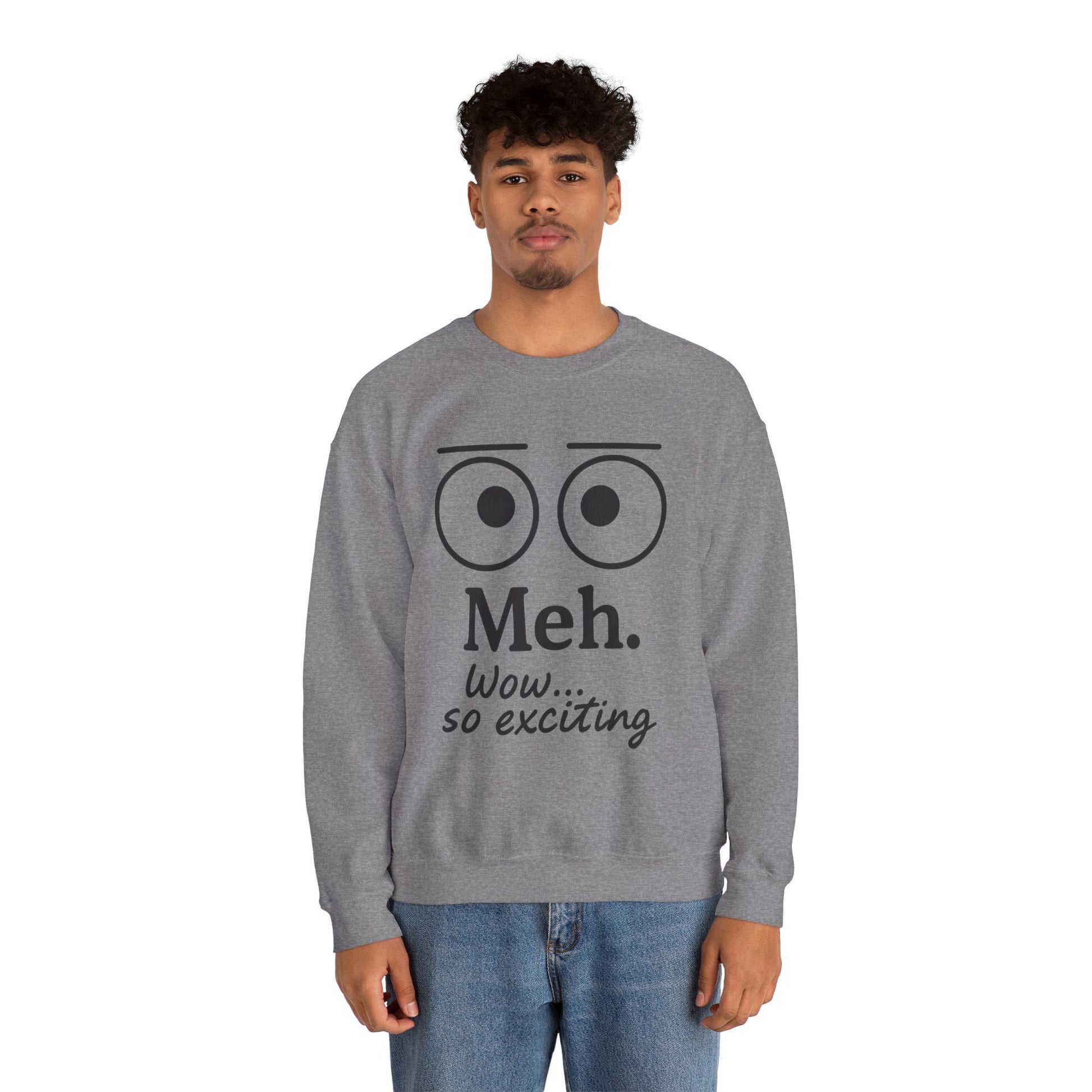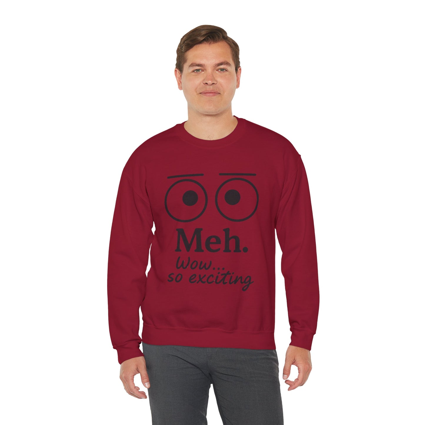 Mens Heavy Blend Crewneck with 'Meh' Design, Comfortable Apparel for Everyday Wear, Perfect for Relaxing
