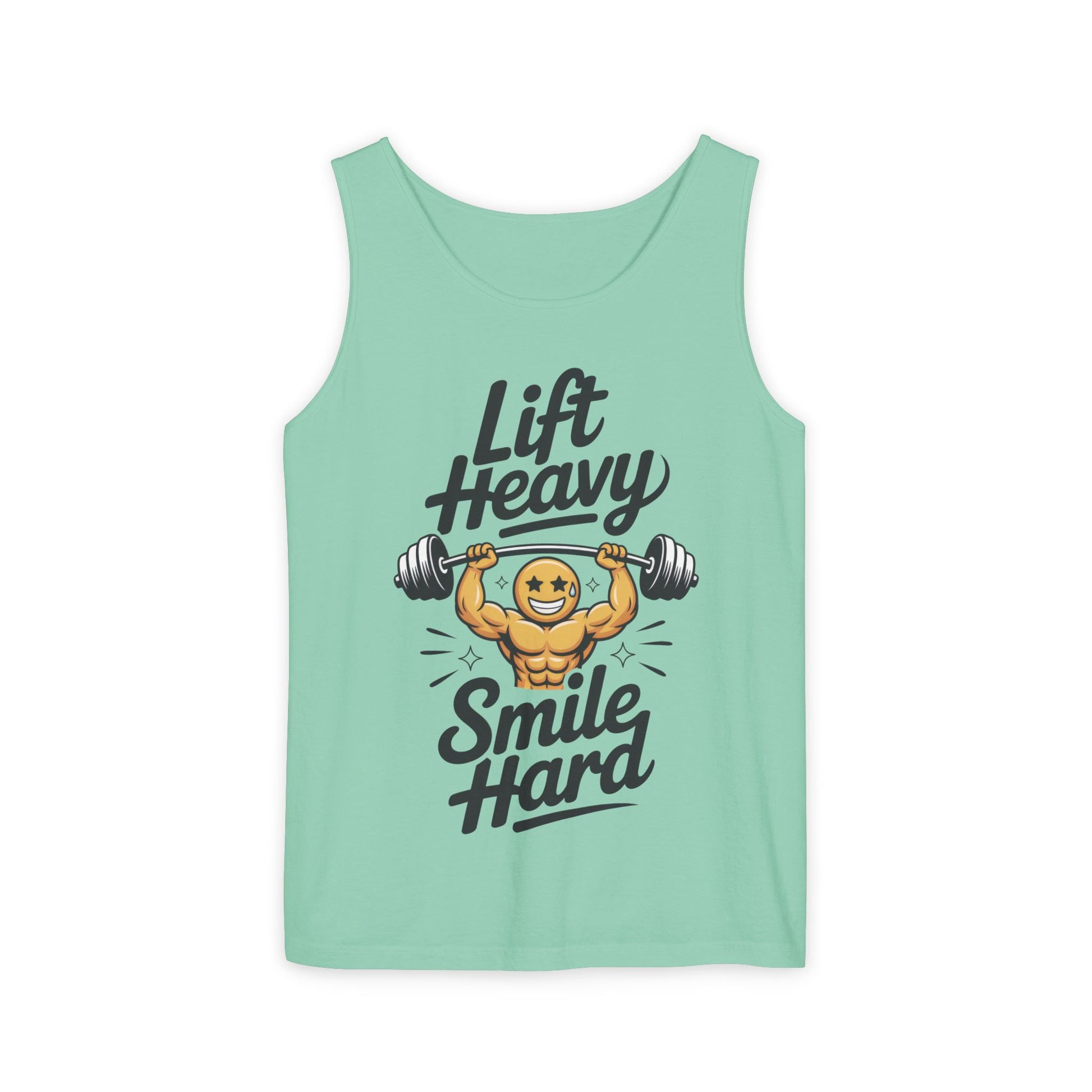 Mens Lift Heavy Smile Hard Tank Top, Funny Gym Workout Fitness Shirt, Mens Funny Gym Tank