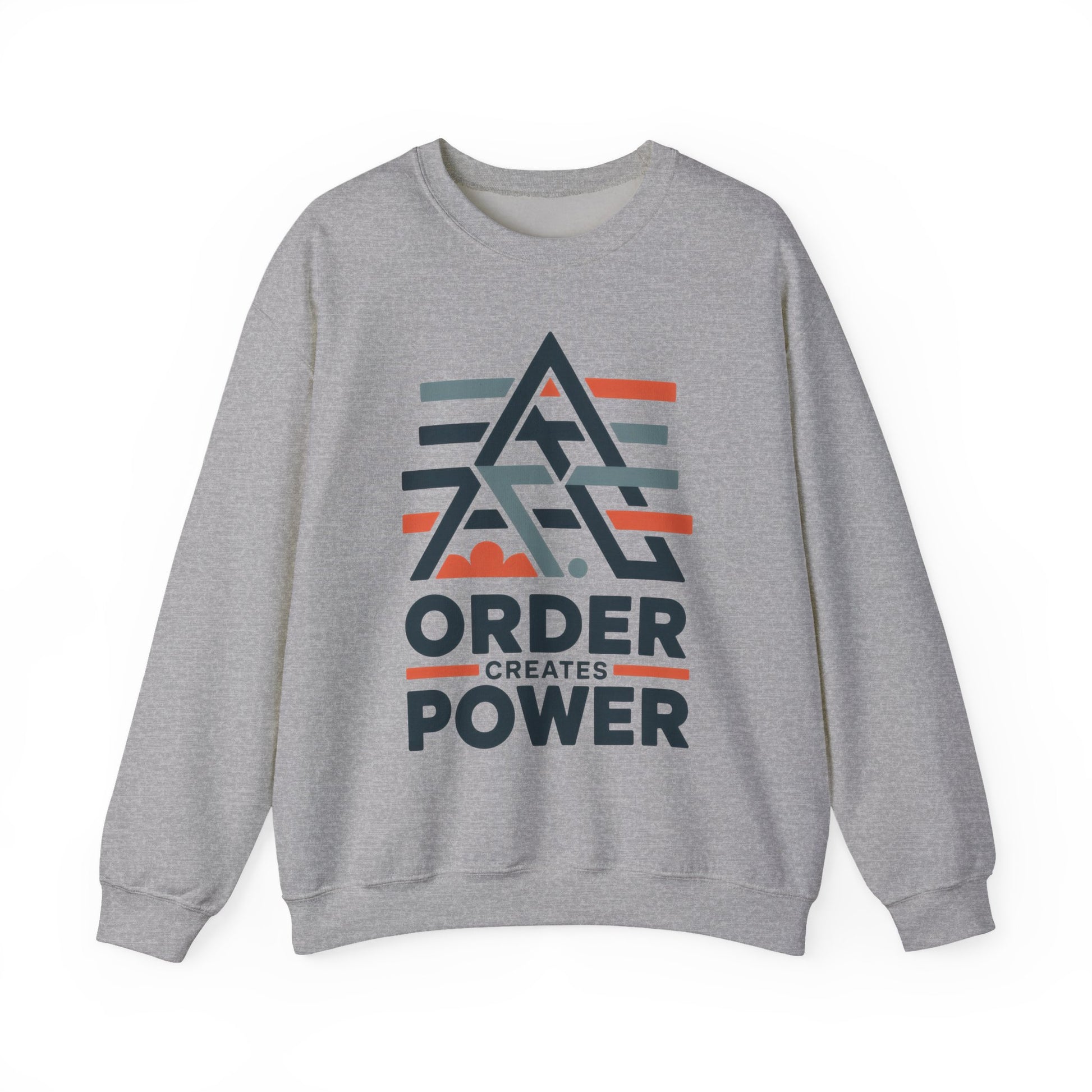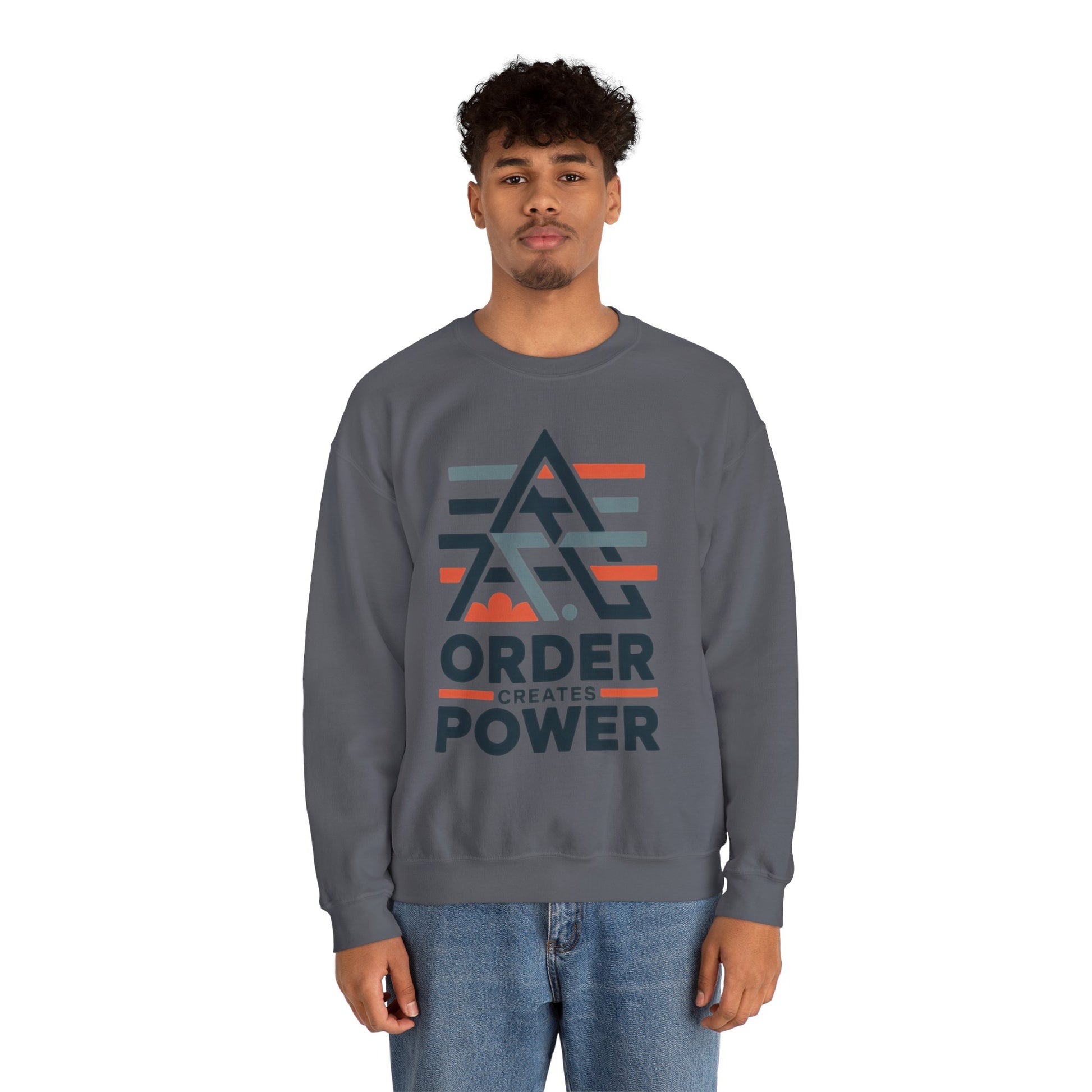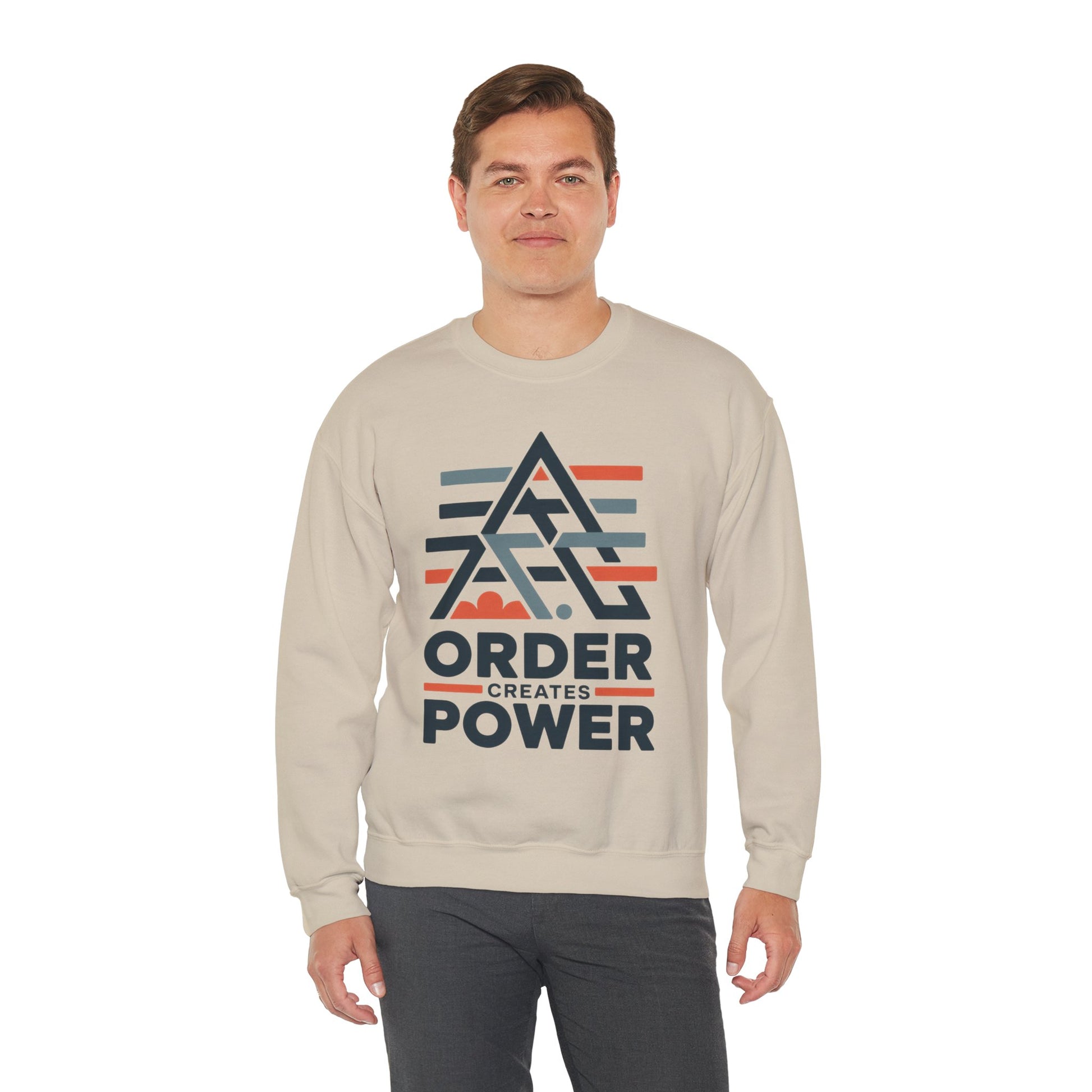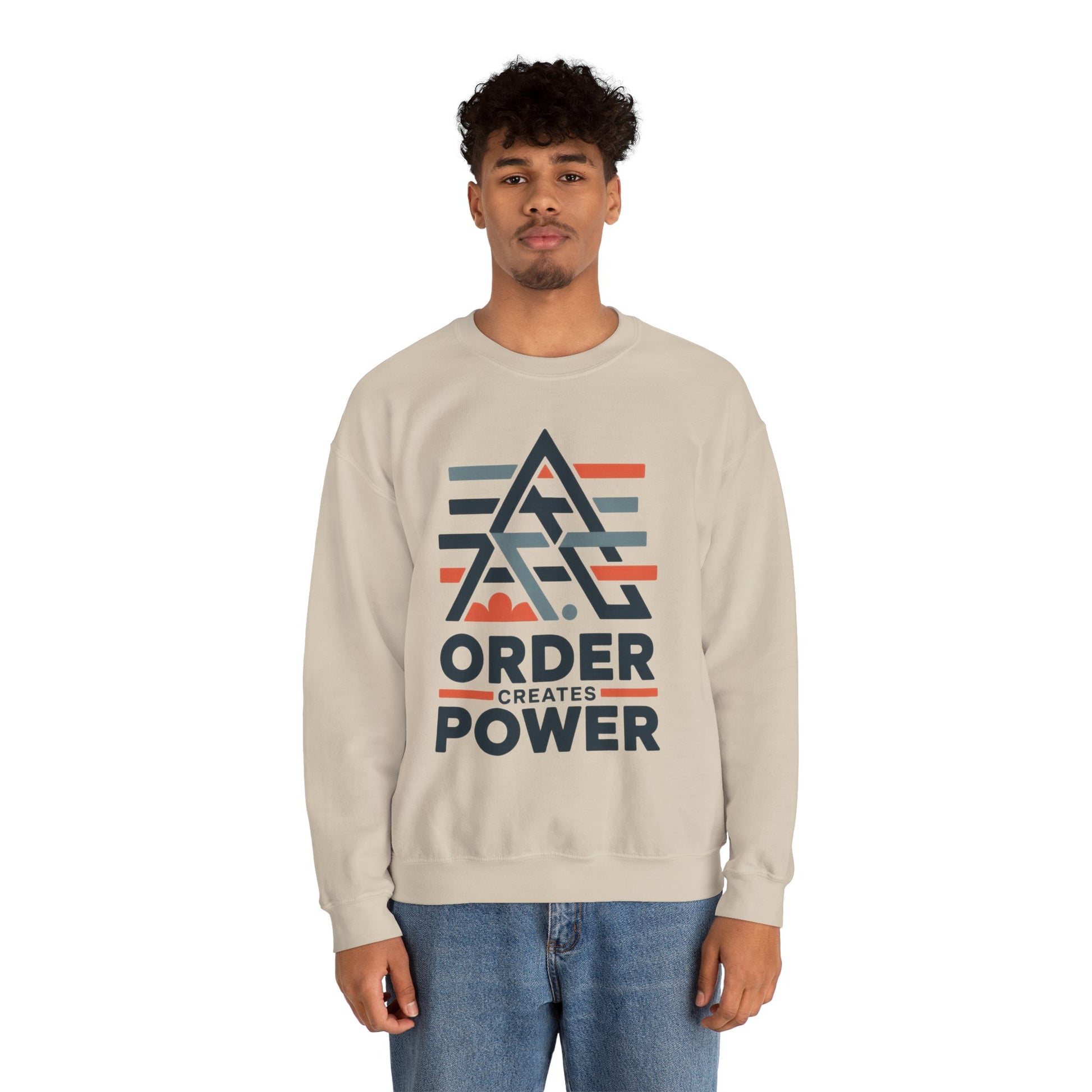 Men's Sweatshirt Order Creates Power, Minimal Geometric Motivational Graphic Pullover, Heavy Blend™ Crewneck Sweatshirt