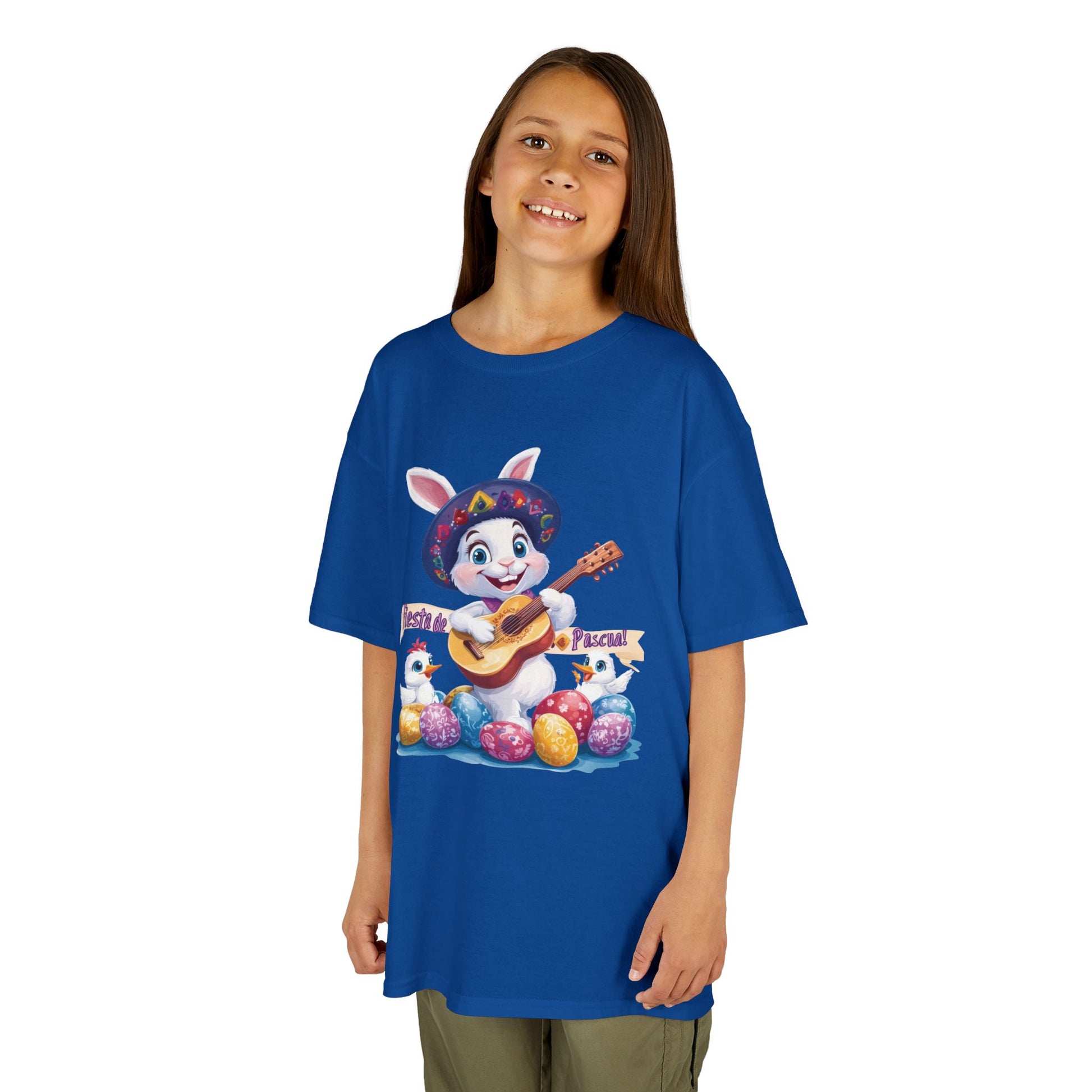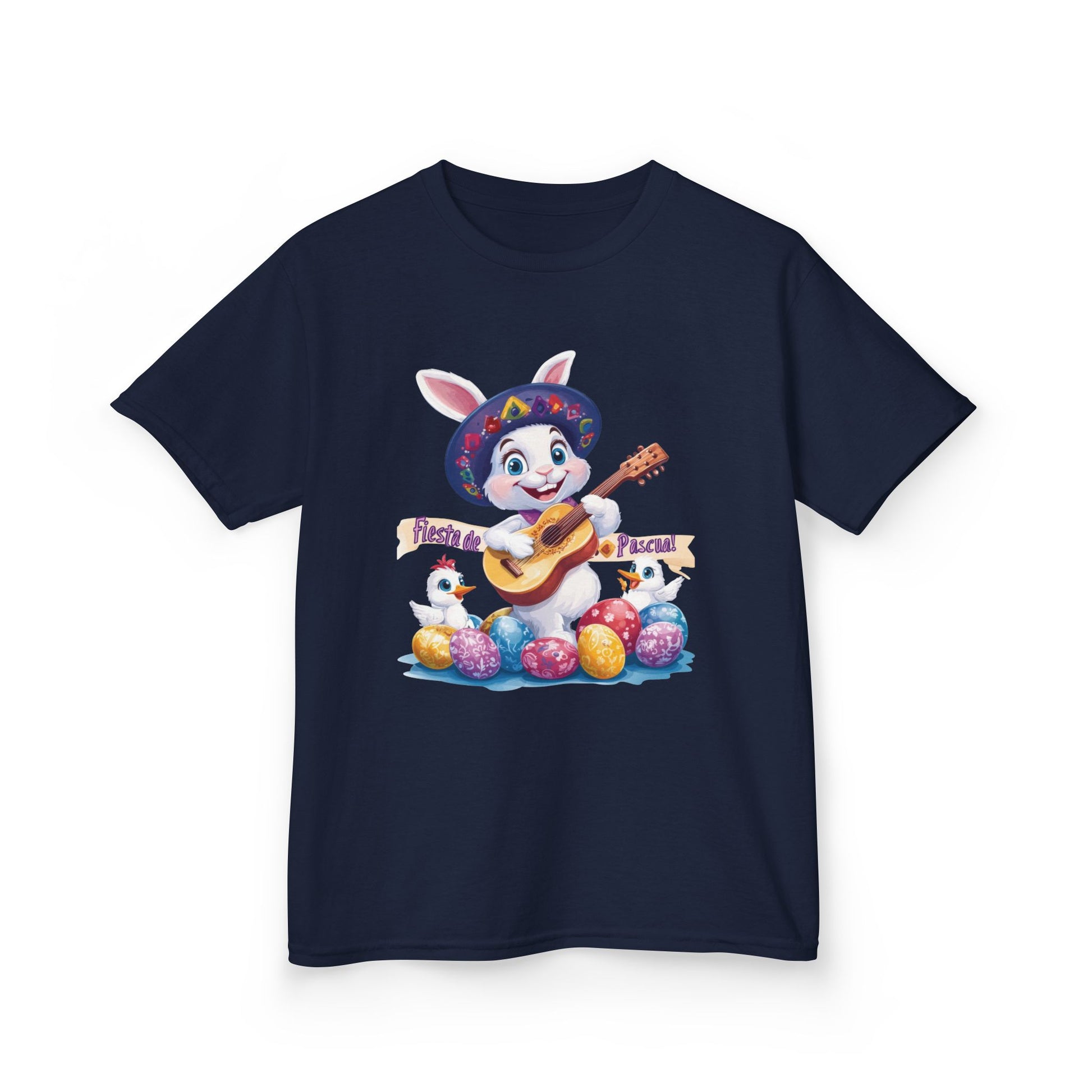 Mexican Easter Bunny Kids T-Shirt - Fiesta de Pascua Shirt with Guitar, Fun Spring Festival Tee, Colorful Holiday Gift for Children