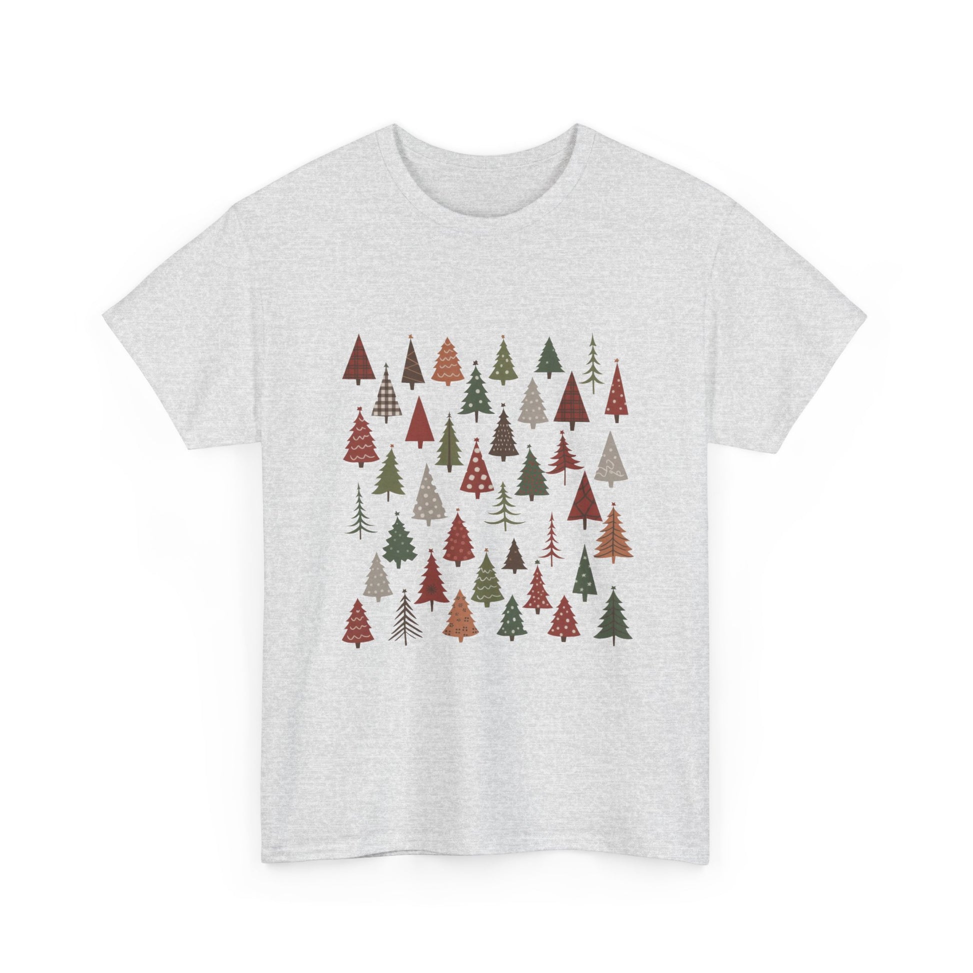 A chic minimalist Christmas T-shirt with rustic tree patterns — perfect for women who love simple holiday style. Soft, breathable, and festive for the season. The Gildan 5000 heavy cotton tee is a dependable classic made for everyday wear and custom printing. Its 100% cotton fabric is tightly knit to give designs sharper detail and long-lasting color. The seamless body eliminates side seams for a smoother fit, while reinforced shoulders keep the shirt in shape through repeated washes. Durable, comfortable, and print-friendly, the Gildan 5000 is a trusted staple for personalized apparel. Disclaimer: - Due to the fabric properties, the White color variant may appear off-white rather than bright white. .: The Gildan 5000 is made with medium fabric (5.3 oz/yd² / 180 g/m²) consisting of 100% cotton, offering year-round comfort with lasting durability. .: The classic fit of this shirt ensures a comfy, relaxed wear while the crew neckline adds that neat, timeless look that can blend into any occasion, casual or semi-formal. .: The tear-away label means a scratch-free experience with no irritation or discomfort whatsoever. .: Made using 100% US cotton that is ethically grown and harvested. Gildan is also a proud member of the US Cotton Trust Protocol ensuring ethical and sustainable means of production. This blank tee is certified by Oeko-Tex for safety and quality assurance.