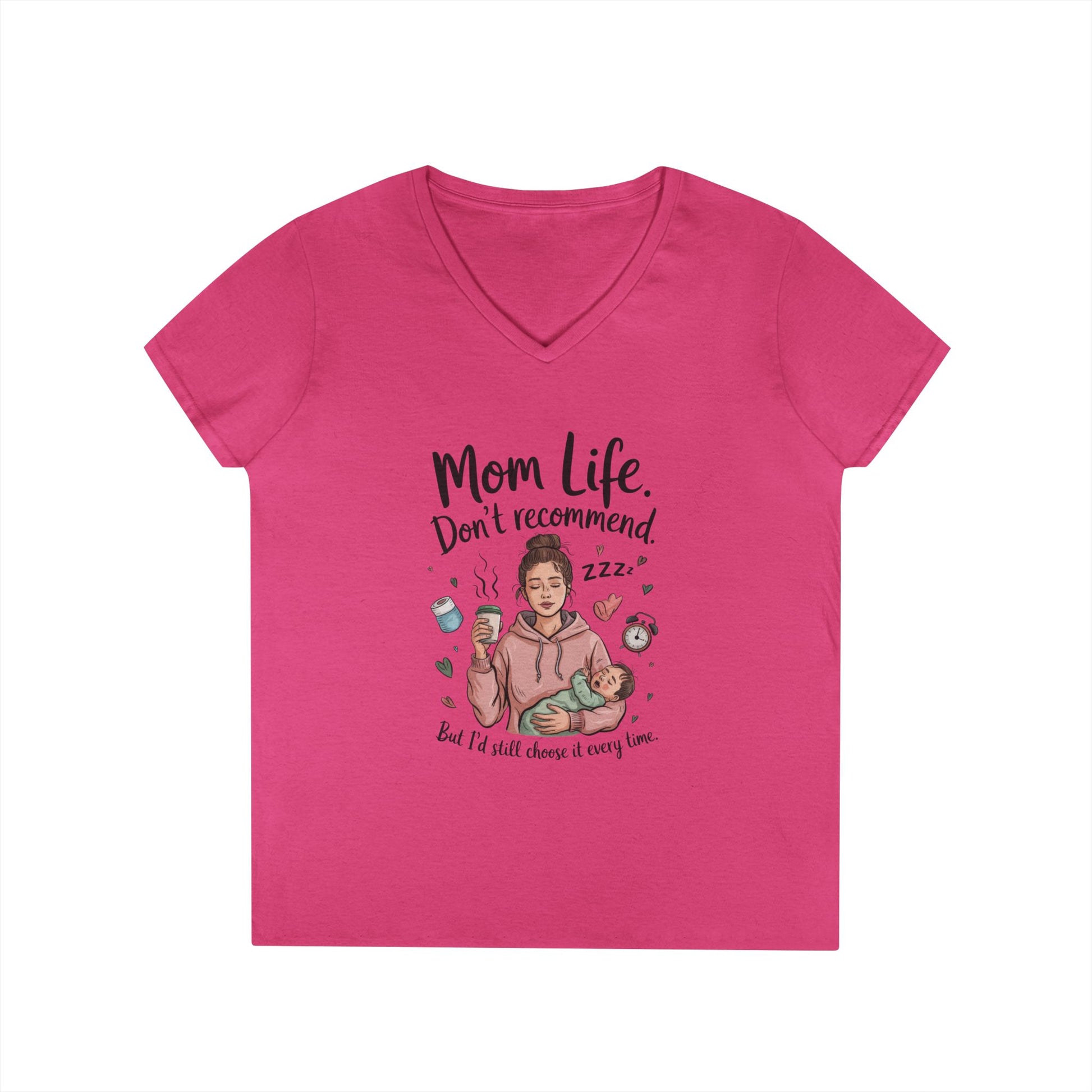 Mom Life V-Neck T-Shirt, Don't Recommend But I'd Choose It Every Time, New Mom Gift, Tired Mama Humor Tee, Baby Shower Gift, Funny Mom Shirt