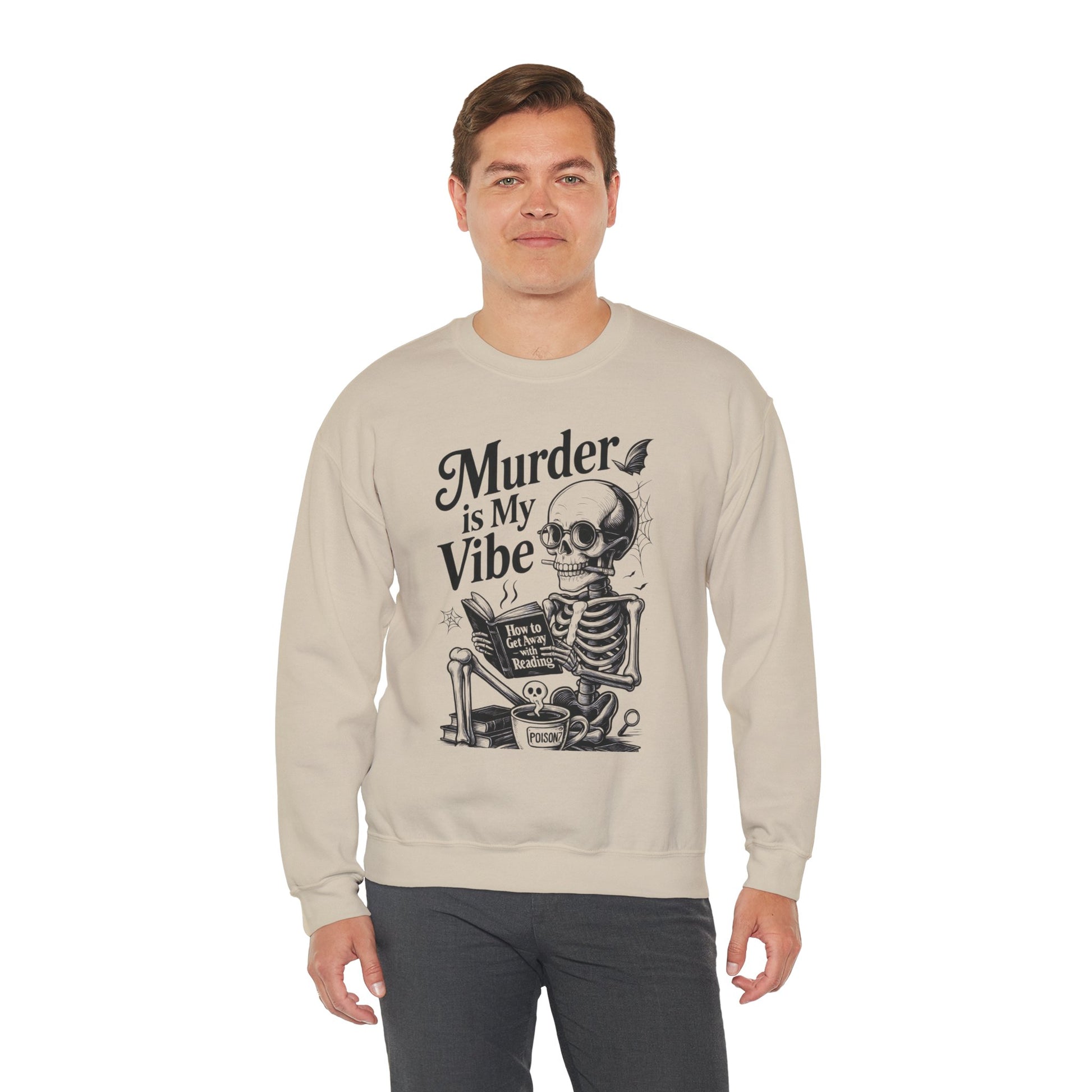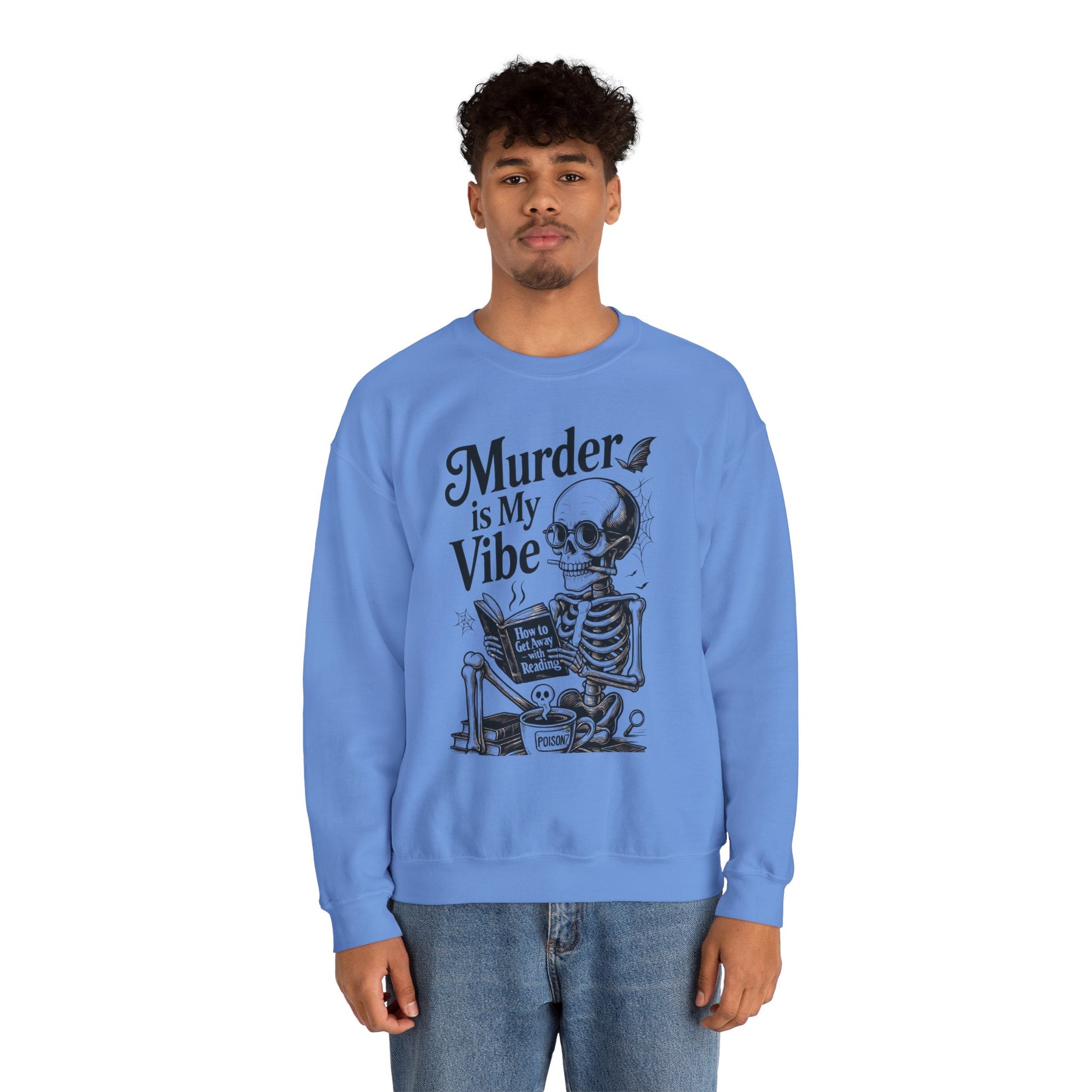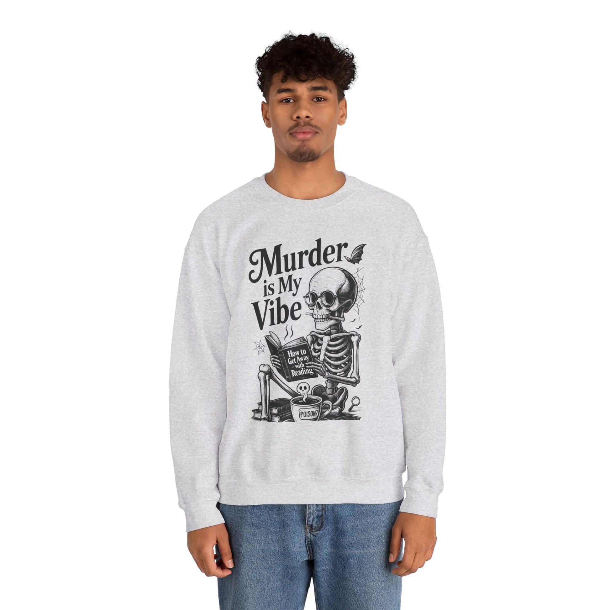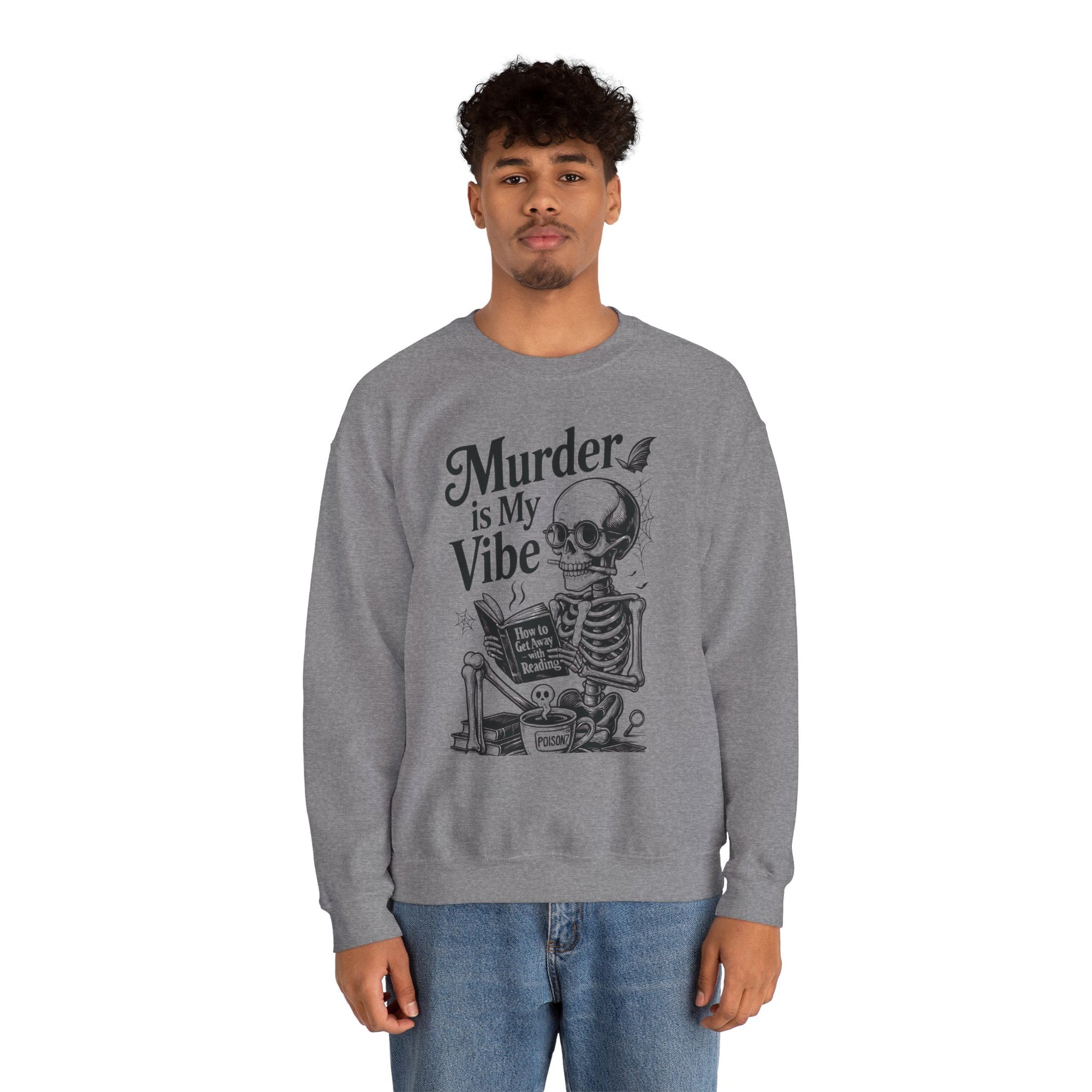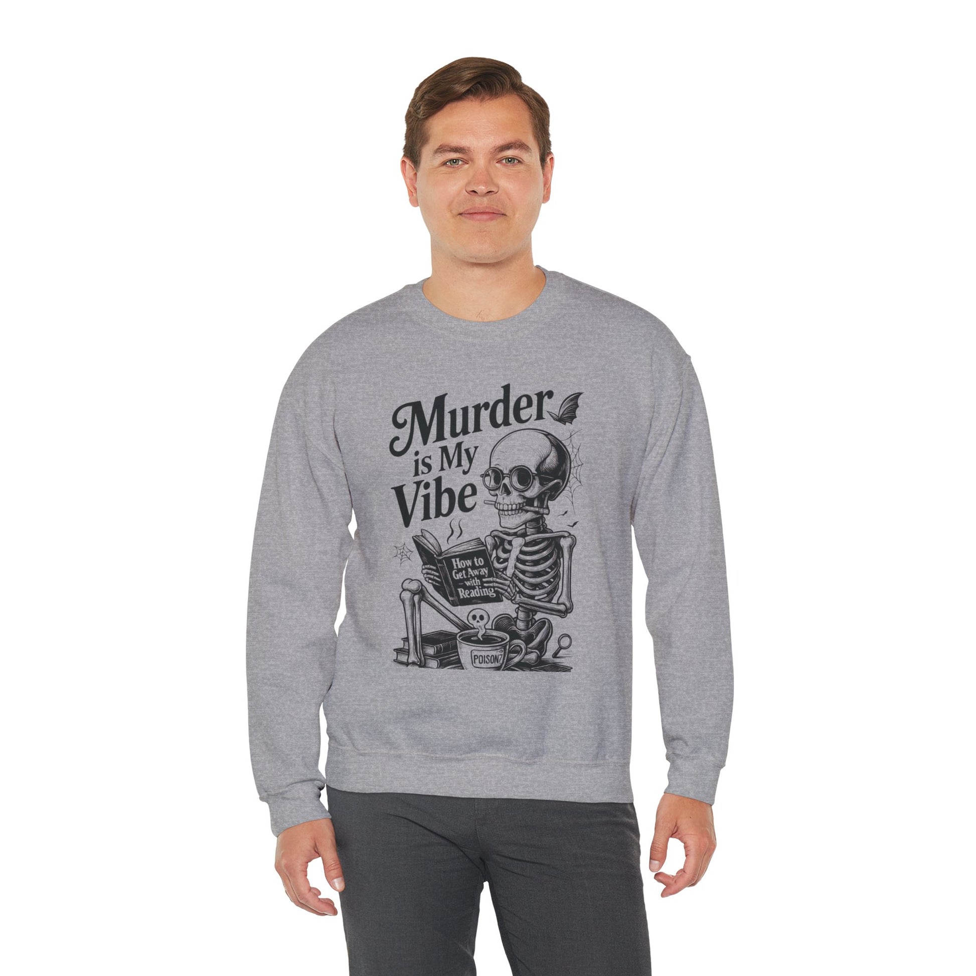Murder is My Vibe Crewneck Sweatshirt, Cozy Gift for Halloween, Unique Sweatshirt, Skull Graphic, Fall Fashion, Unisex Pullover