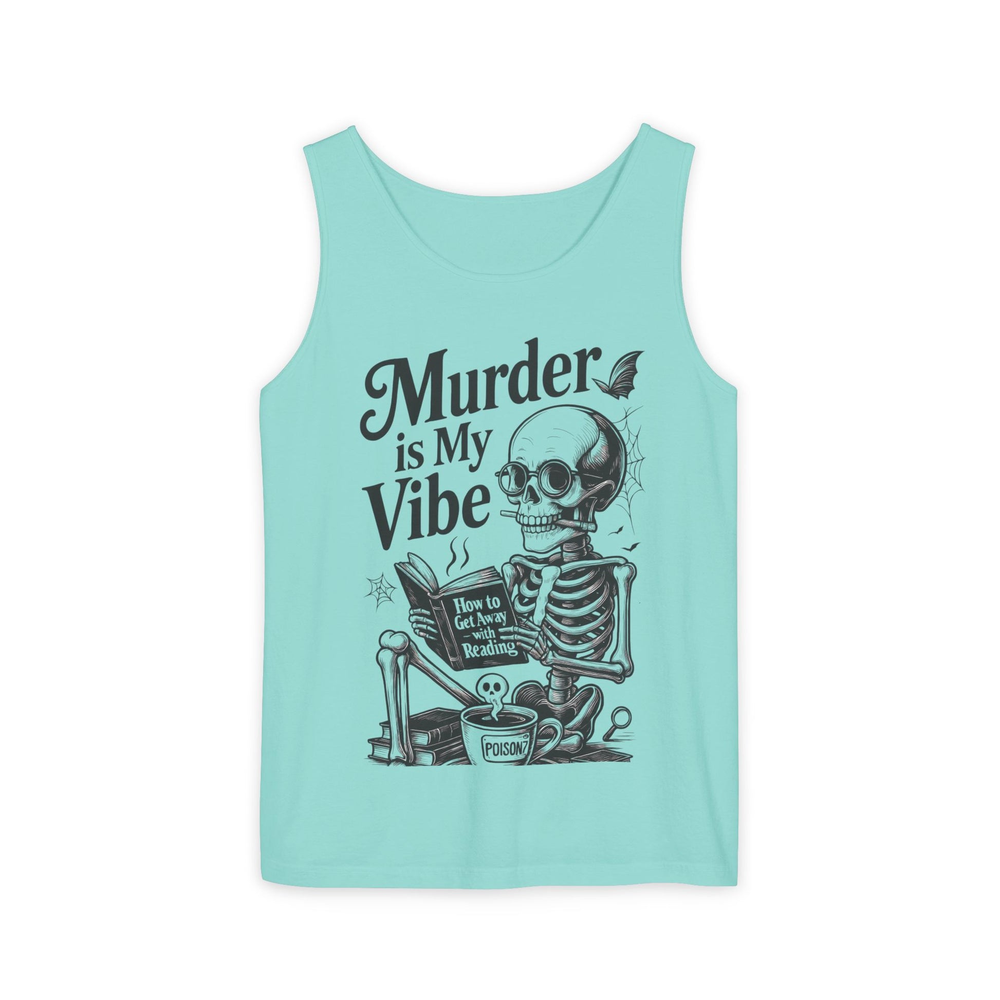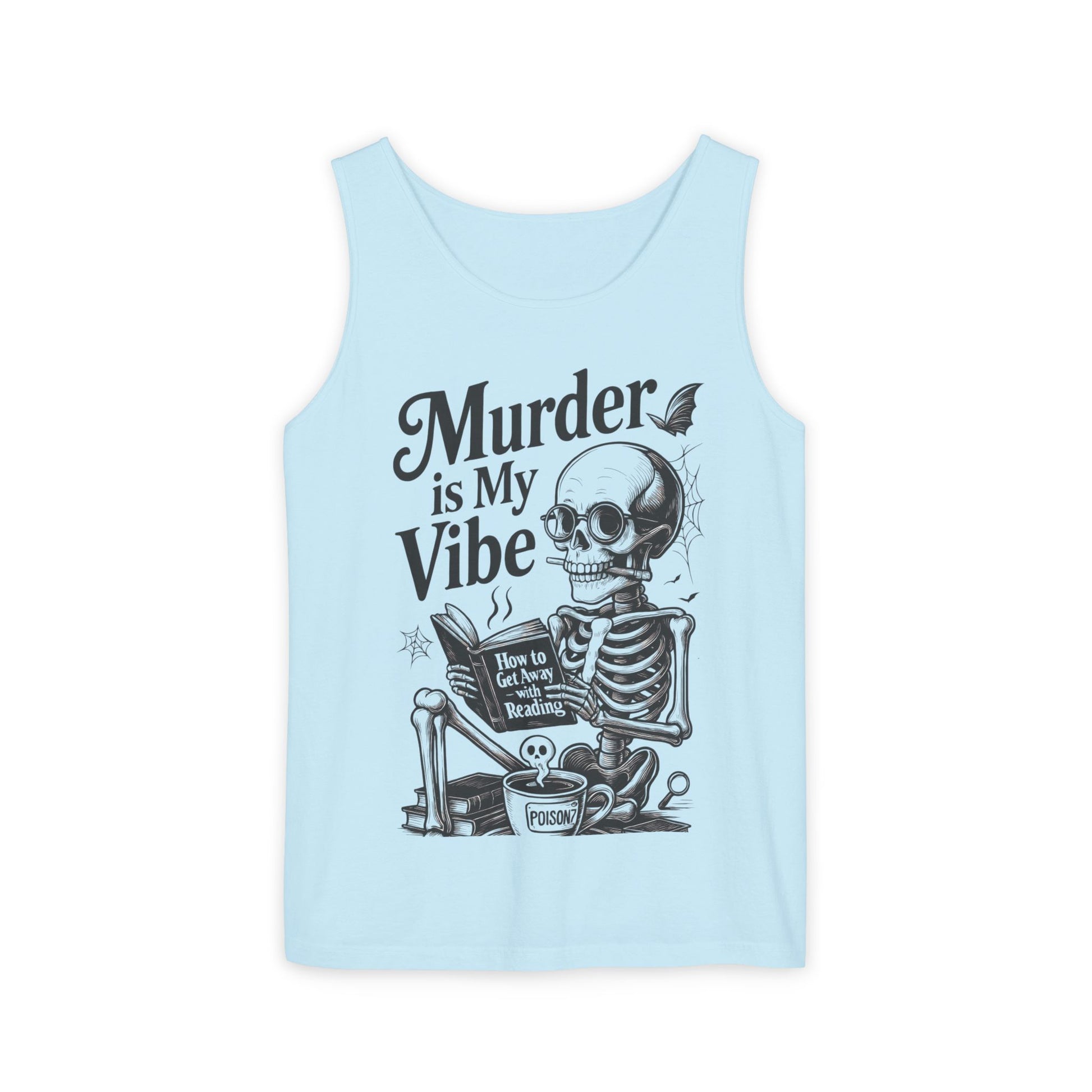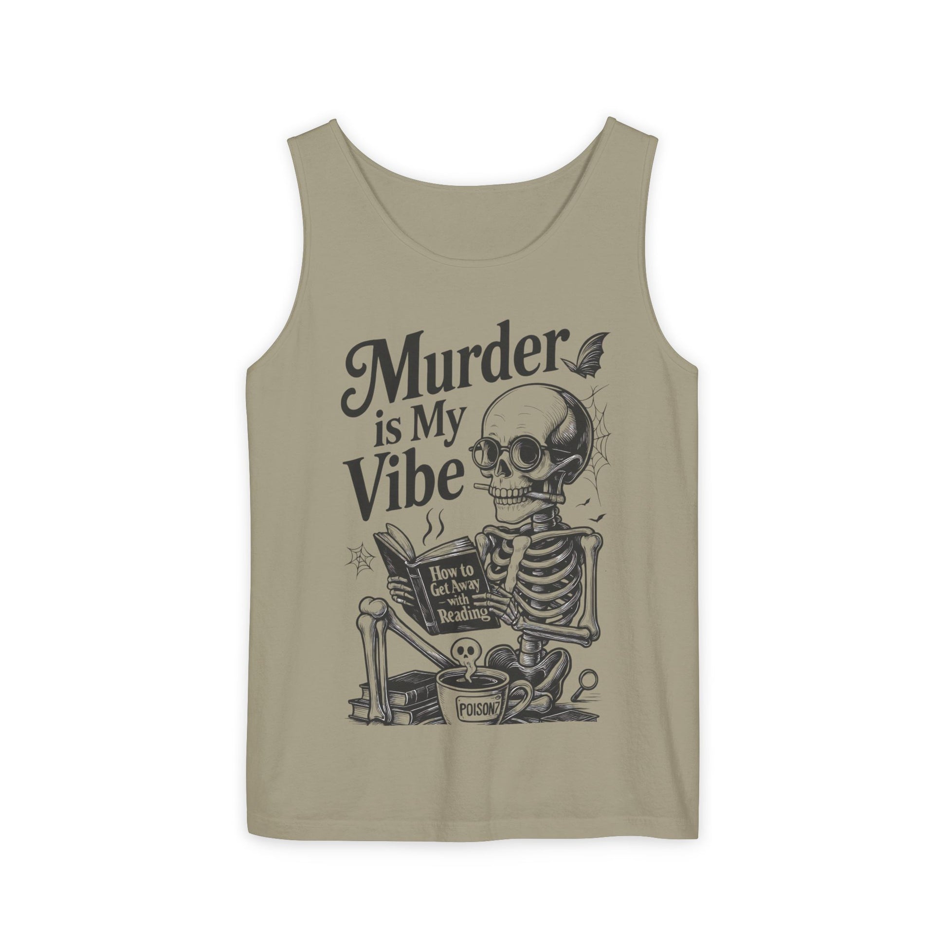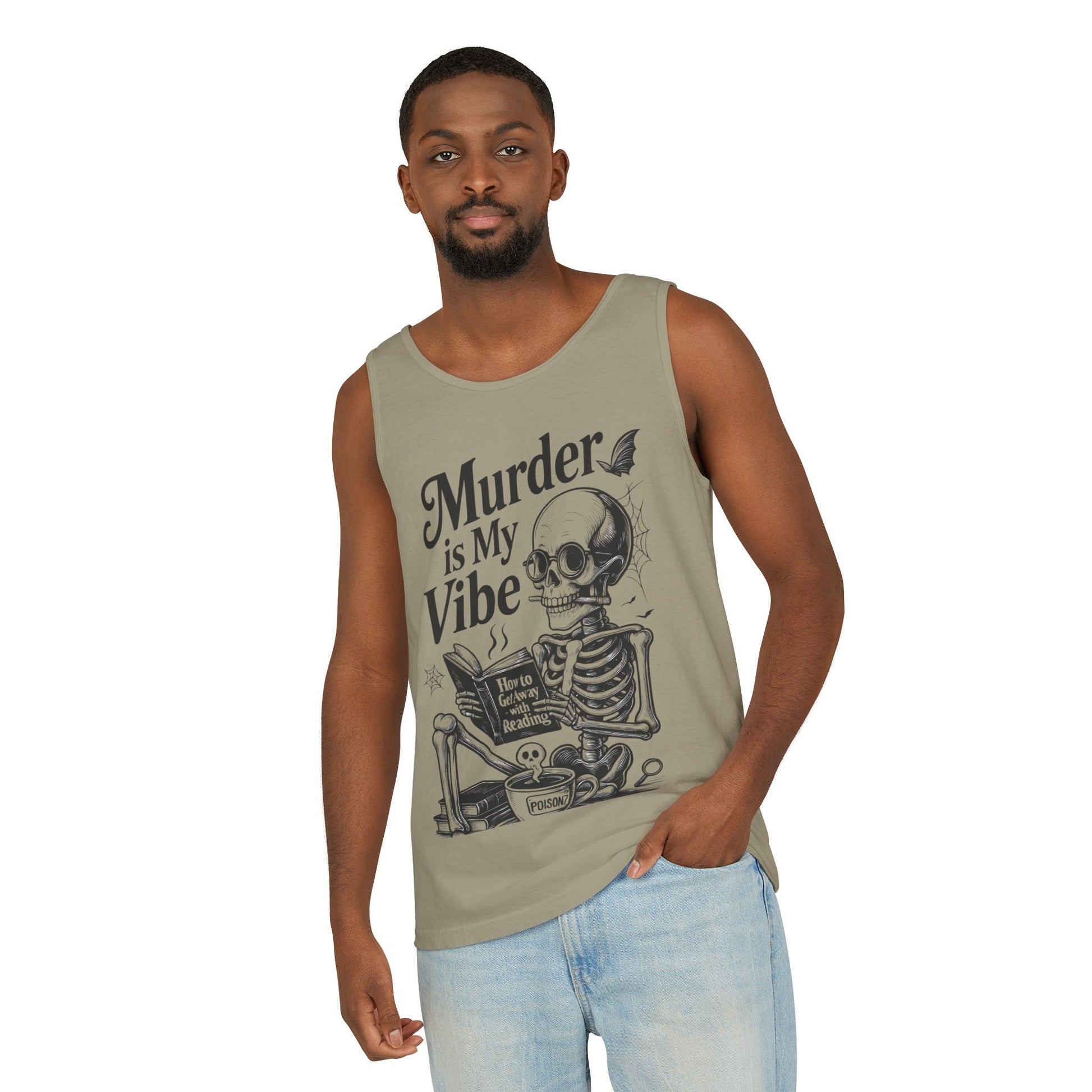 Murder Is My Vibe Tank Top, Mens Goth Tank, Halloween Clothing, Skeleton Graphic Tee, Cozy Casual Wear, Quirky Gift Idea