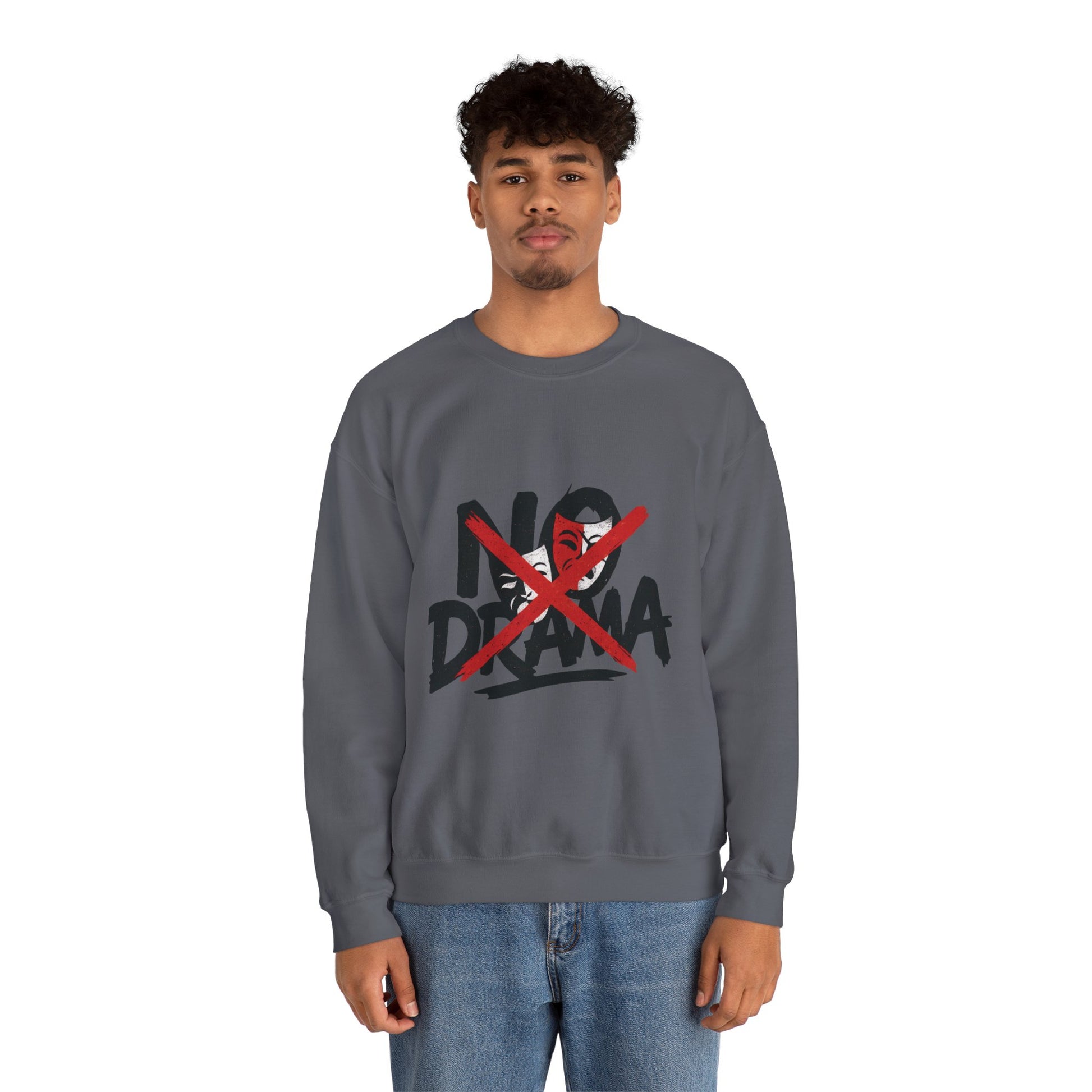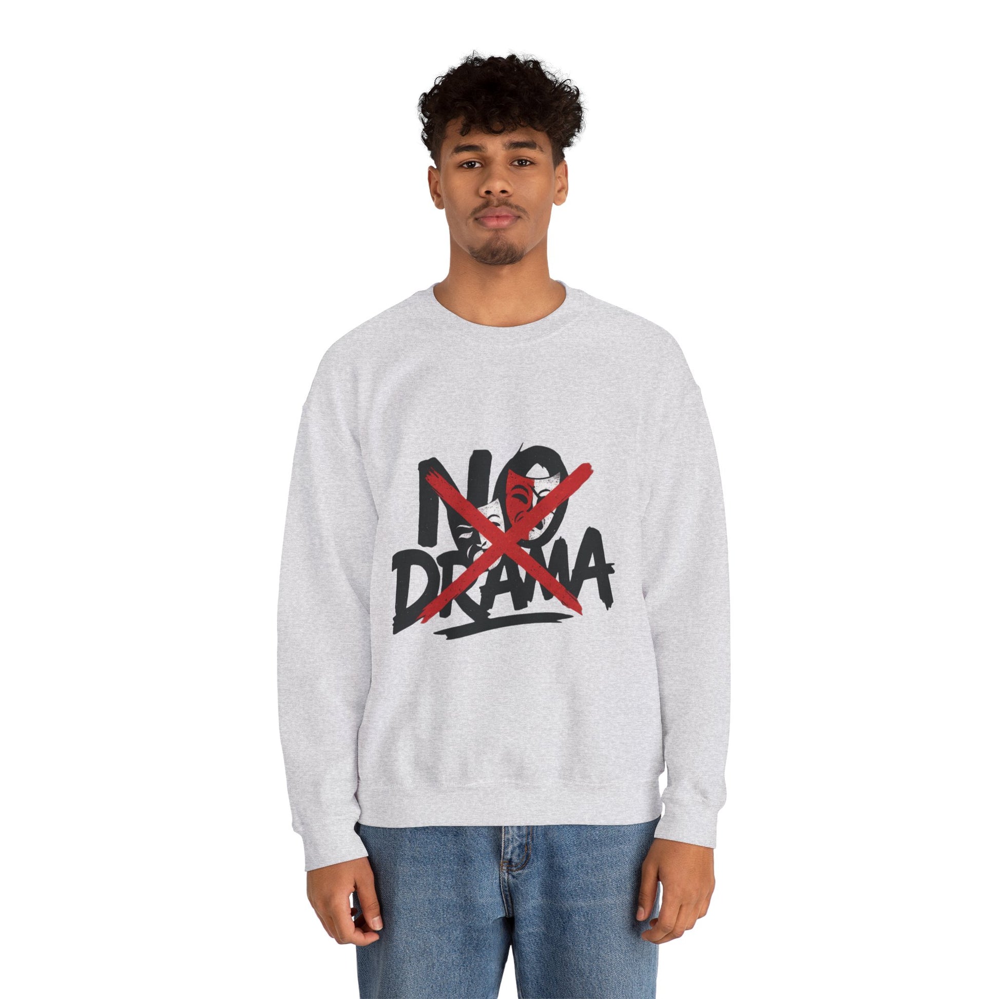 No Drama Mens Crewneck Sweatshirt, Casual Everyday Wear, Gift for Friends, Relaxed Vibes, Comfortable Fashion