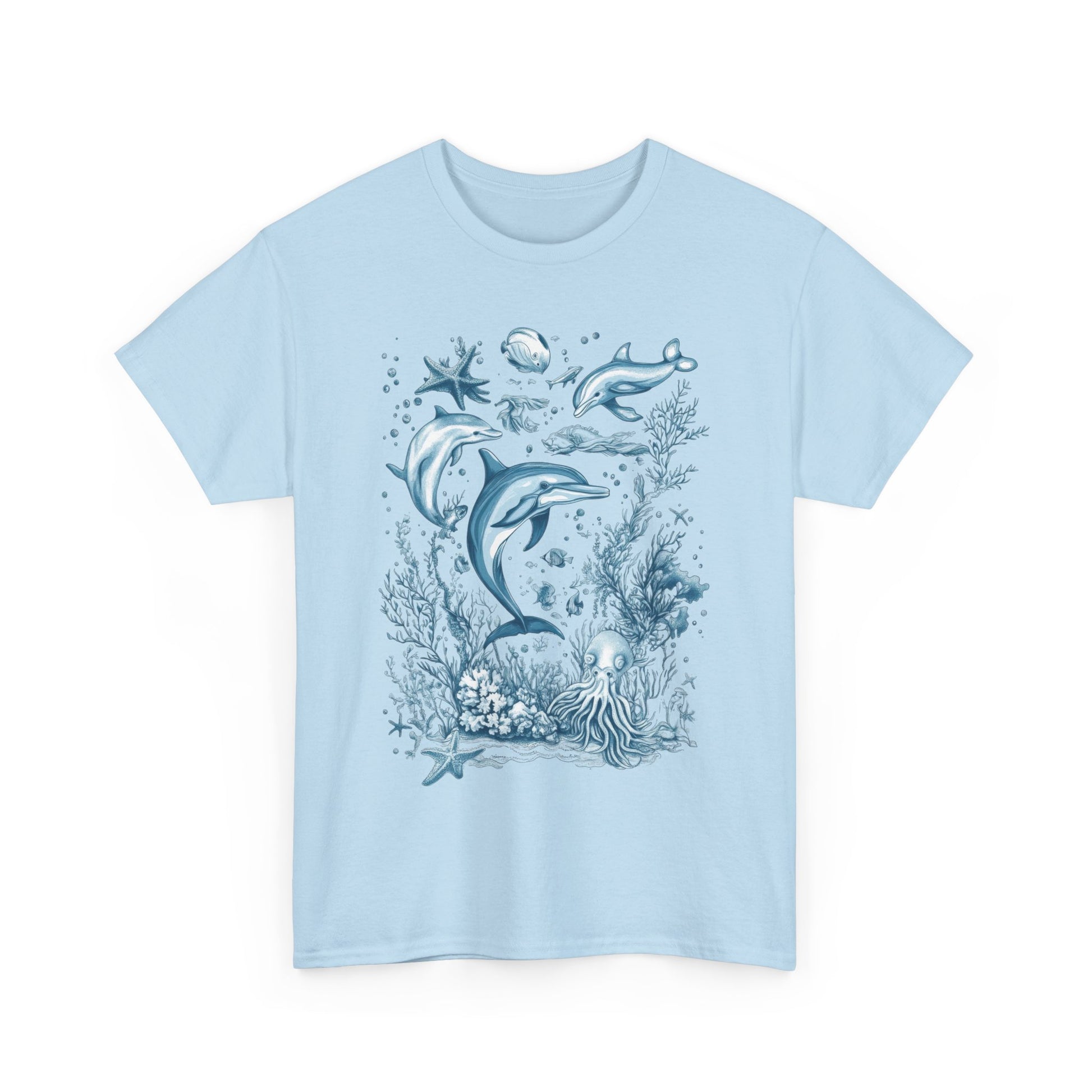 Ocean Life Dolphin T-Shirt, Women's Cotton Tee with Underwater Sea Creatures, Marine Nature Gift Shirt, Perfect for Beach Lovers