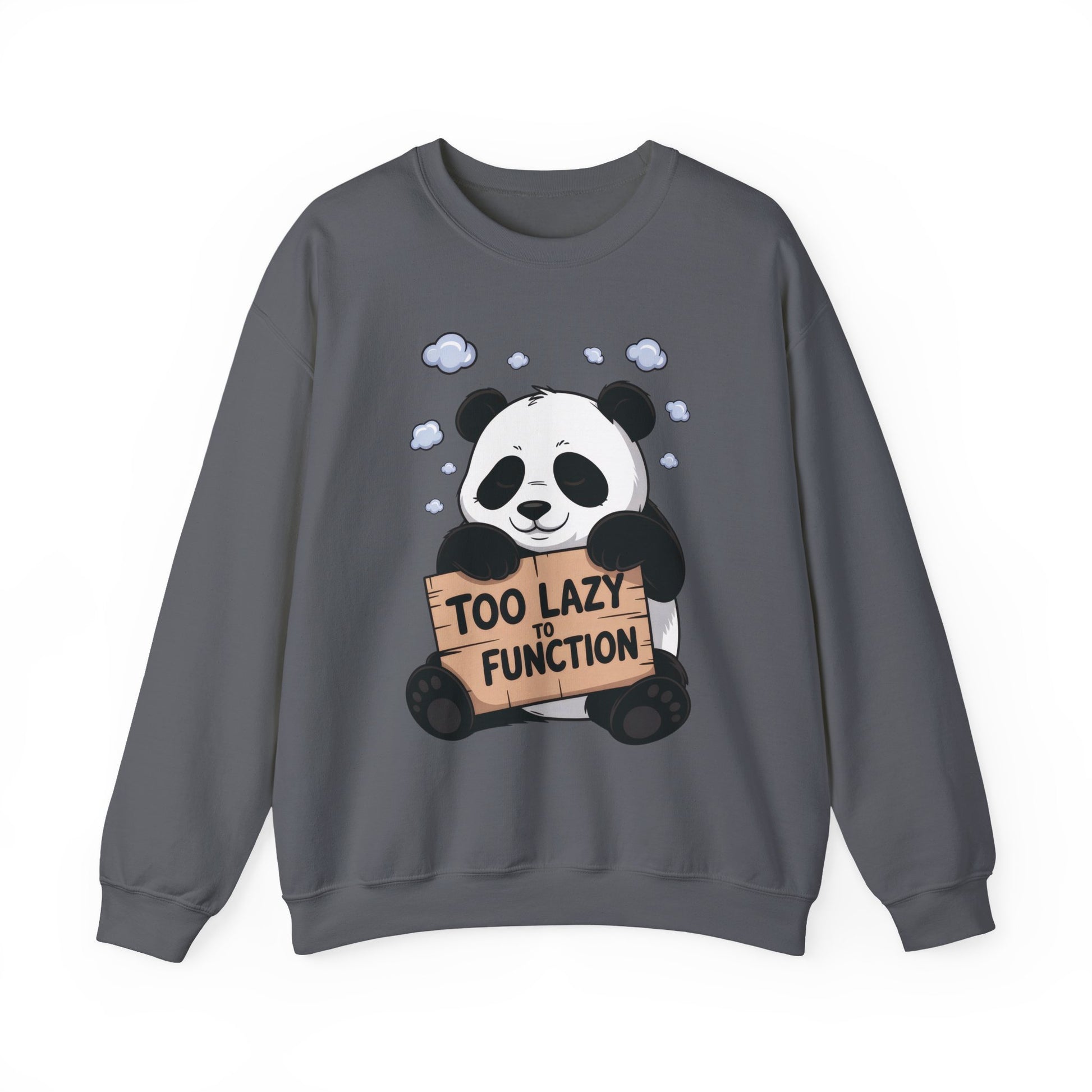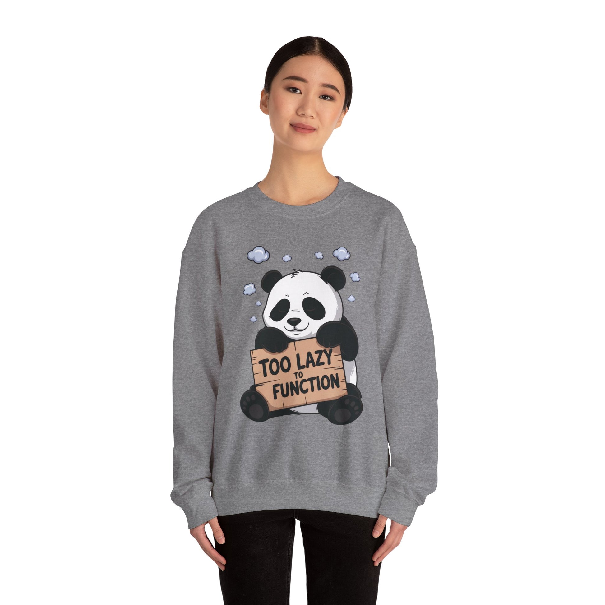 Introducing a cozy unisex heavy blend crewneck sweatshirt that perfectly captures the relaxed vibes of lazy days. Featuring an adorable panda design with the playful caption 'Too Lazy To Function', this sweatshirt is the ultimate statement of comfort and casual style. Its soft fabric blend makes it ideal for snuggling up during colder months, whether you're lounging at home, enjoying a cozy coffee date, or having a laid-back day out with friends. Perfect for the playful spirit, this sweatshirt is an excellent gift for birthdays, cozy holidays, or just to treat yourself. Ideal for animal lovers and those who appreciate a touch of humor in their wardrobe, it's a versatile piece for any casual occasion, bringing warmth and a smile wherever you go. Product features - Knit in one piece for a seamless design, reducing fabric waste. - Elastic ribbed collar retains its shape for a polished look. - Durable double-needle stitching ensures long-lasting wear. - Made from ethically sourced cotton and environmentally friendly dyes. - Soft, medium-heavy fabric blend perfect for chilly days. Care instructions - Machine wash: cold (max 30C or 90F) - Non-chlorine: bleach as needed - Tumble dry: low heat - Do not iron - Do not dryclean