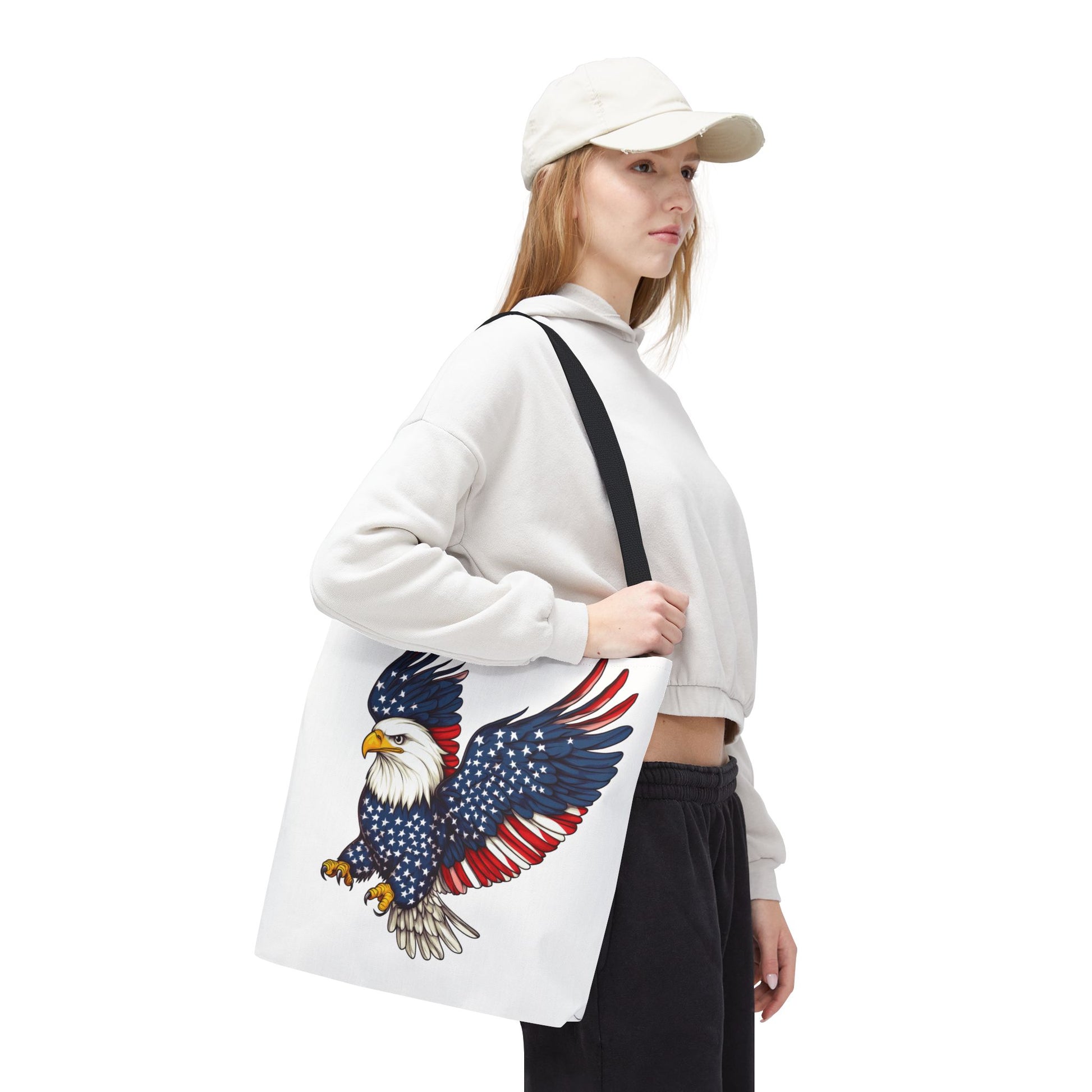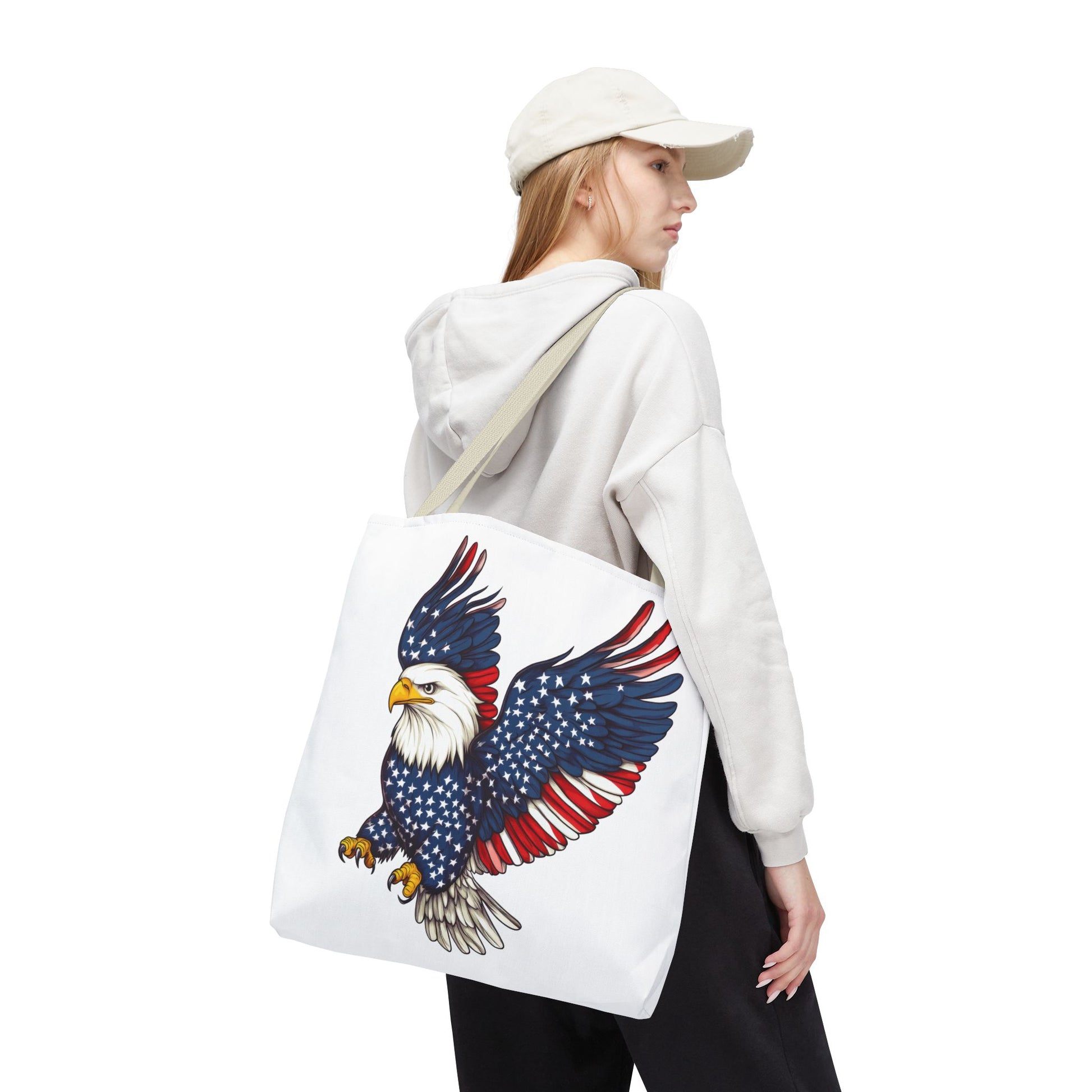 Patriotic Eagle Tote Bag, AOP, Perfect for July 4th, Festivals, Eco-Friendly Shopping, Gift for Nature Lovers, large canvas bag, beach bag