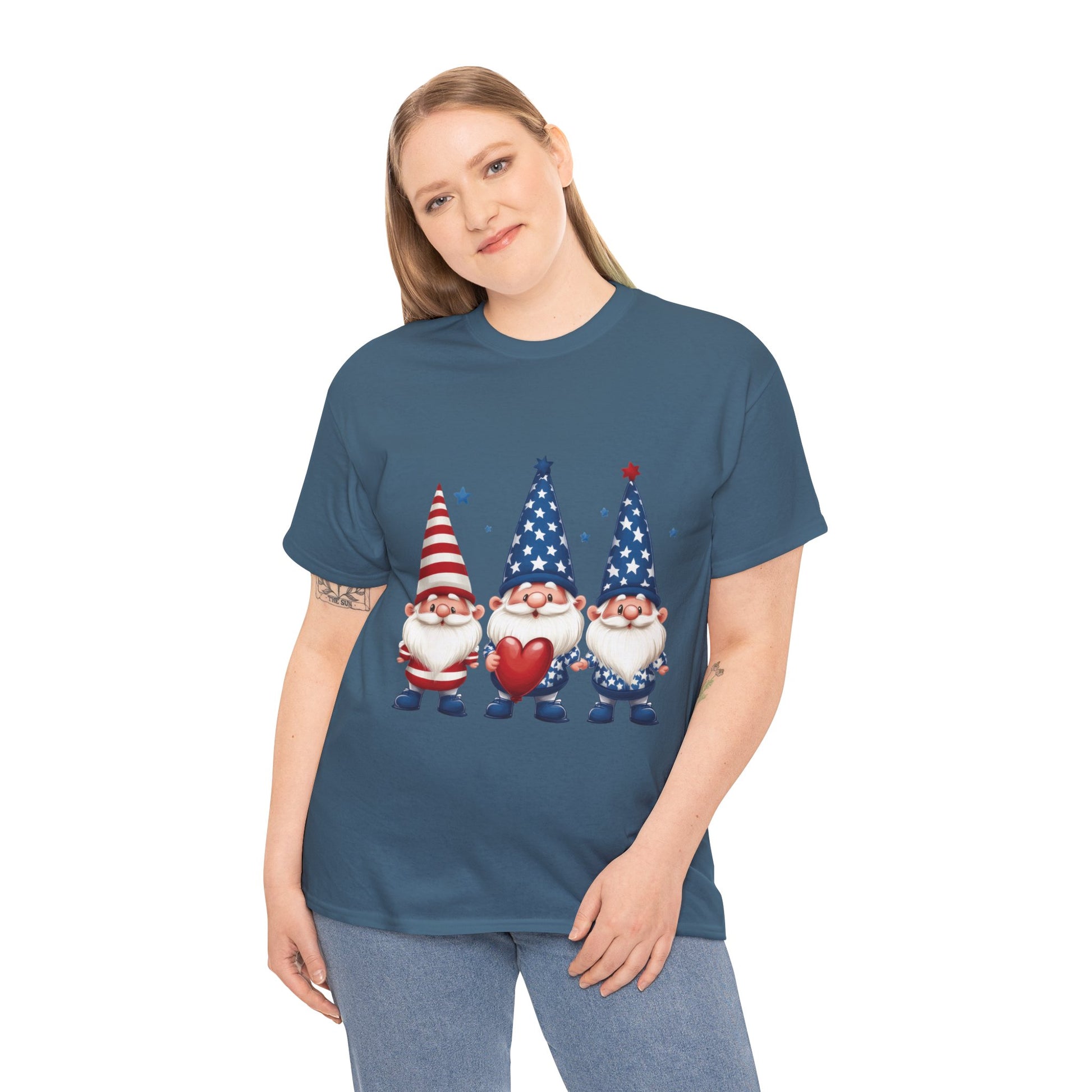 Patriotic Gnome Unisex Heavy Cotton Tee - Cute Tee for Independence Day, Casual Wear, Gift for Gnome Lovers, Summer Style